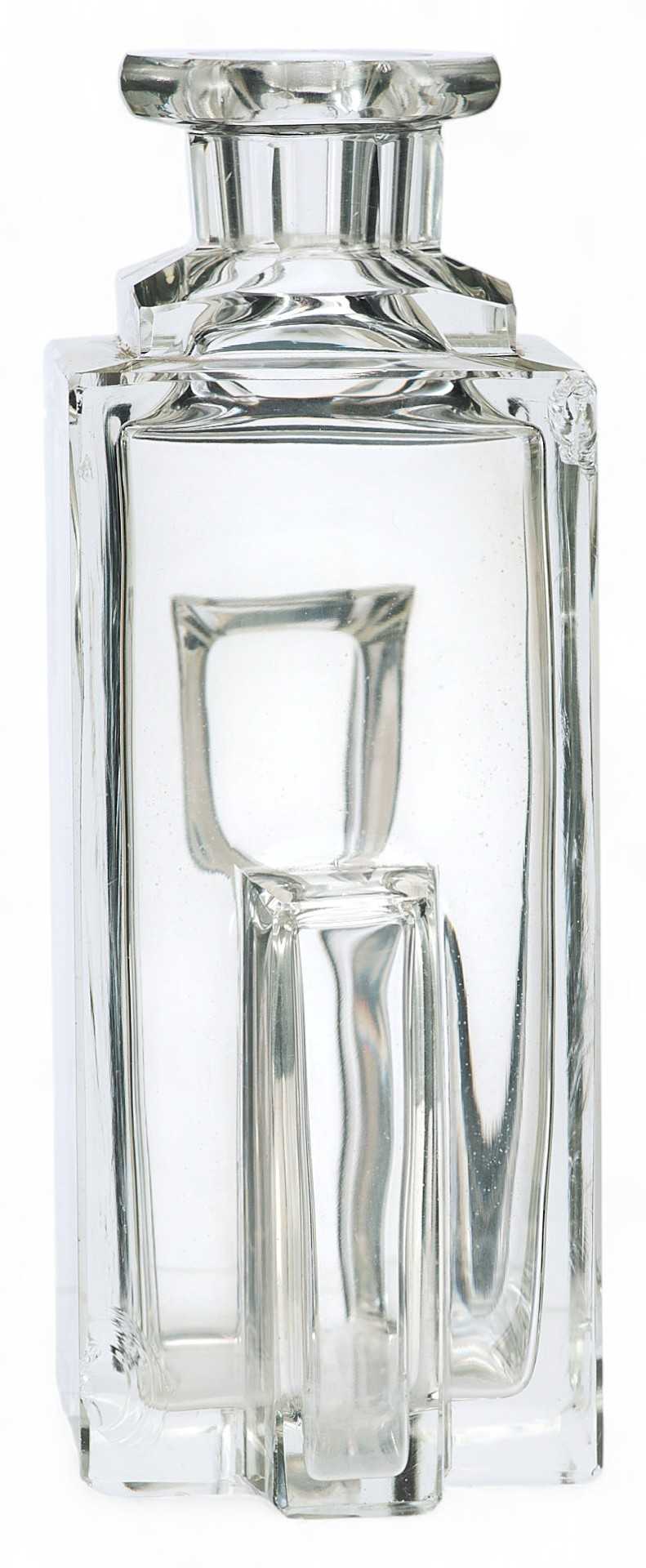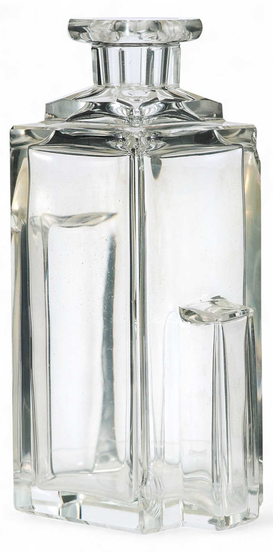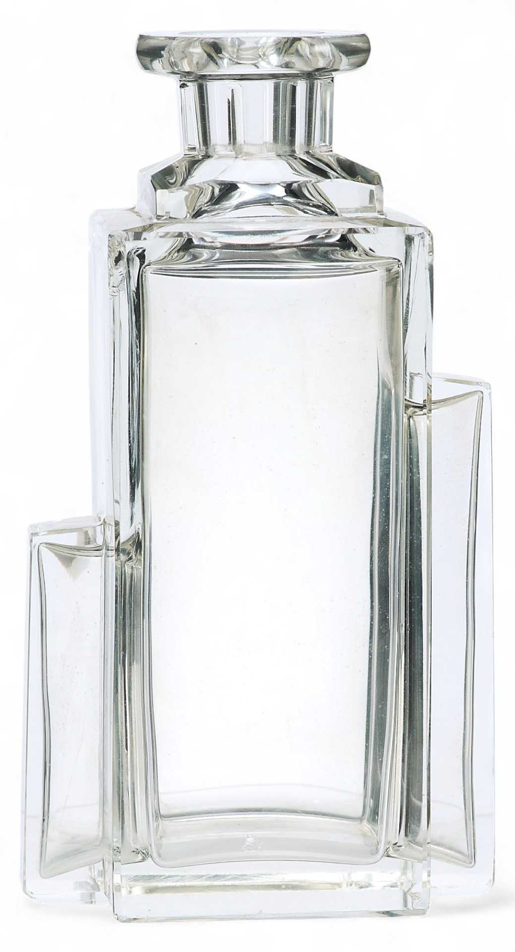 Флакон, лаконичная форма которого соответствует принципам стиля ар-деко, популярному во второй четверти XX в. Прямые строгие плоскости создают эффектную игру света на гранях стекла флакона. Ар-деко - представлял собой синтез модерна и