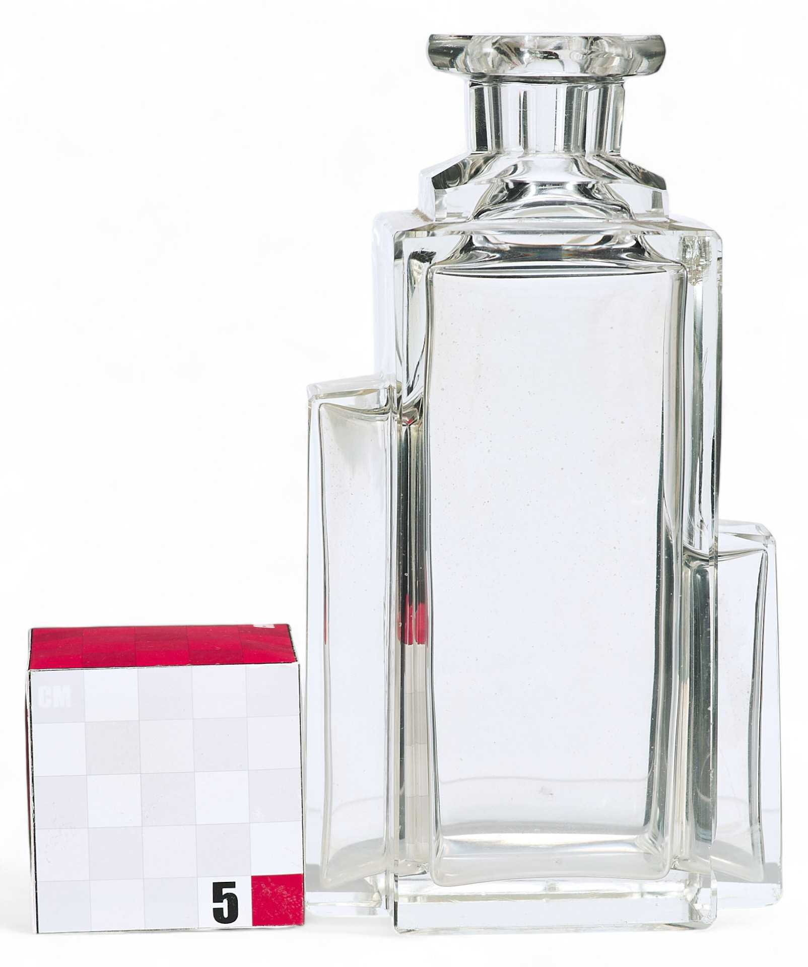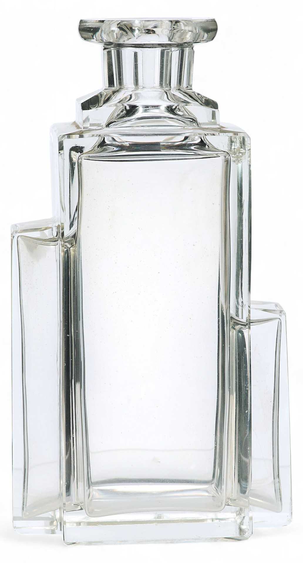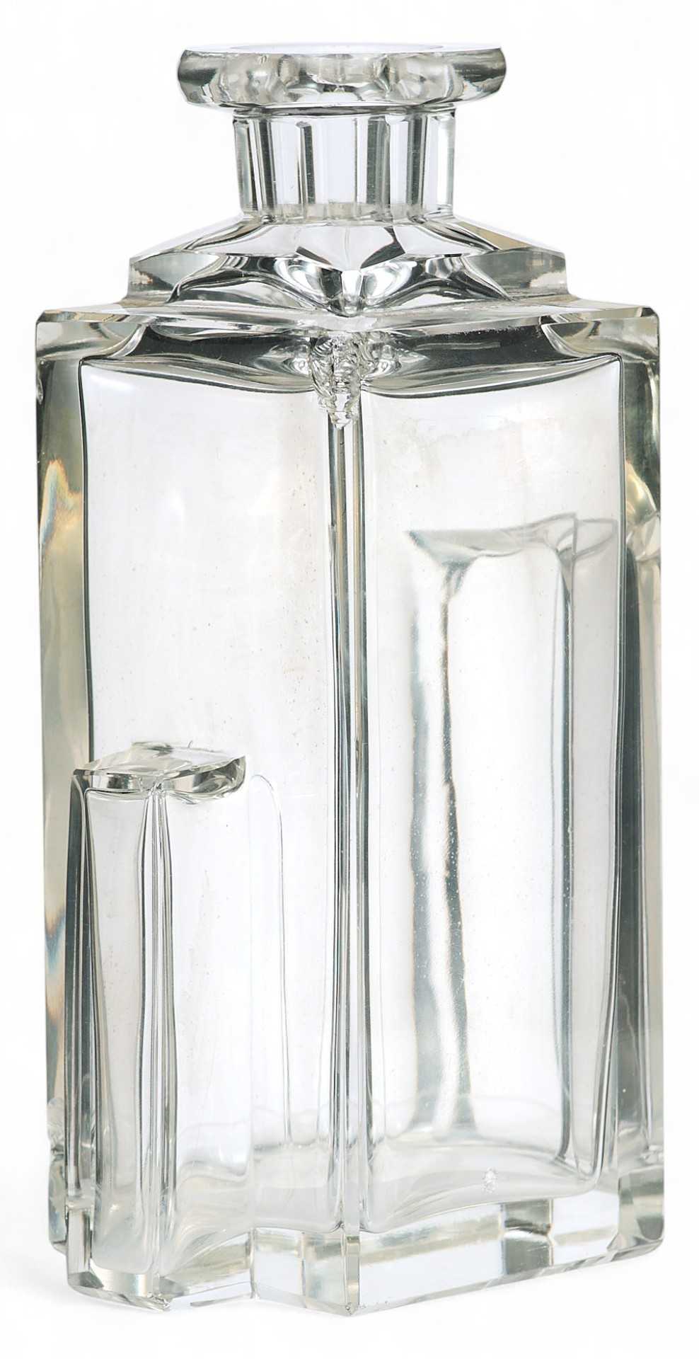 Флакон, лаконичная форма которого соответствует принципам стиля ар-деко, популярному во второй четверти XX в. Прямые строгие плоскости создают эффектную игру света на гранях стекла флакона. Ар-деко - представлял собой синтез модерна и