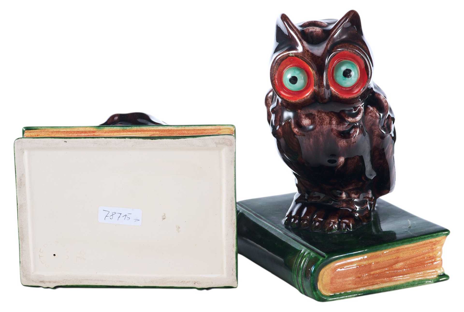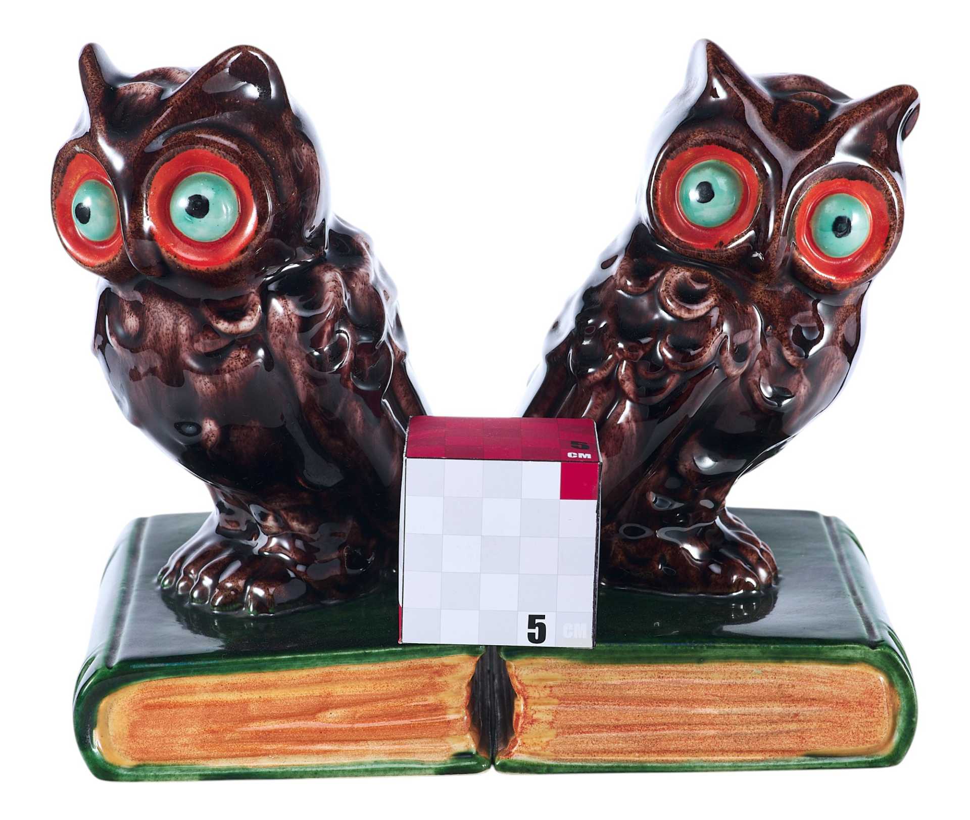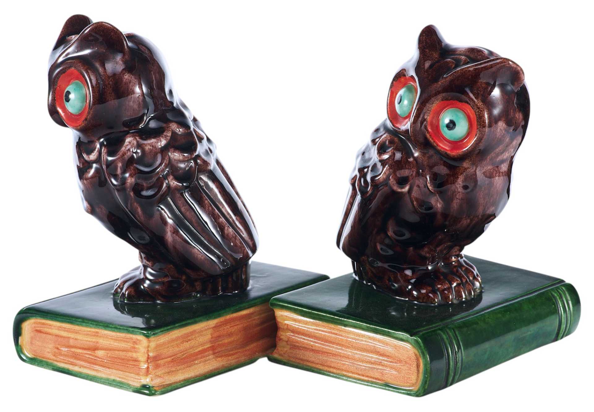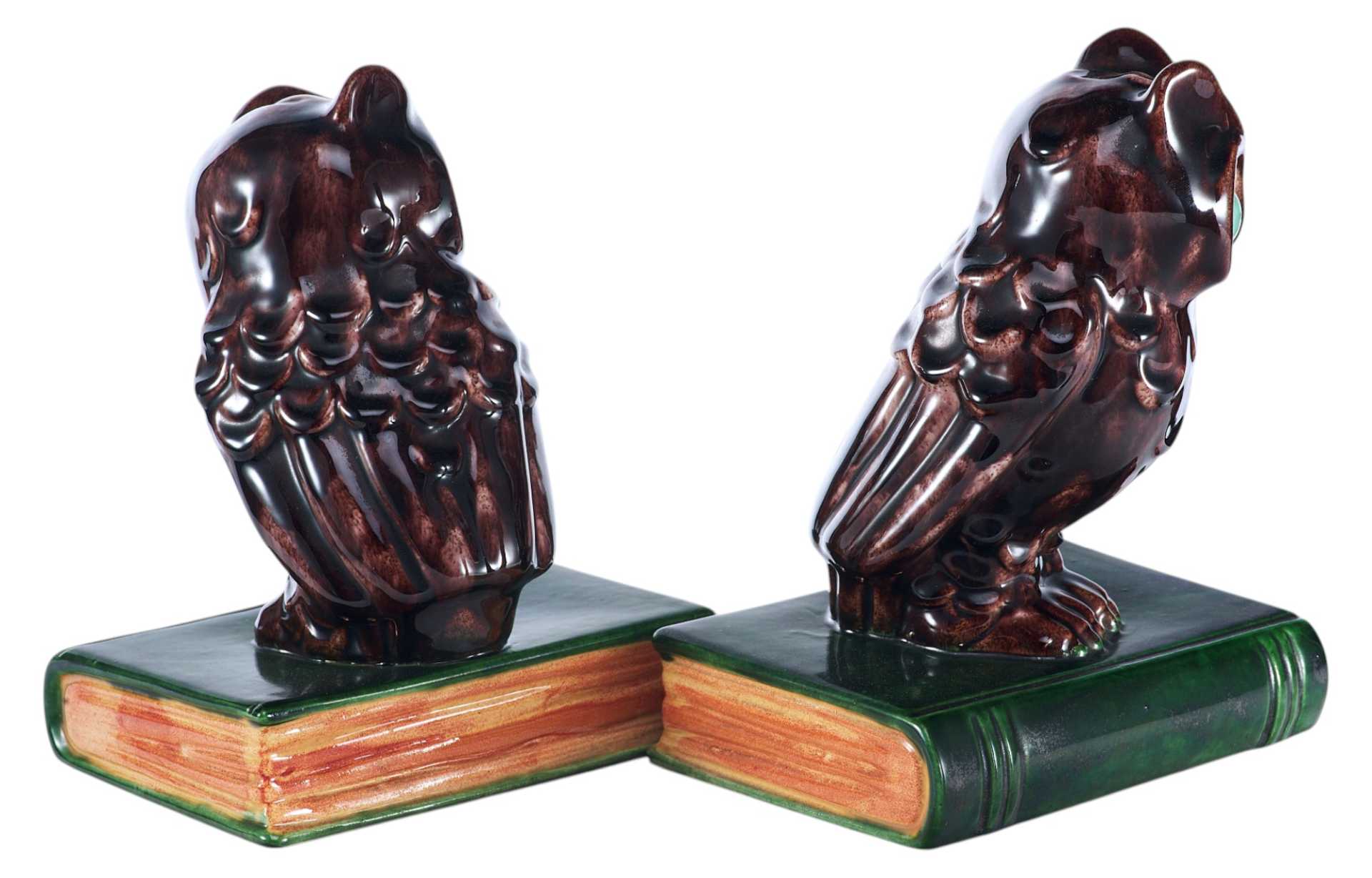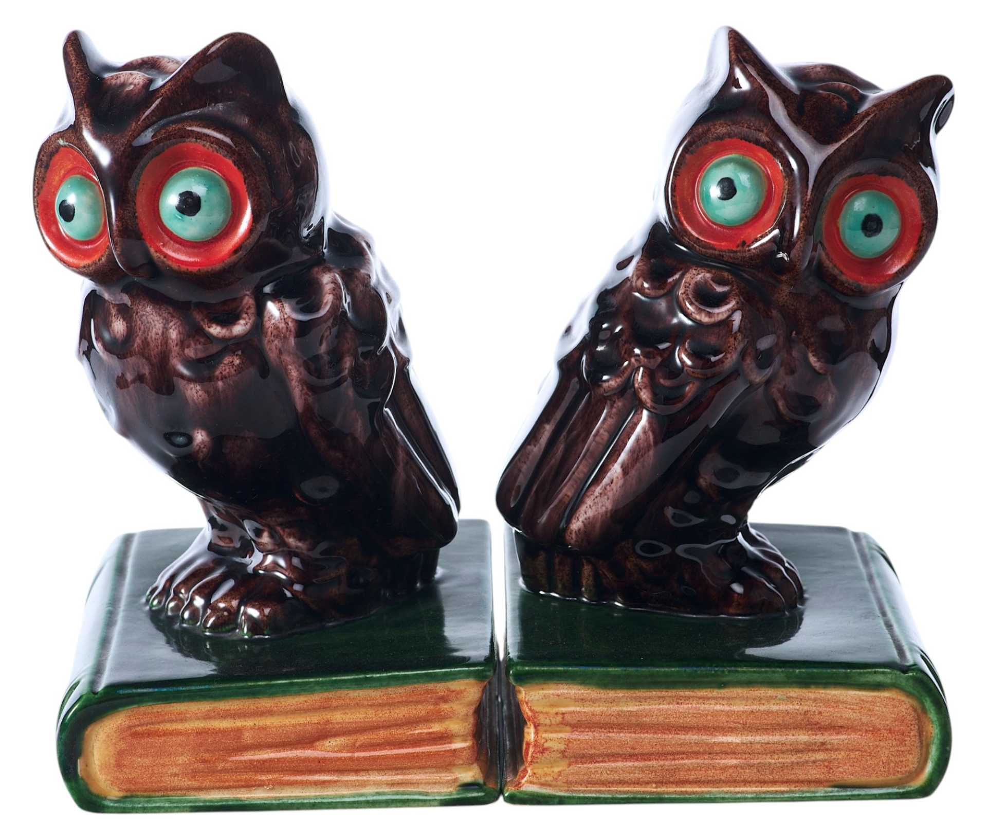 Представлены скульптурные букенды в виде фигур двух совят, сидящих на книгах.