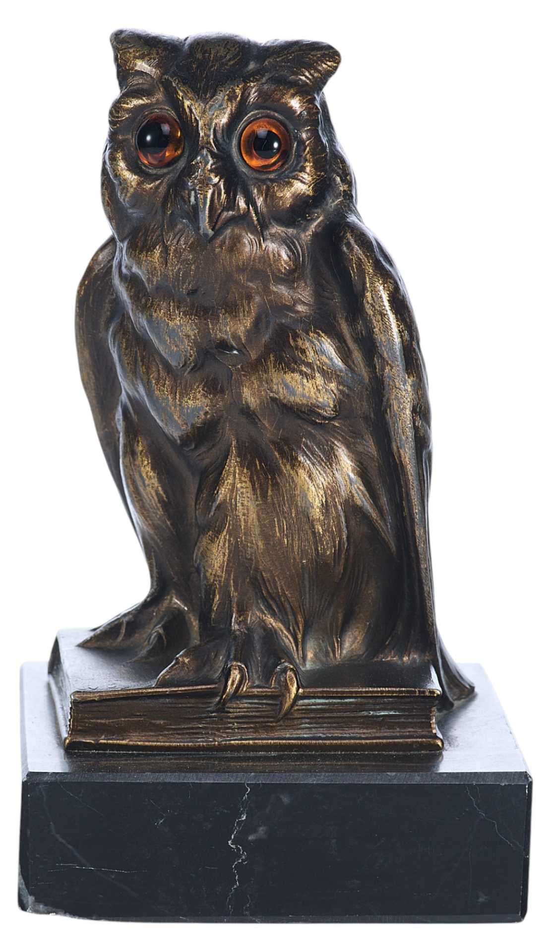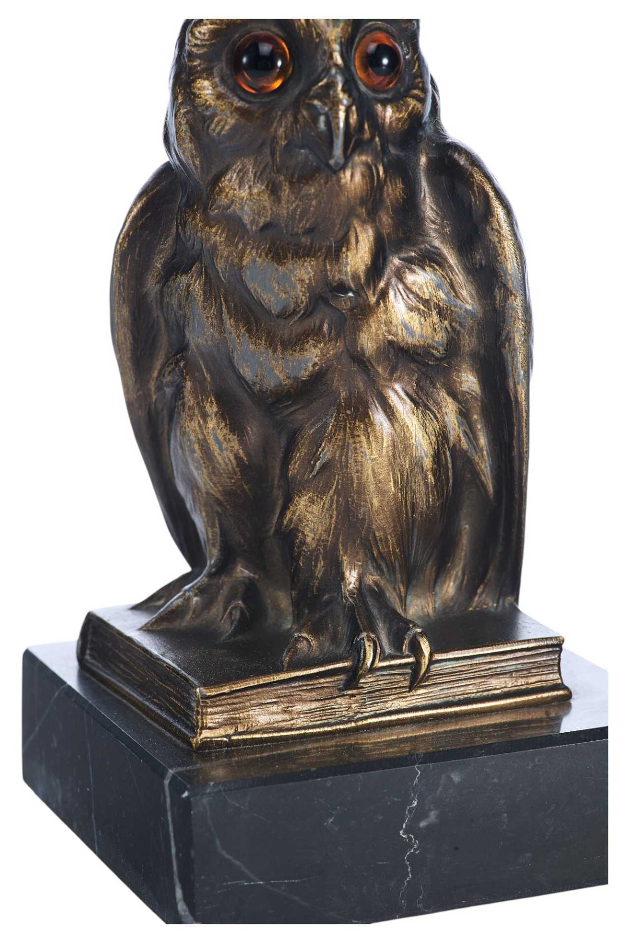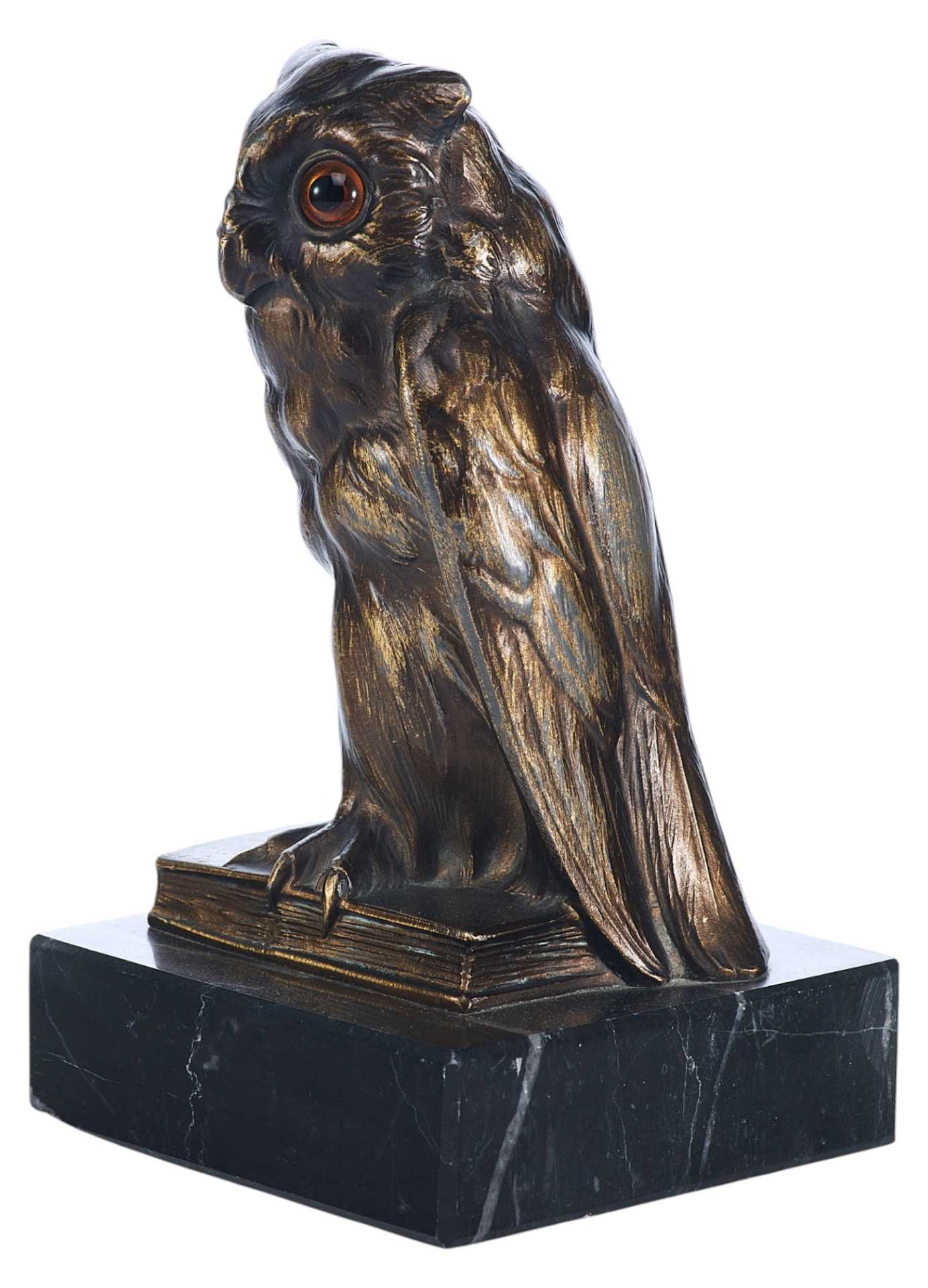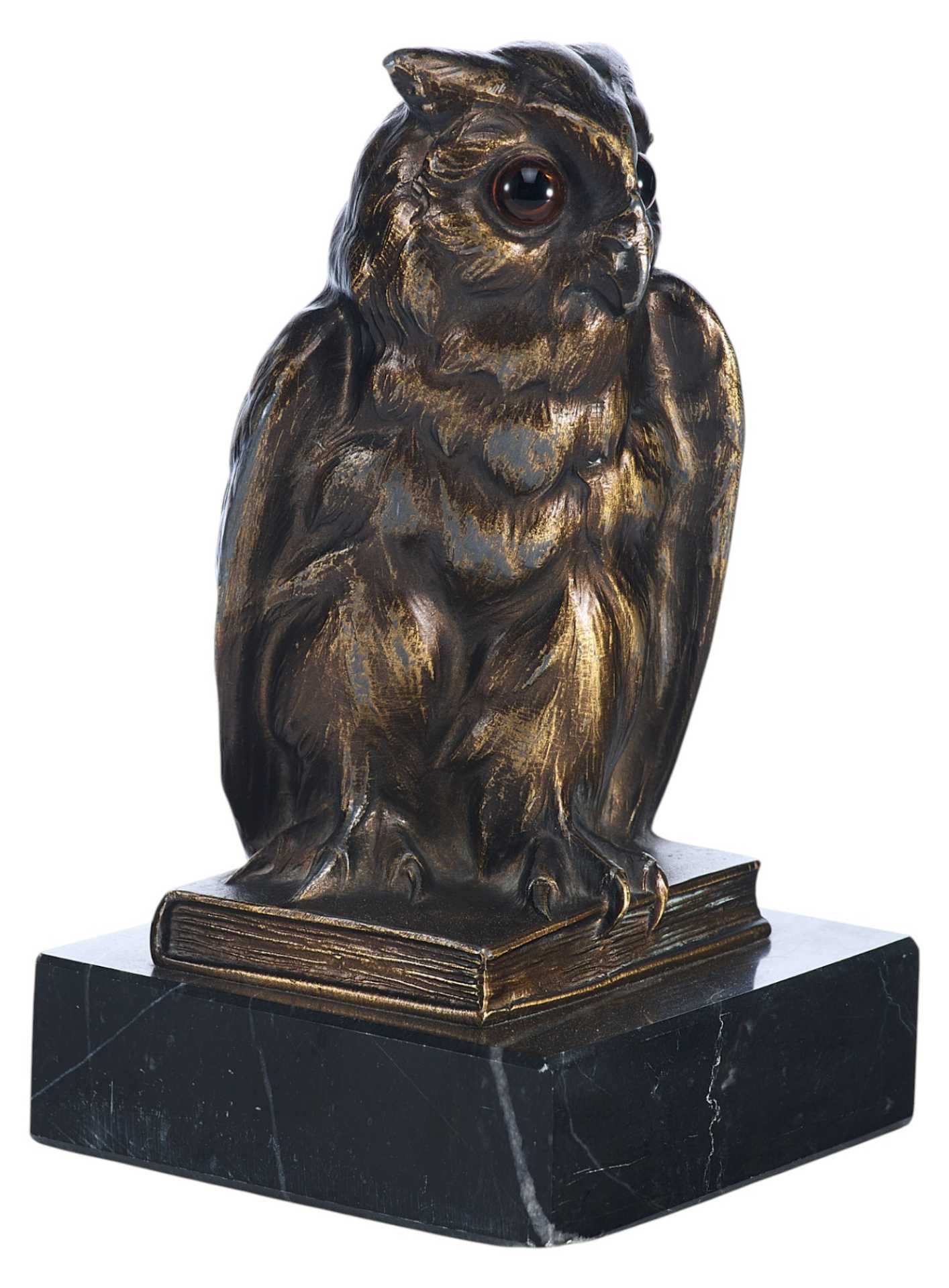 Сова на книге представляет собой типичный пример кабинетной пластики, получившей наибольшее распространение в конце XIX - начале XX вв. Интерьерные (кабинетные) произведения искусства такого плана получили большую популярность благодаря всемирно известной венской бронзе. Сова -эмблема проницательности, мудрости, книжной эрудиции и полезных советов.