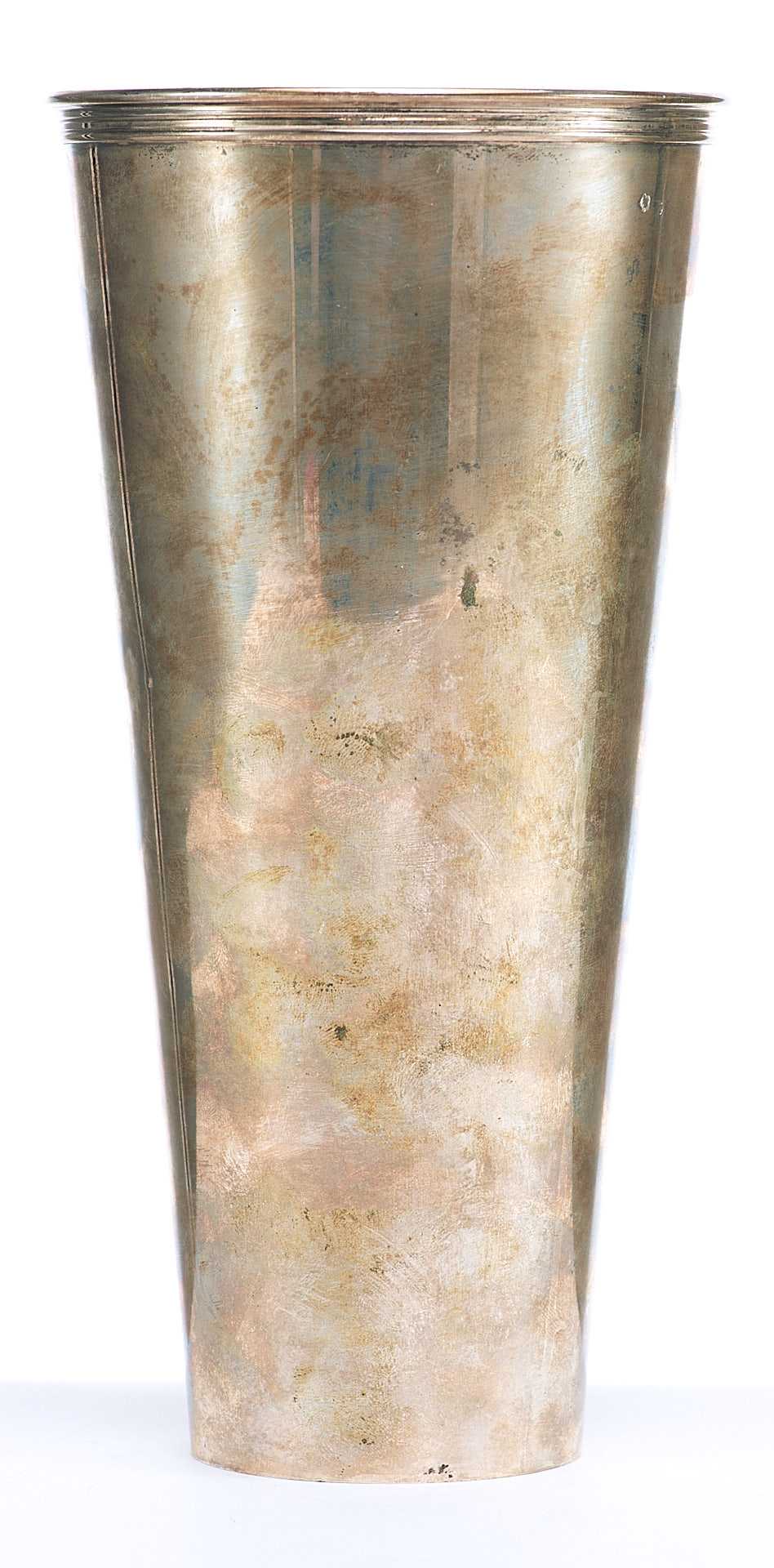 Внутренняя поверхность стакана гладкая, позолоченная. На предмете имеются клейма: