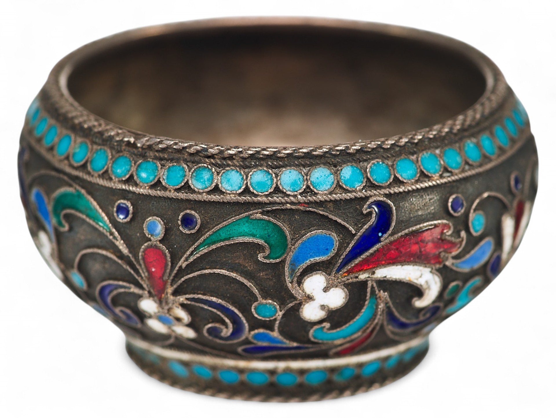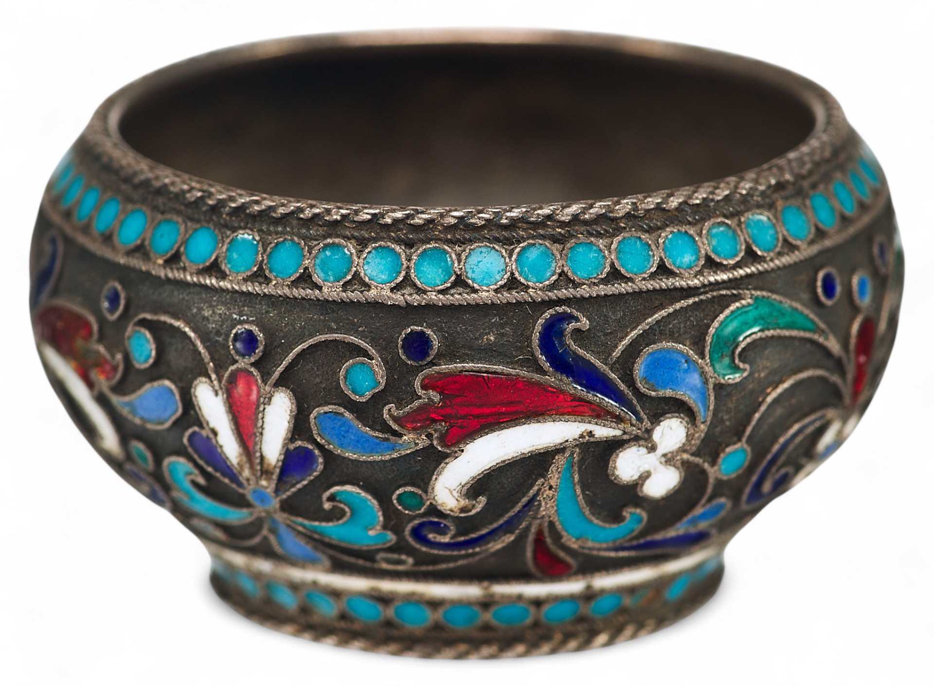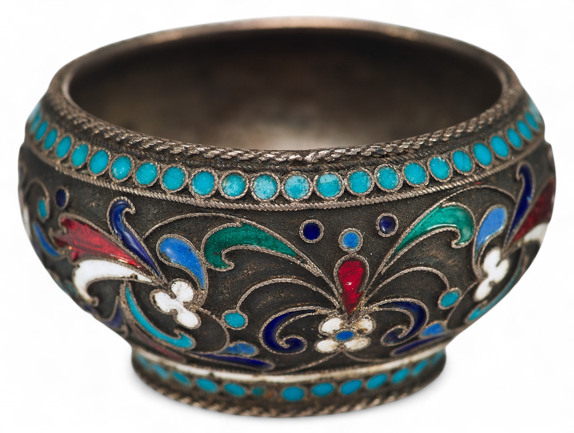 Солонка вьпюлнена в так назьmаемом «неорусском стиле», который отличает стремление к созданию национальных русских форм и интерес к древнерусскому и народному искусству. В сфере декоративно-прикладного искусства своеобразным символом стиля является художественная эмаль, и, в частности, ее самая популярная в конце XIX - начале ХХ вв. техника - эмаль по скани.