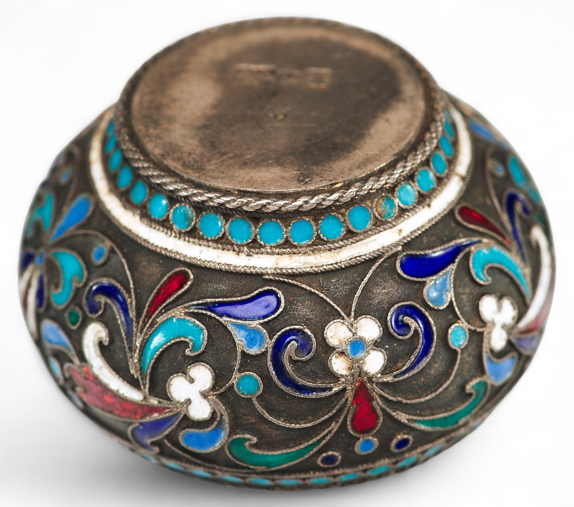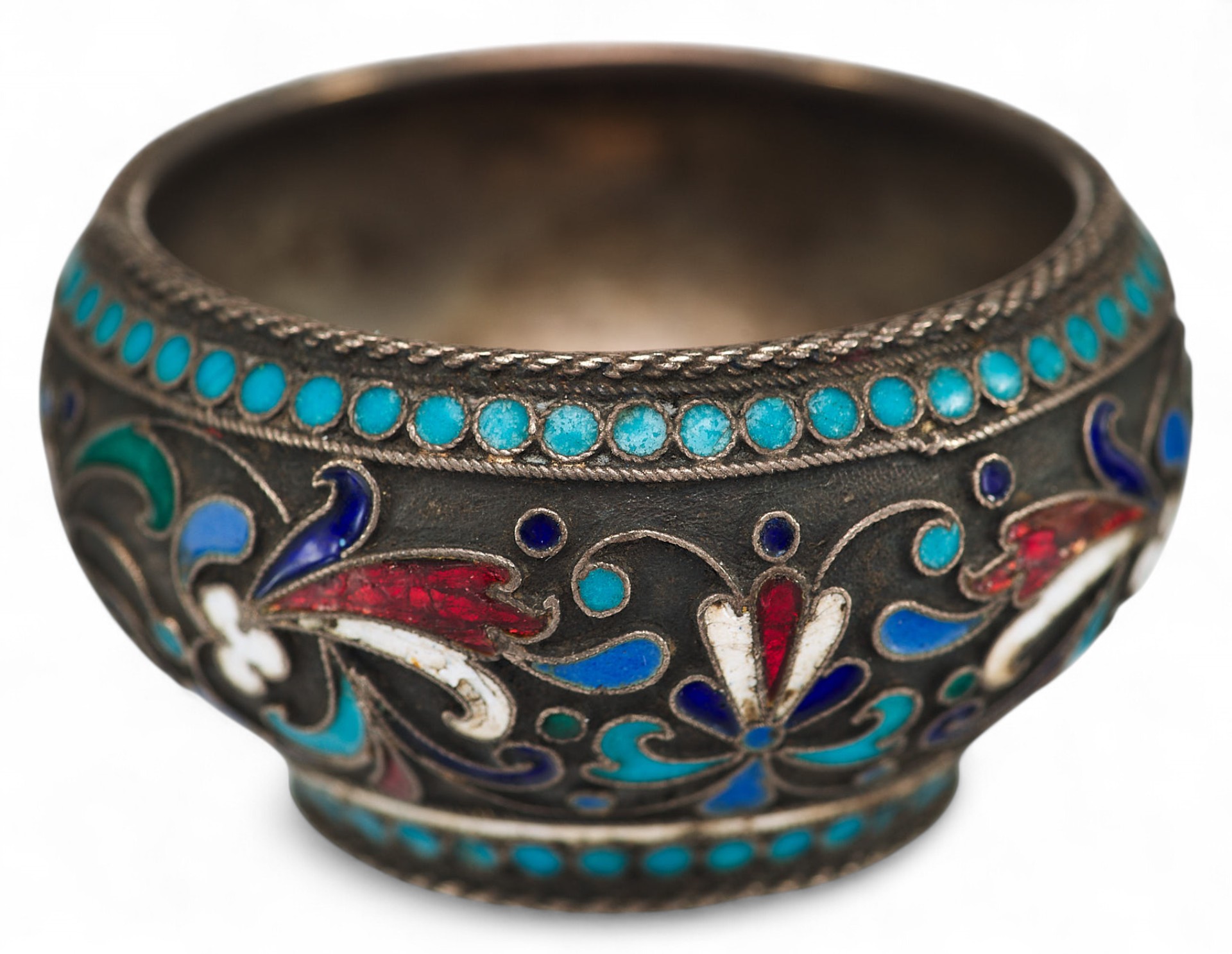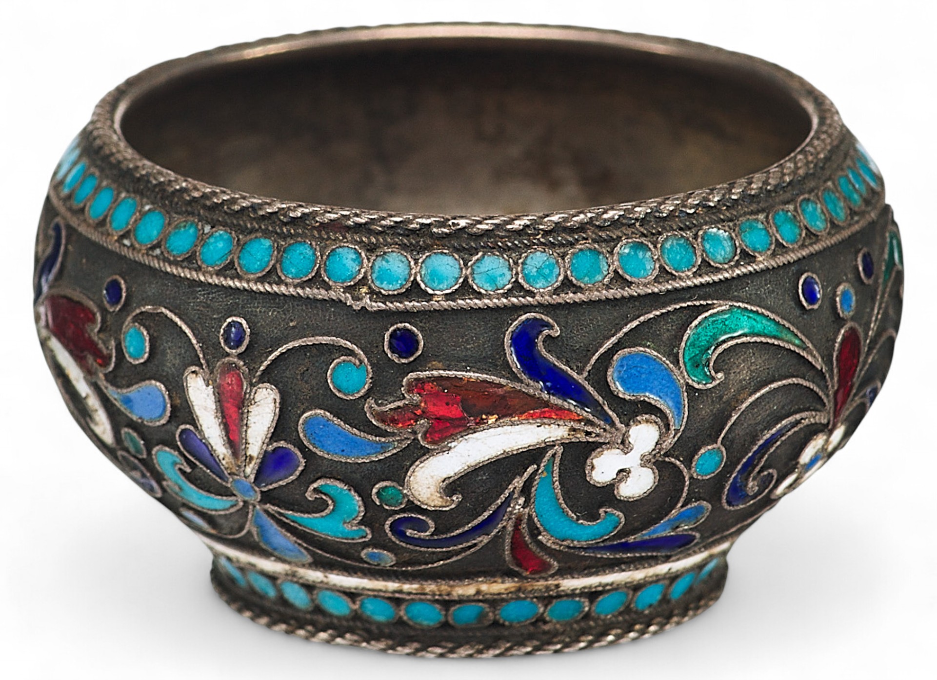 Солонка вьпюлнена в так назьmаемом «неорусском стиле», который отличает стремление к созданию национальных русских форм и интерес к древнерусскому и народному искусству. В сфере декоративно-прикладного искусства своеобразным символом стиля является художественная эмаль, и, в частности, ее самая популярная в конце XIX - начале ХХ вв. техника - эмаль по скани.