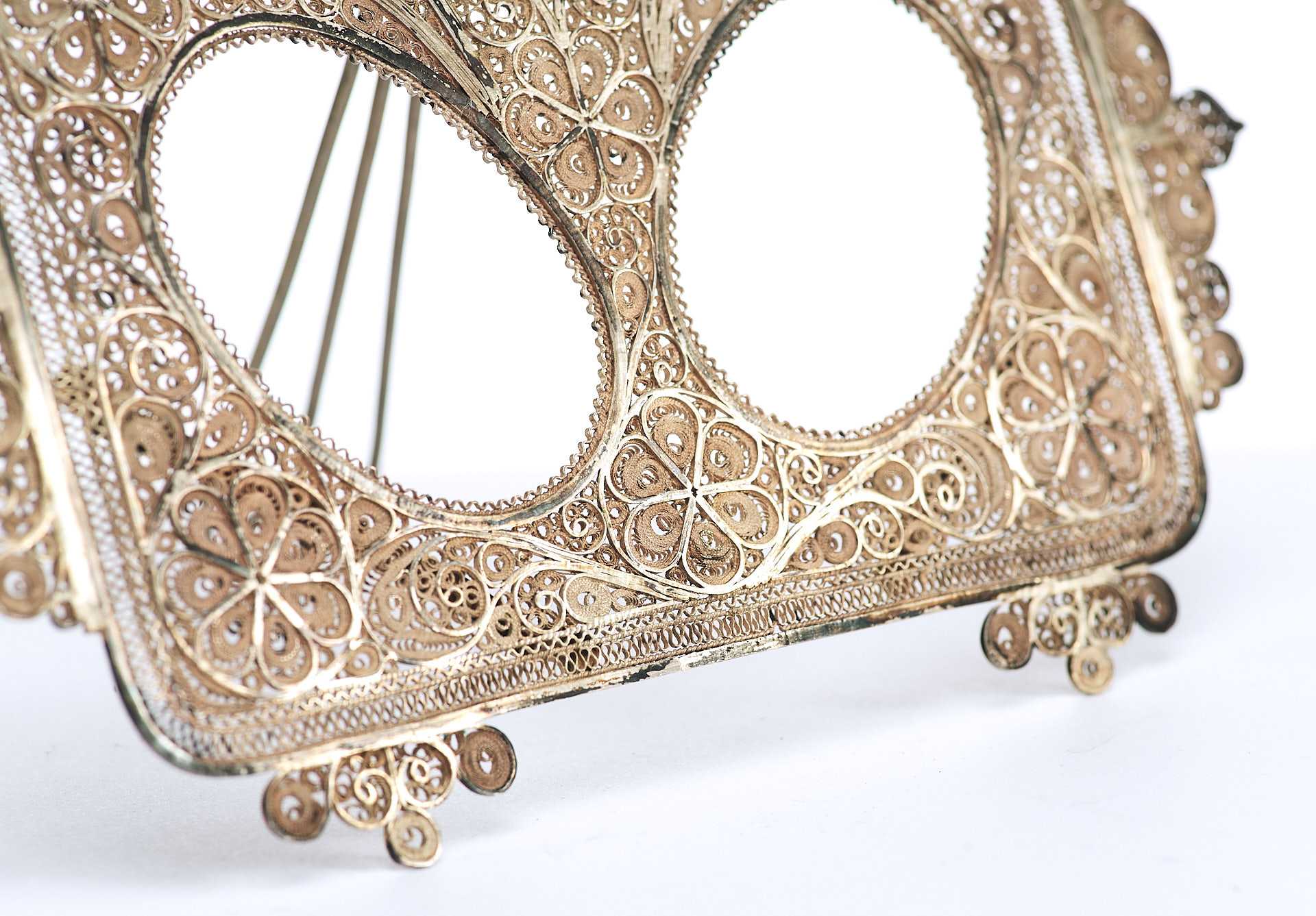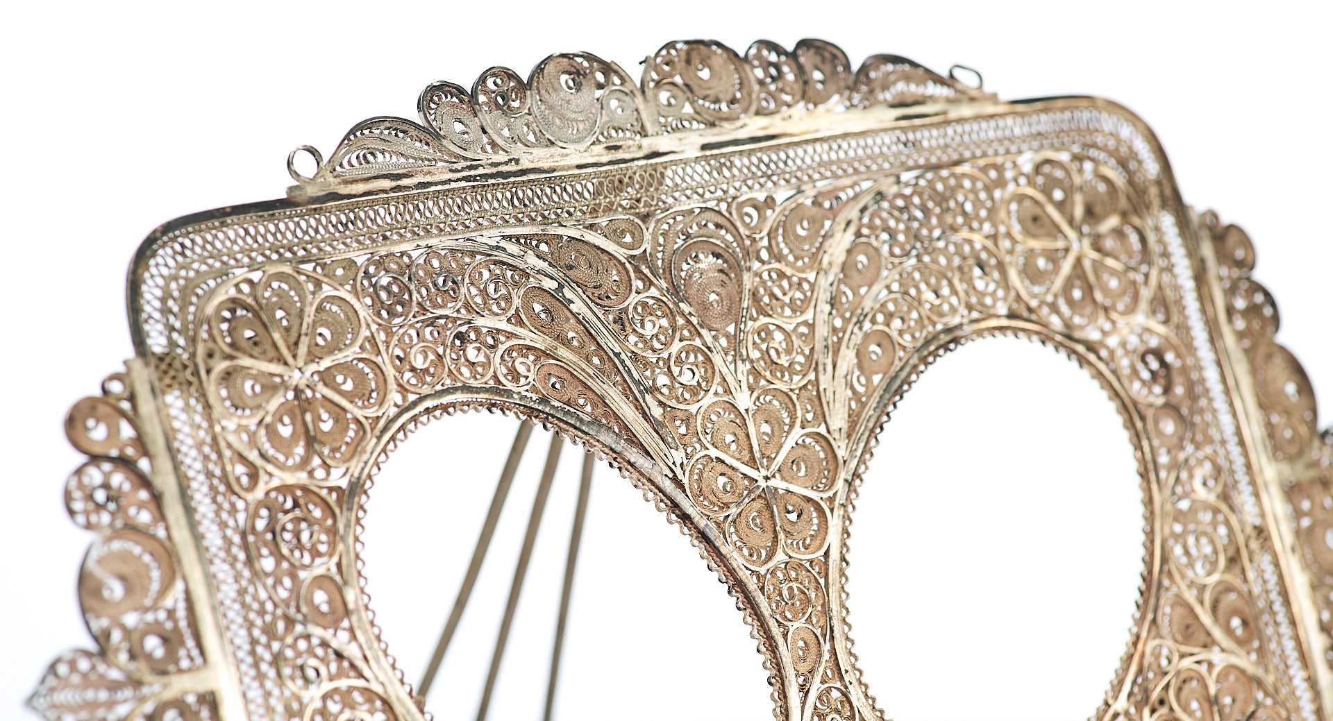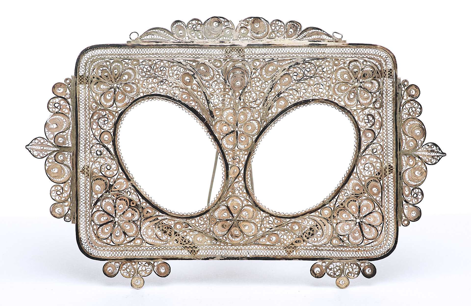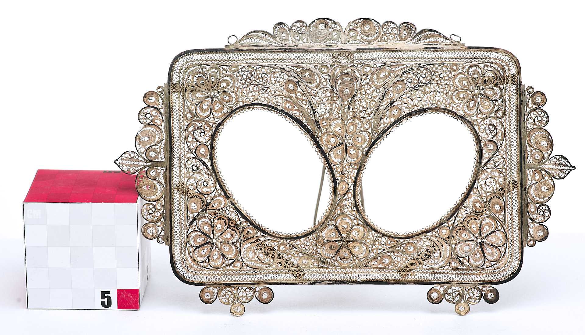 Представлена серебряная рамка на два фото выполненная в технике филиграни, В русском декоративном искусстве художественная обработка металла всегда занимала видное место.
