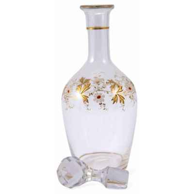 Представлен стеклянный графин с пробкой. Поверхность графина украшена цветочной эмалевой росписью.