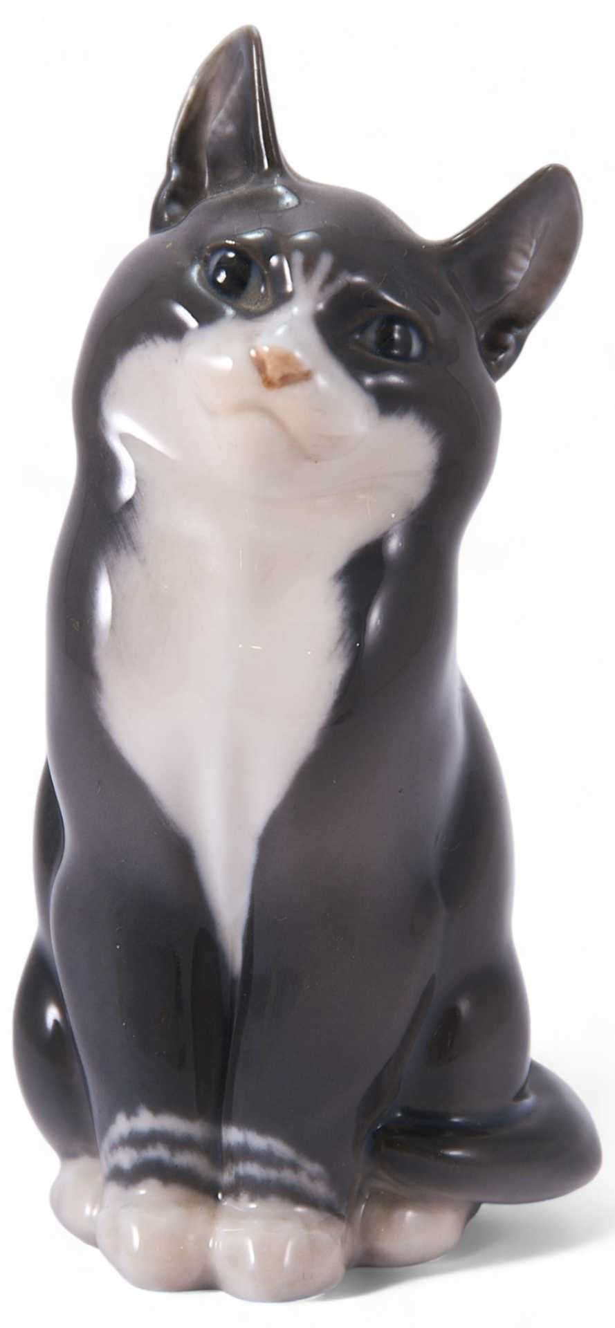 Представлена скульптура кота. На основании фигуры клеймо Королевской копенгагенской фарфоровой мануфактуры с указанием датировки.