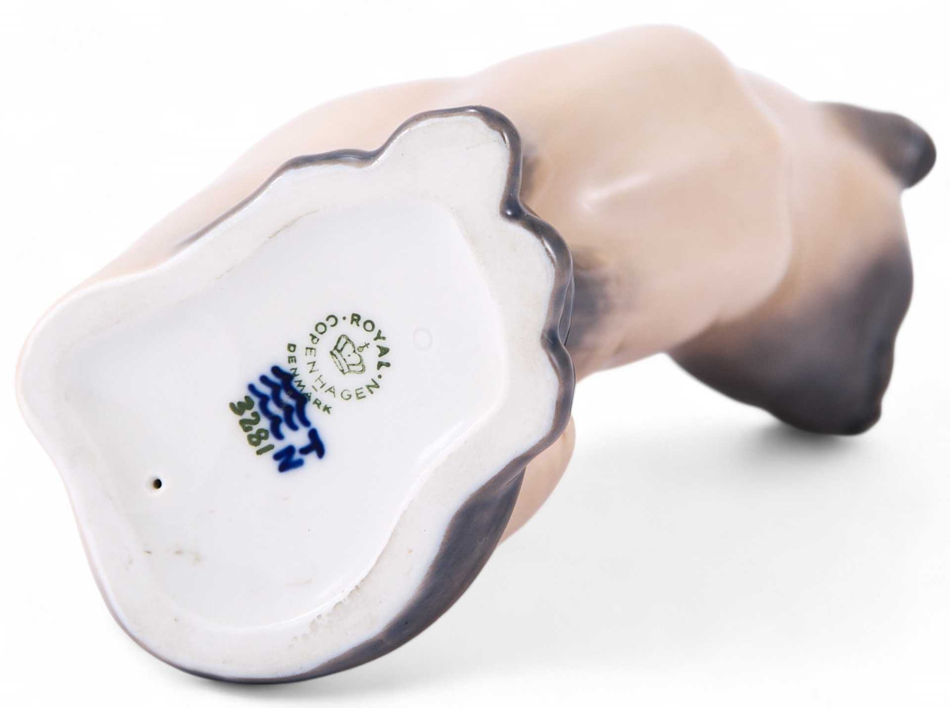 Представлена скульптура кошки. На основании фигуры клеймо Королевской копенгагенской фарфоровой мануфактуры с указанием датировки.