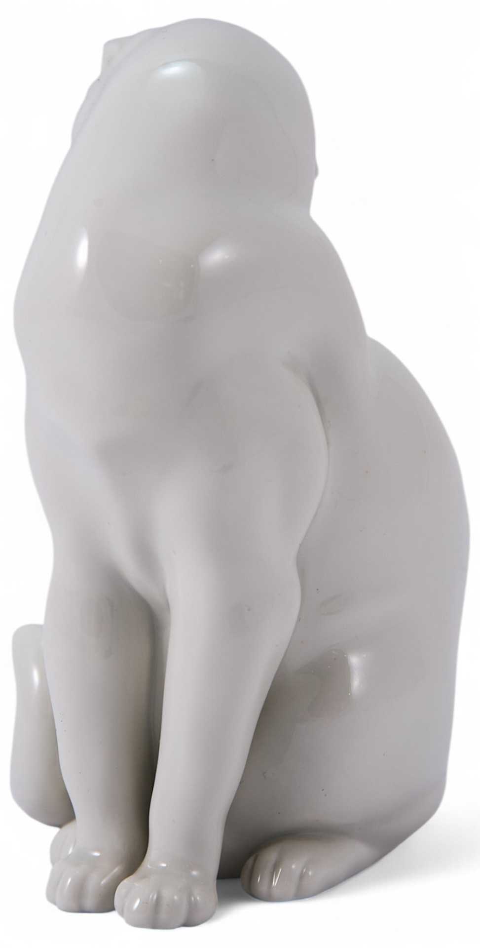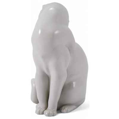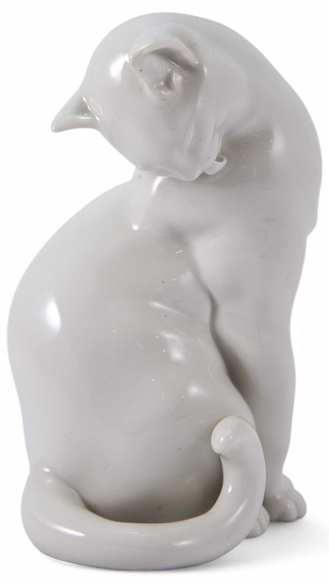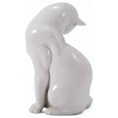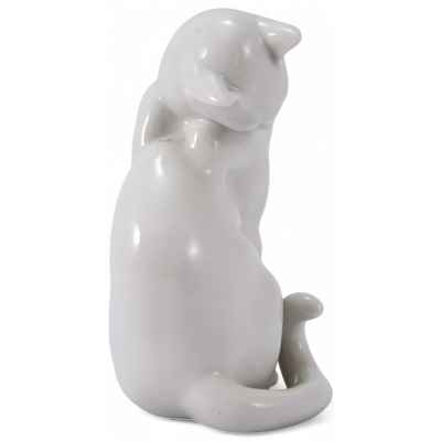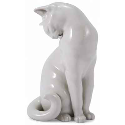 Представлена скульптура кошки умывающейся языком, которая произведена на фарфоровой мануфактуре Аугартен (Вена).