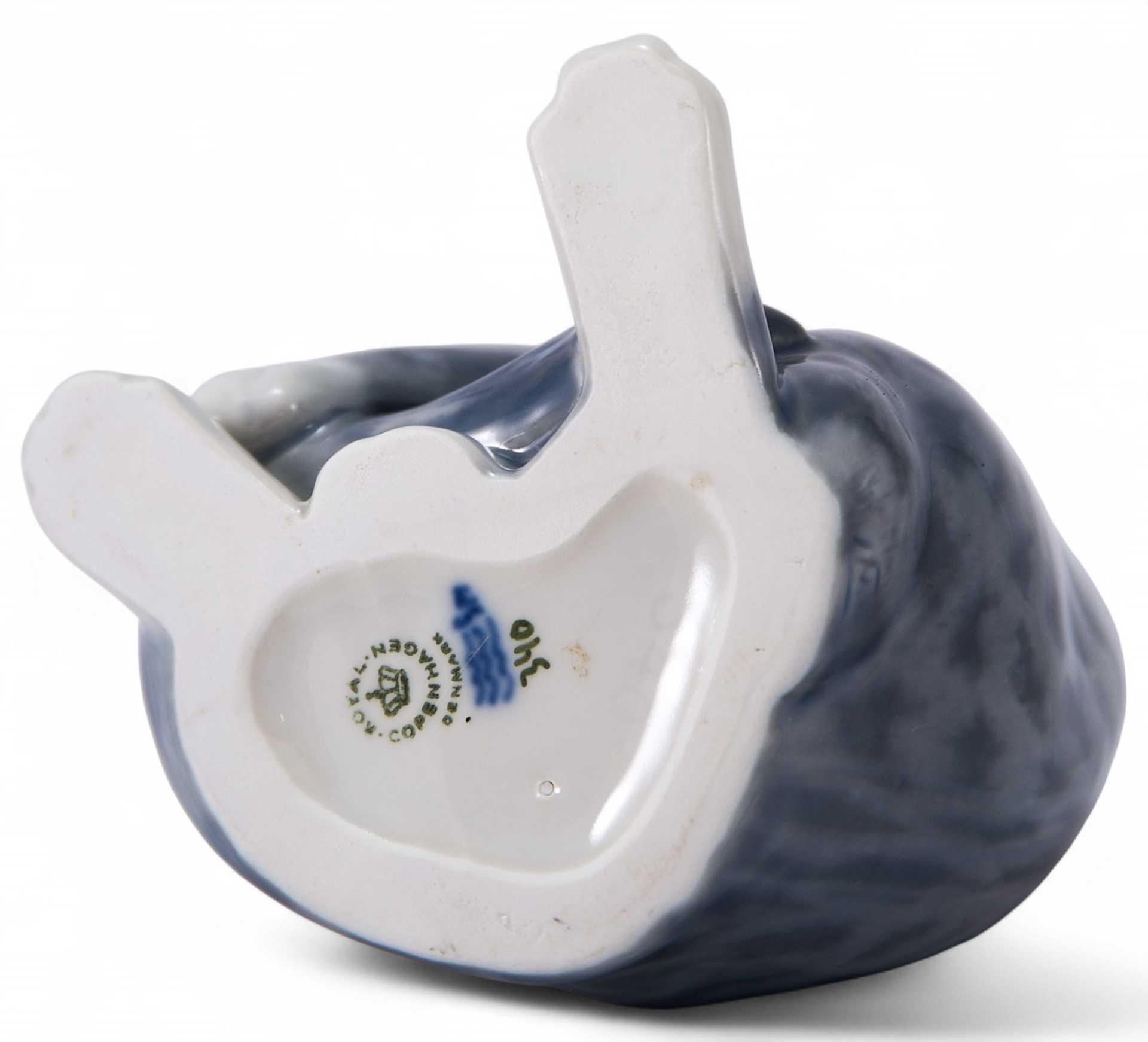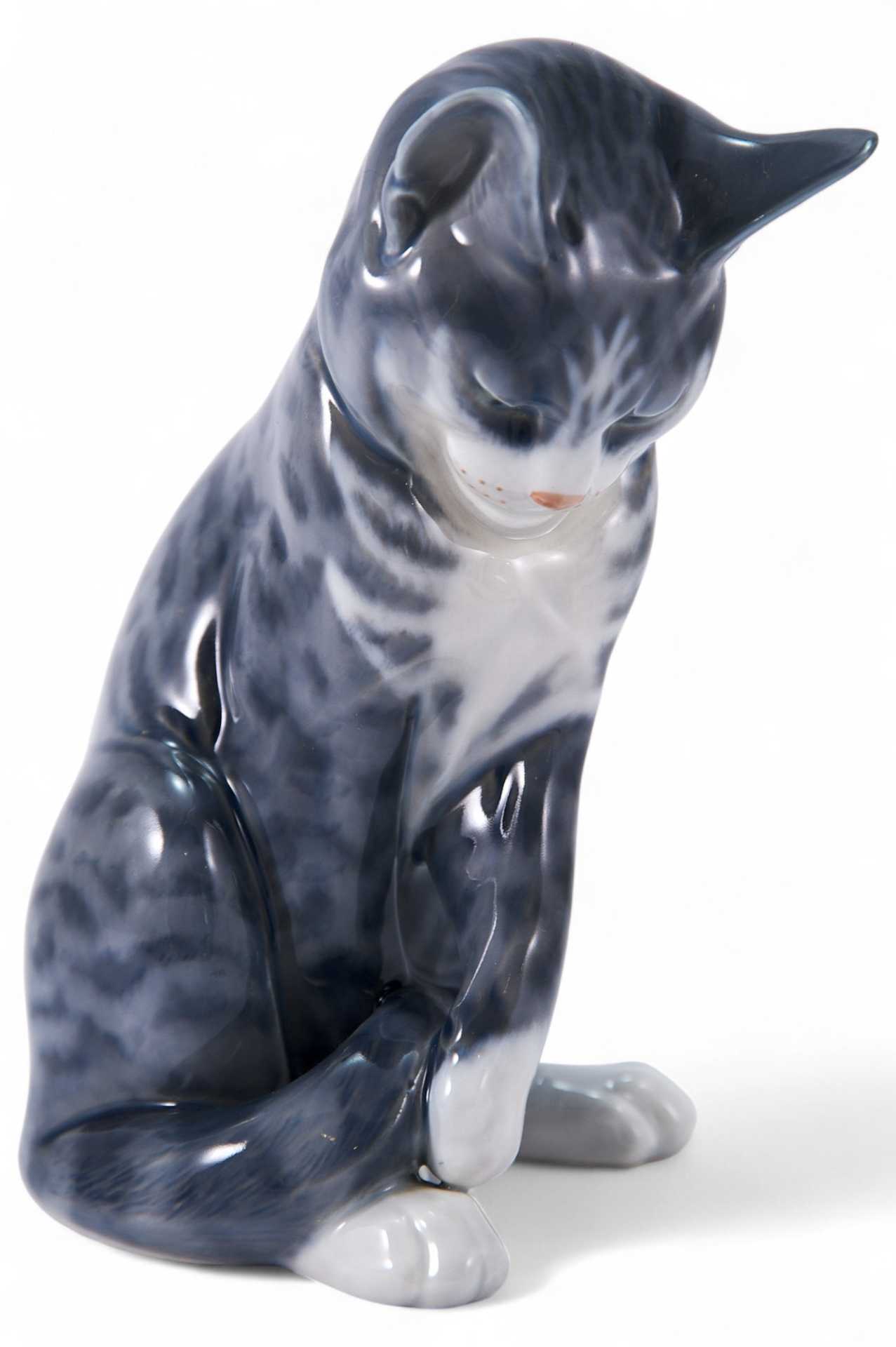Скульптура сидящего котенка, играющего со своим хвостиком. На основании фигуры клеймо Королевской копенгагенской мануфактуры с указанием датировки. Royal Copenhagen Factory.Основана в 1775 году фарфоровой Франком Хенриком Мюллером. С конца XIX века выпускался фарфор высокого качества с характерной подглазурной росписью в приглушенной гамме — одно из выдающихся достижений в Художественный руководитель Королевской фарфоровой Арнольд Эмиль Крог (1856-1931) разработал новый художественный стиль, названный по месту его 44 стиле модерн, мануфактуры неповторимый возникновения "копенгагенским”. Этот стиль использовался и мастерами Императорского завода. Для фарфоровых изделий с подглазурной росписью “высокого огня” характерна неяркая, почти монохромная цветовая гамма, подходившая для изображения природы Скандинавии, ее блеклых осенних и зимних пейзажей. В 1900 году на Всемирной выставке в Париже изделия Копенгагенской королевской фарфоровой мануфактуры завоевали золотую медаль.