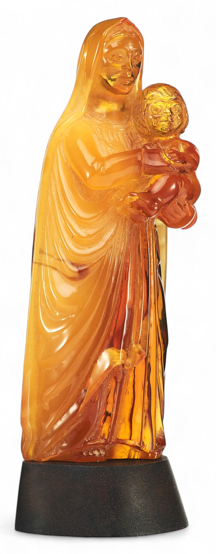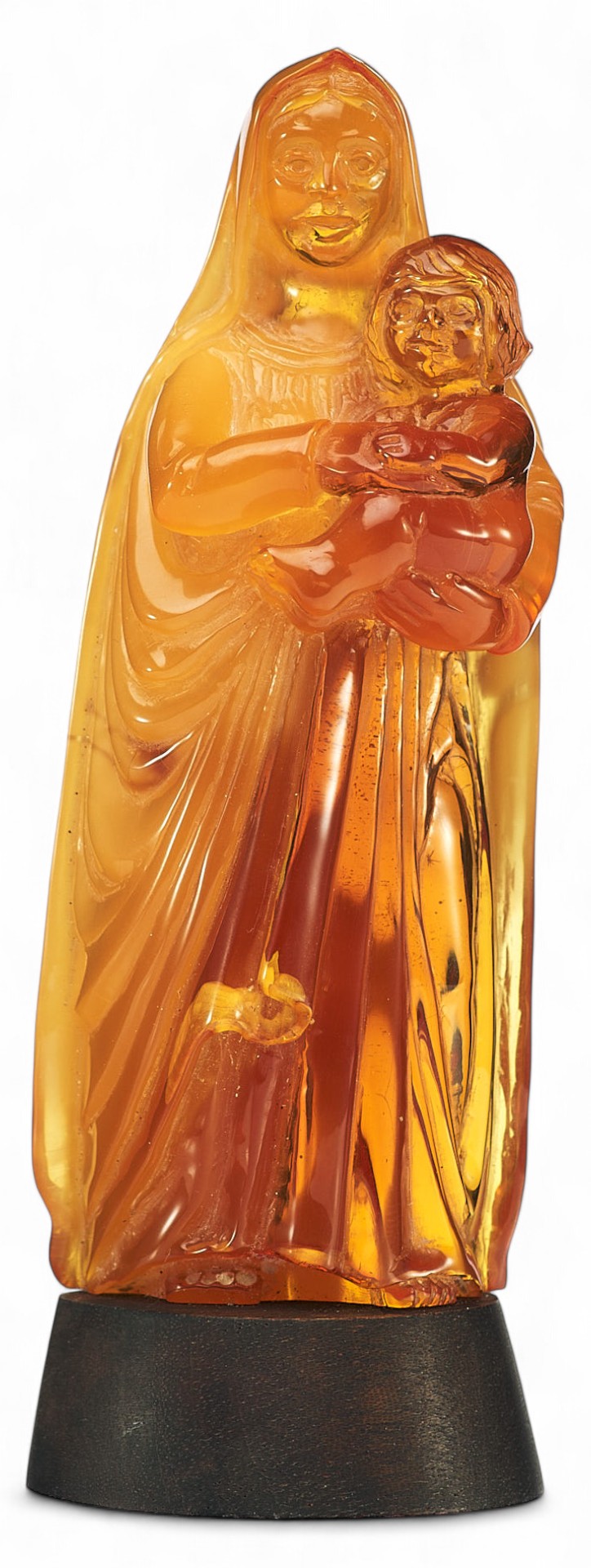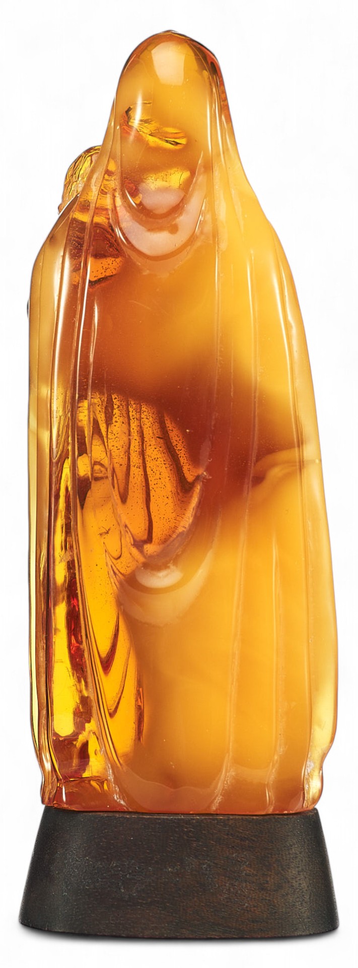 Скульптура "Богоматерь с младенцем", выполненная из янтаря в XIX веке, олицетворяет собой удивительное слияние природы и человеческого творчества.