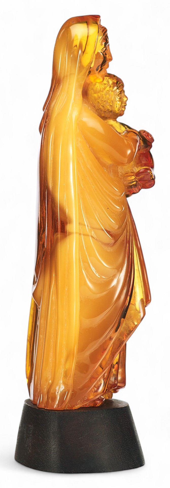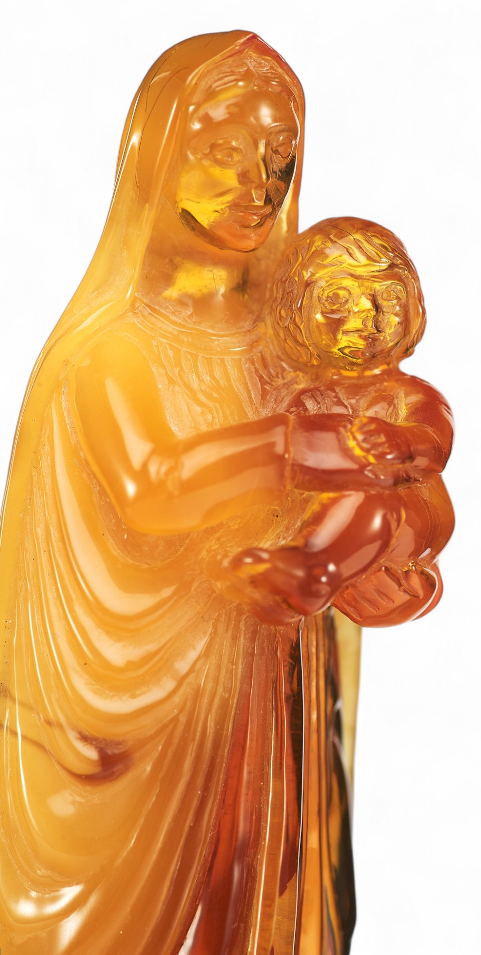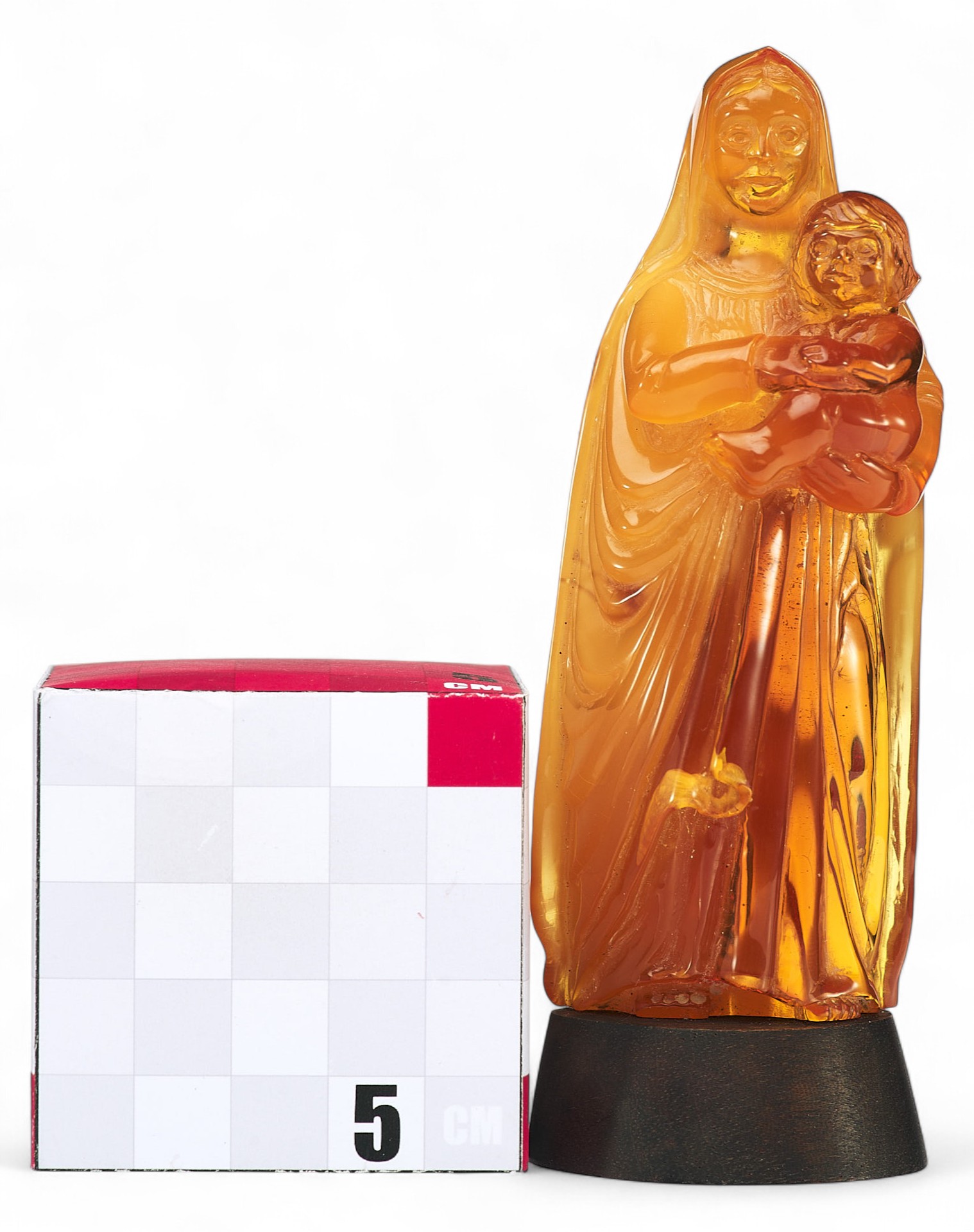 Скульптура "Богоматерь с младенцем", выполненная из янтаря в XIX веке, олицетворяет собой удивительное слияние природы и человеческого творчества.