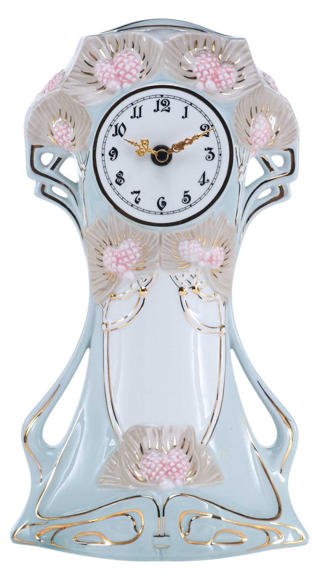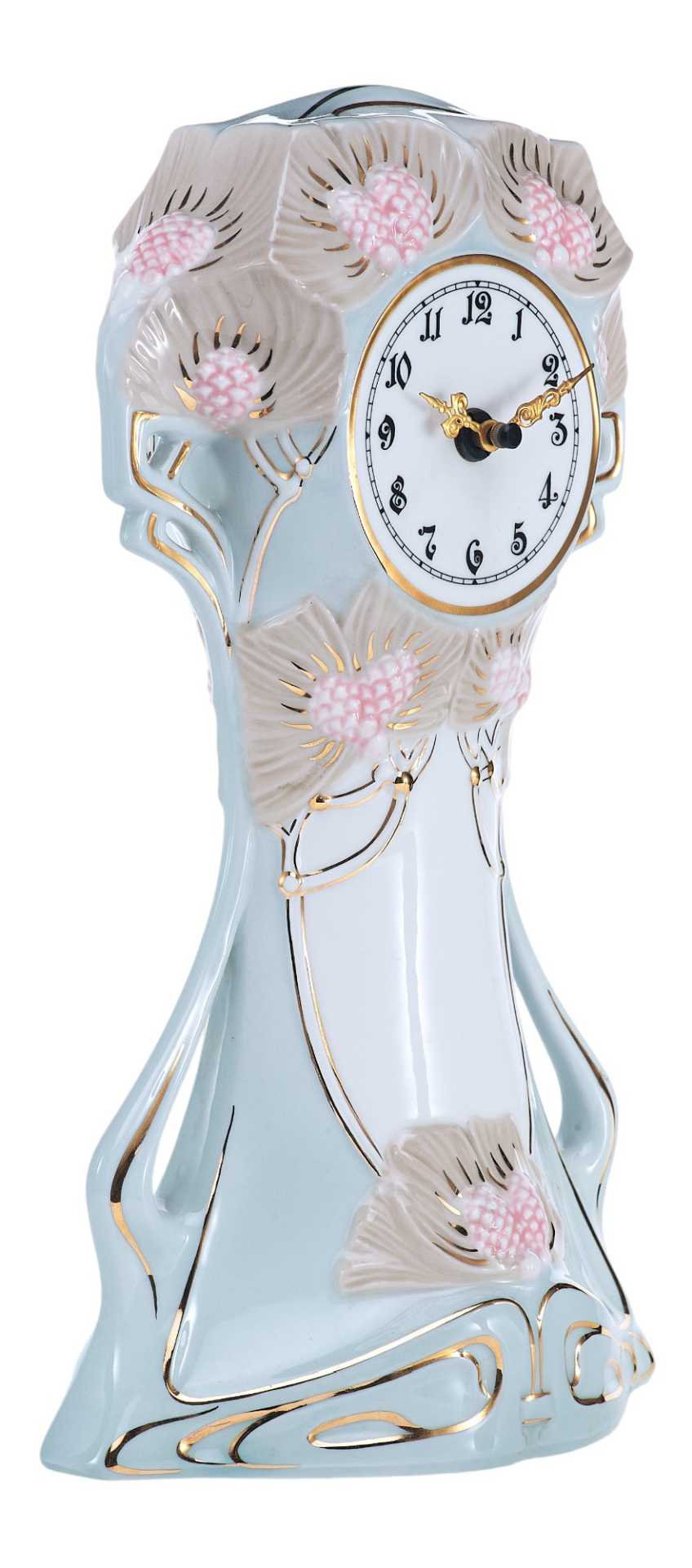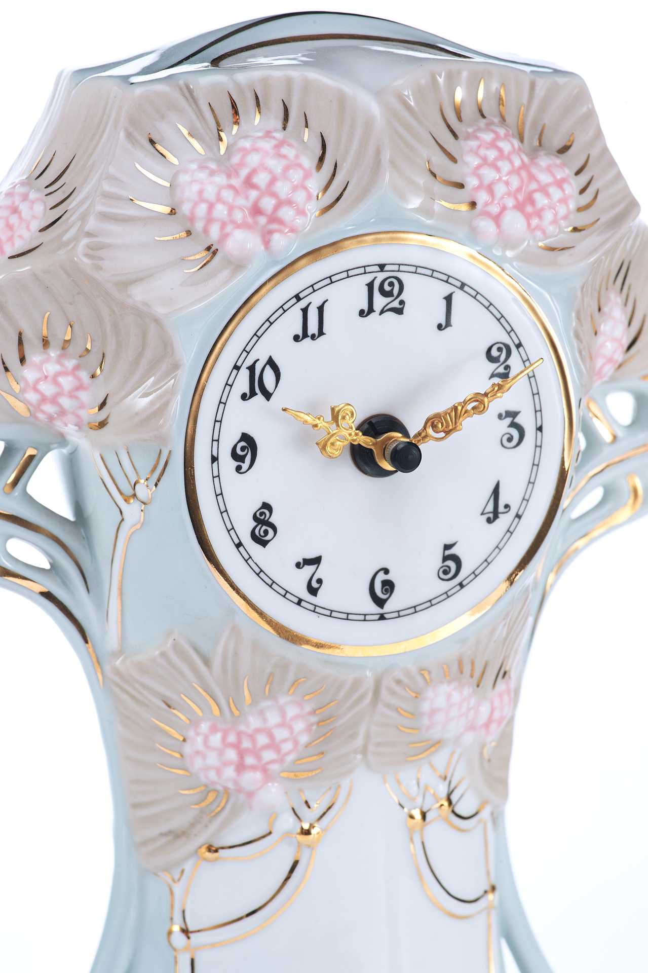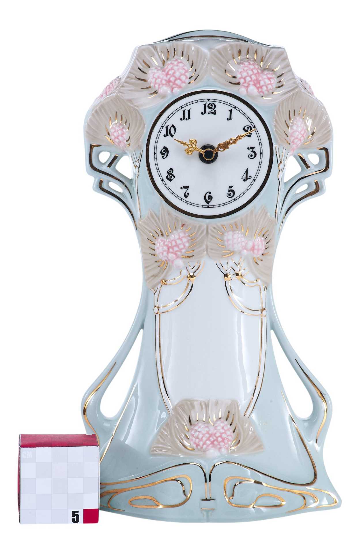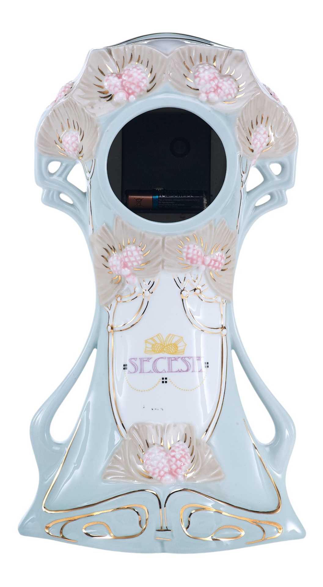 На основании часов клеймо чешской фарфоровой фабрики Royal Dux периода 1946-1990 гг. «В тесте» производственные обозначения: «18115/27/30».
