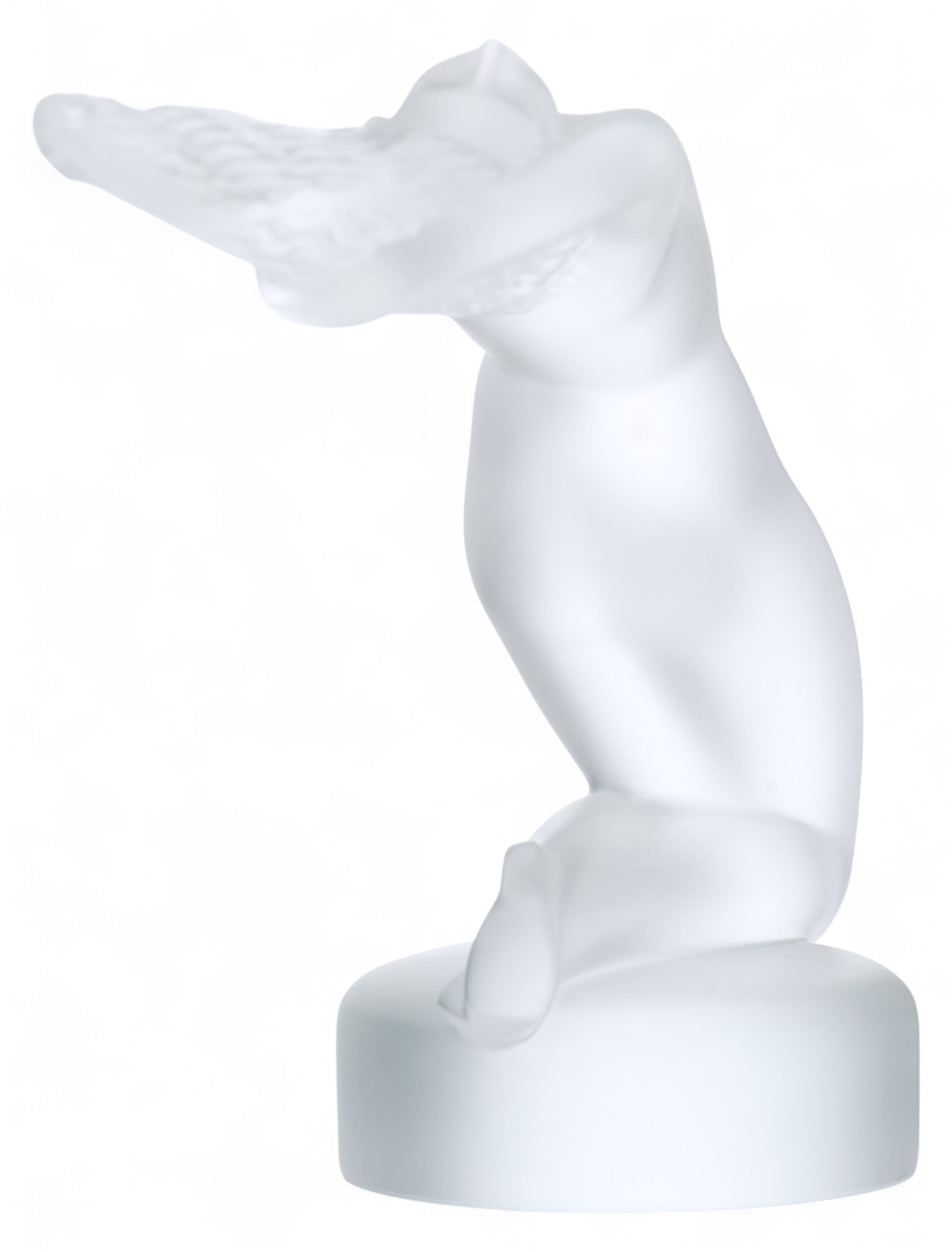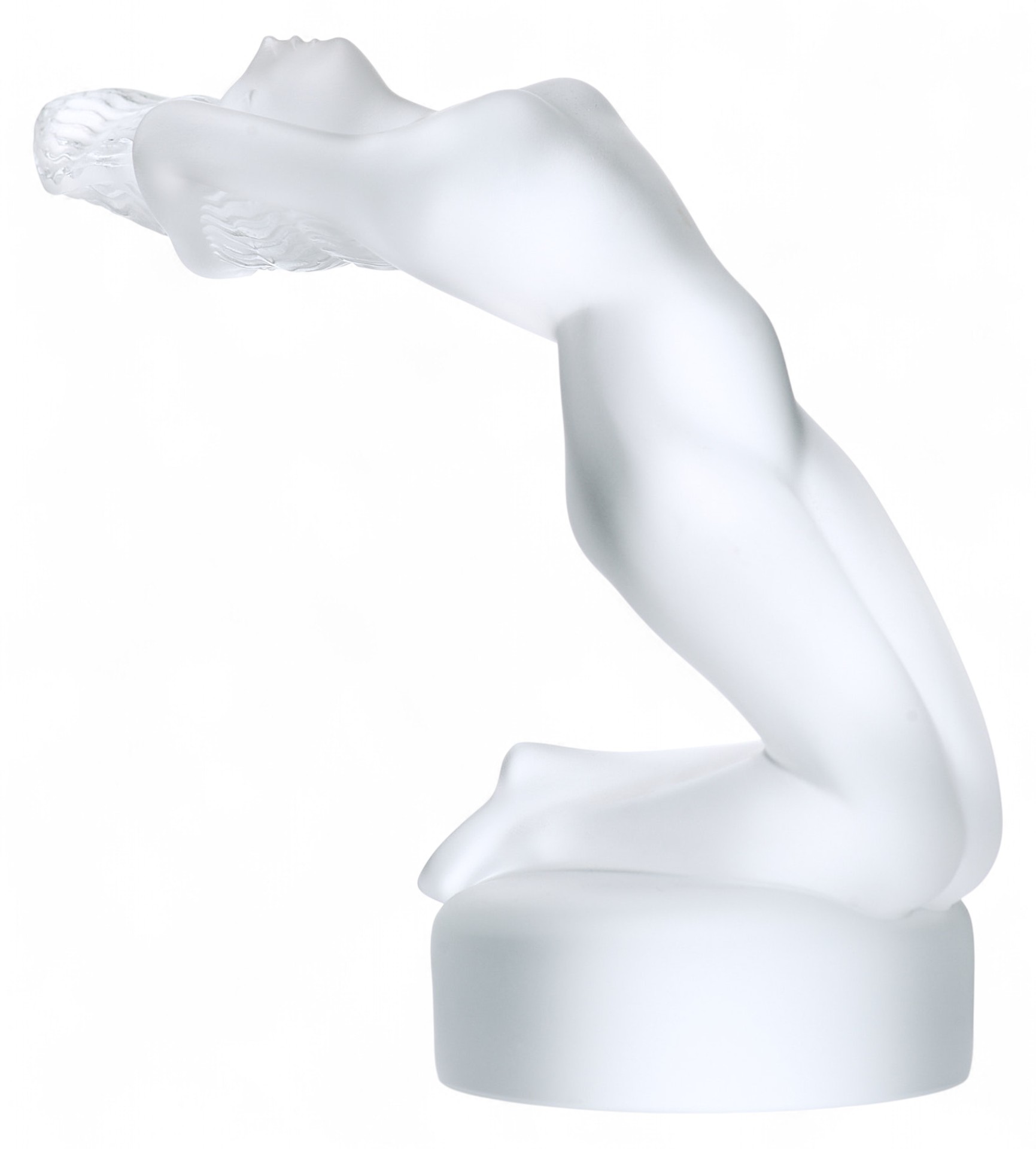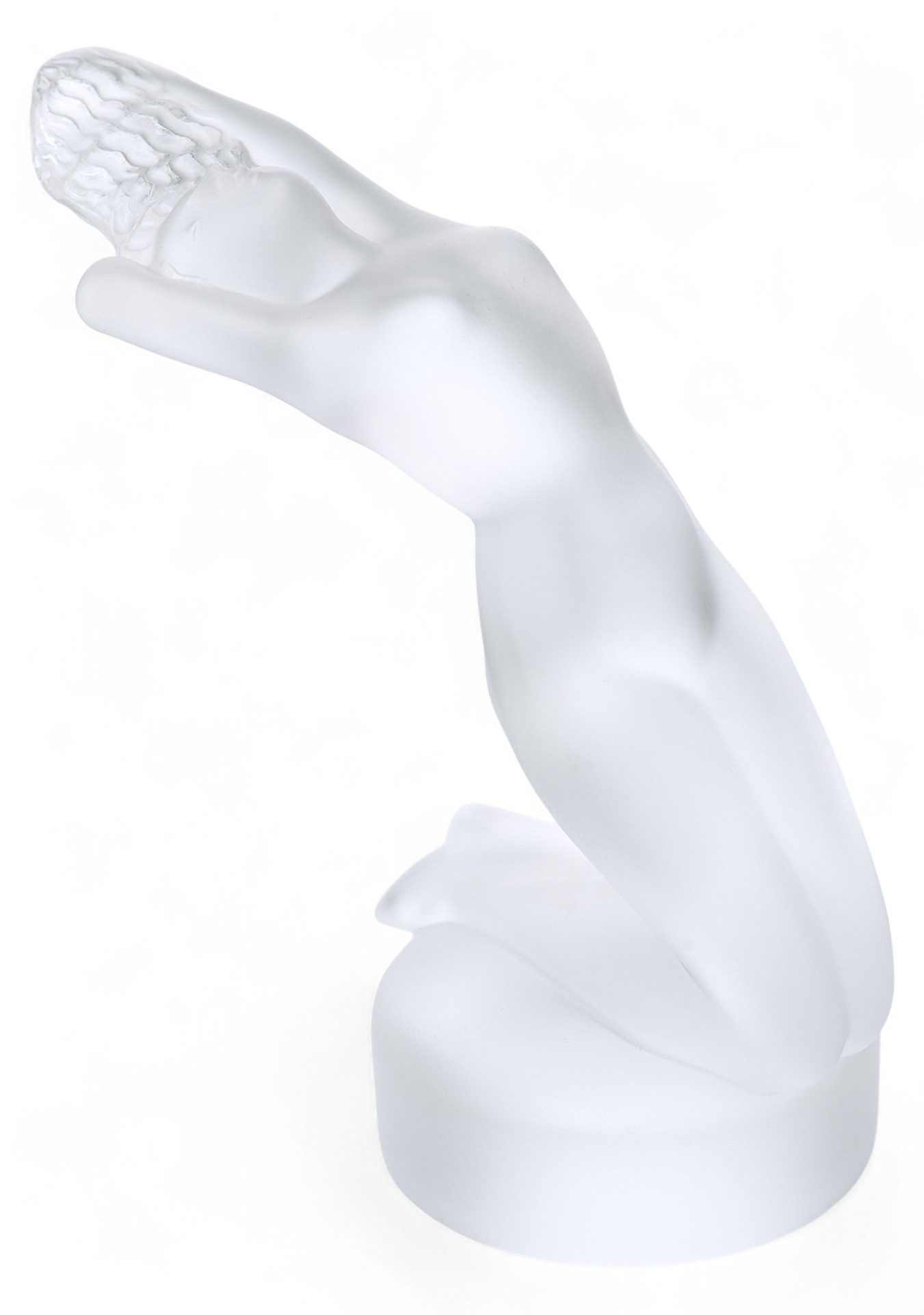 Скульптура обнаженной девушки, изготовленная из матового стекла. На основании выгравирована подпись основателя фабрики Рене Лалика - «Lalique France». Pétíé Jlájífík (фр. Rěílé JUlés Läliqüe; б äfipe.ßi 1860 Ay, Марна —5 мая 1945, Париж) — французский ювелир и стеклянных дел мастер, один из выдающихся представителей ар нуво и ар-деко.