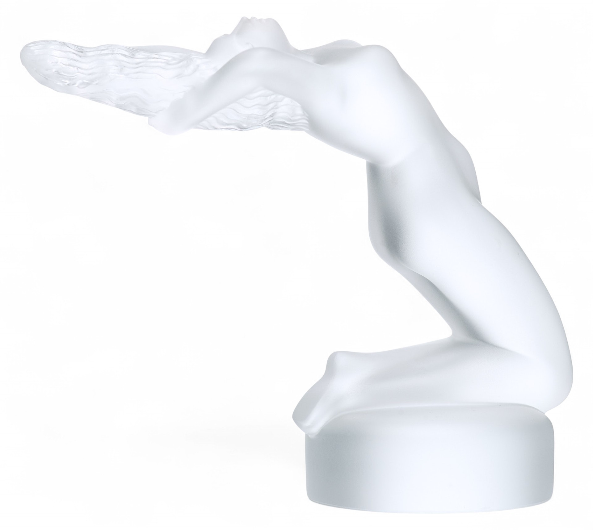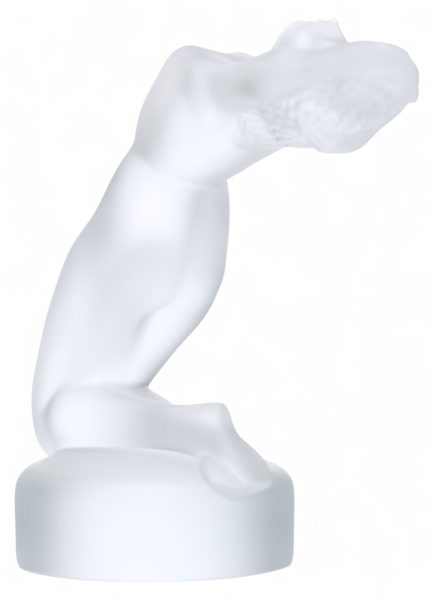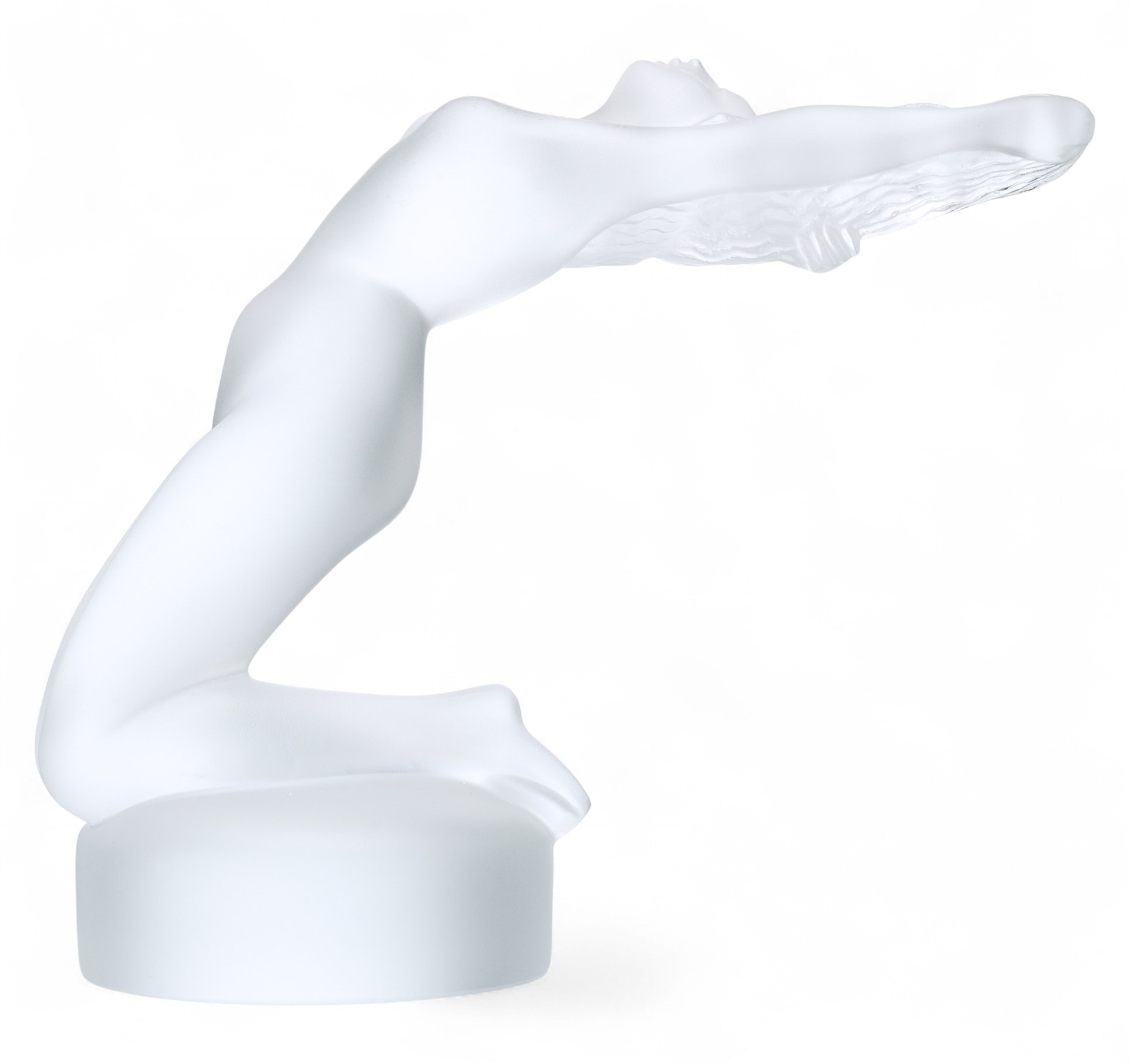 Скульптура обнаженной девушки, изготовленная из матового стекла. На основании выгравирована подпись основателя фабрики Рене Лалика - «Lalique France». Pétíé Jlájífík (фр. Rěílé JUlés Läliqüe; б äfipe.ßi 1860 Ay, Марна —5 мая 1945, Париж) — французский ювелир и стеклянных дел мастер, один из выдающихся представителей ар нуво и ар-деко.