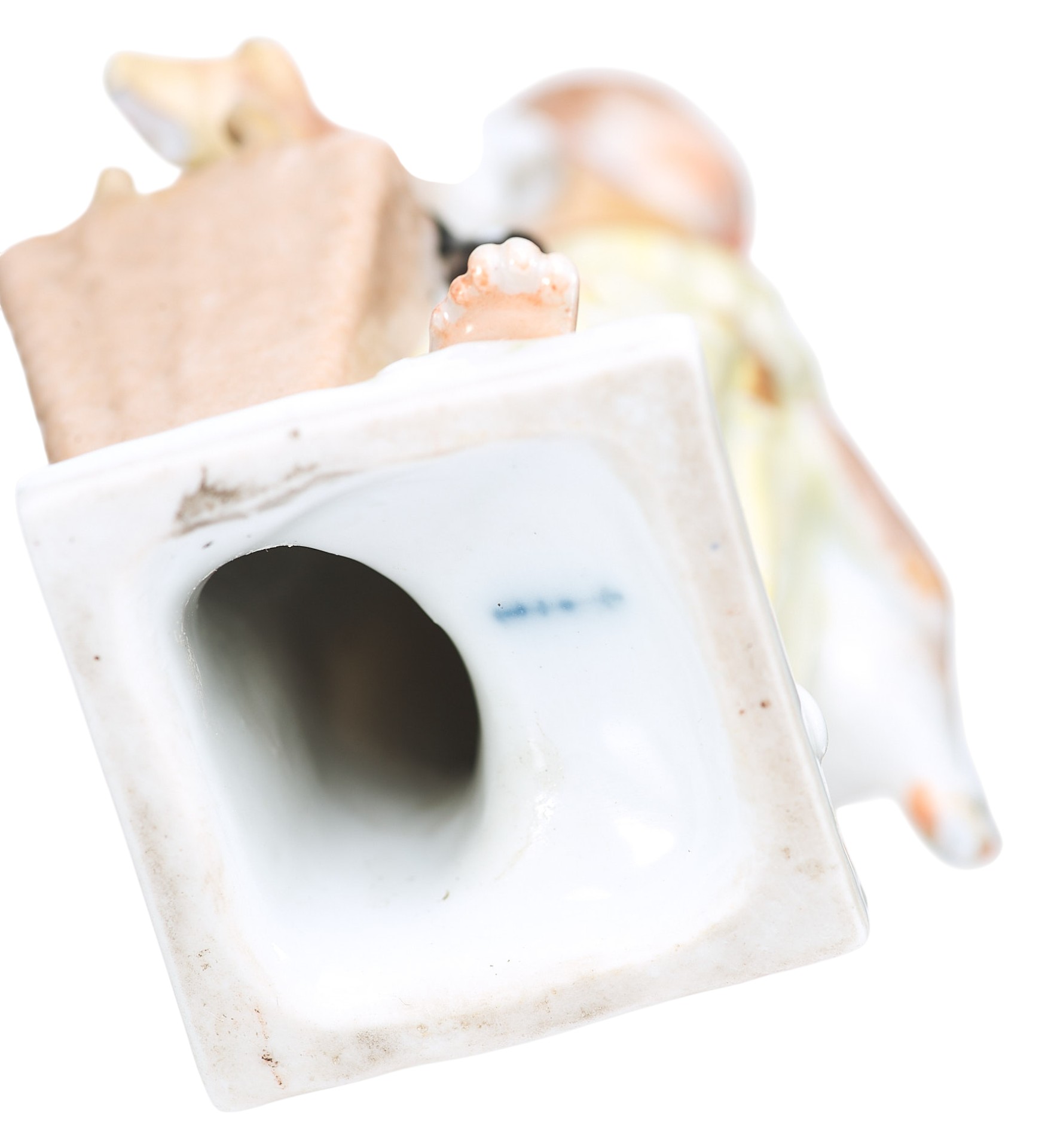 На дне статуэтки присутствует клеймо (синее, печатное, подглазурное) Королевской фарфоровой мануфактуры в Берлине^ ставившееся в конце XIX - начале XX века.