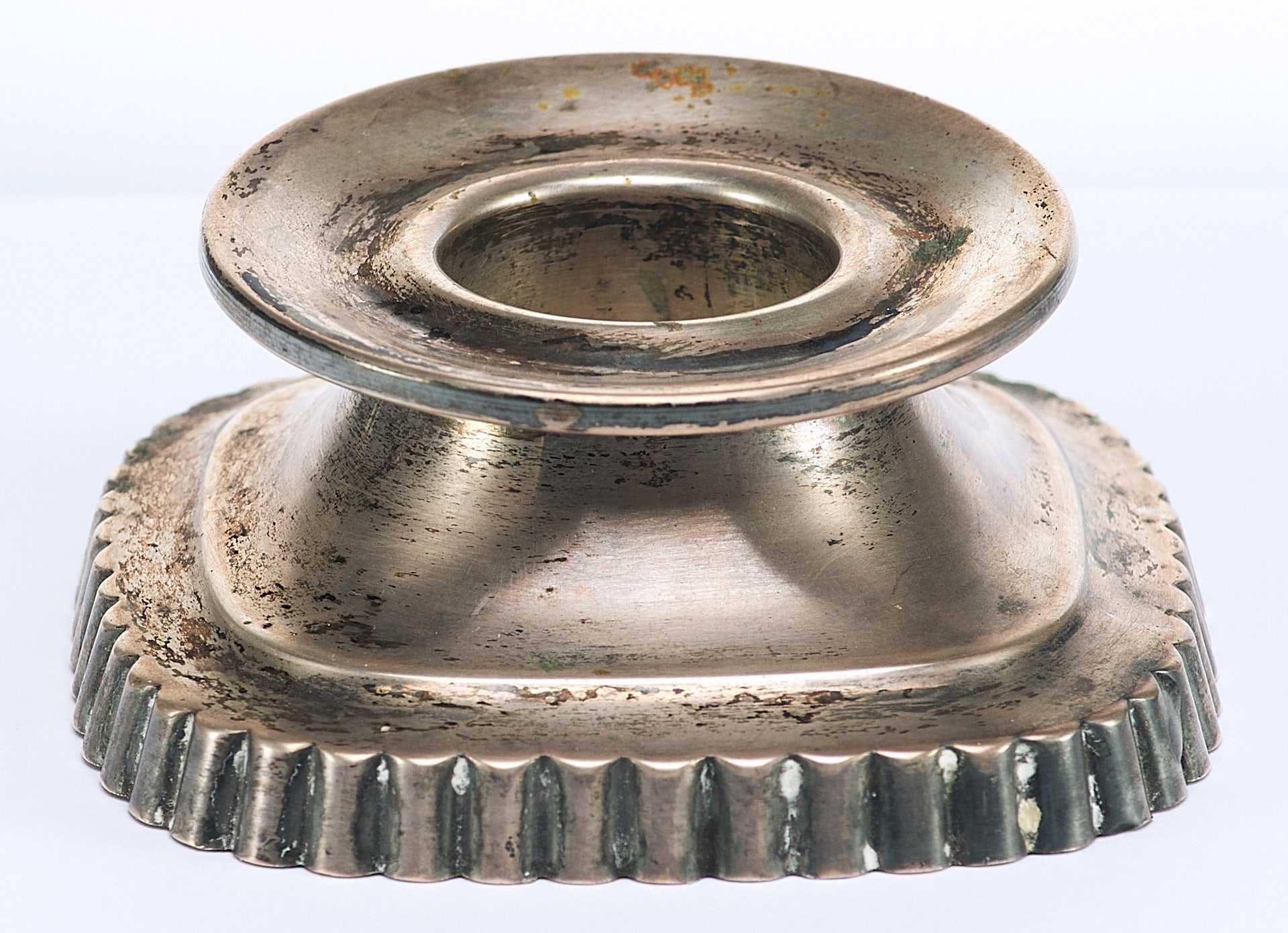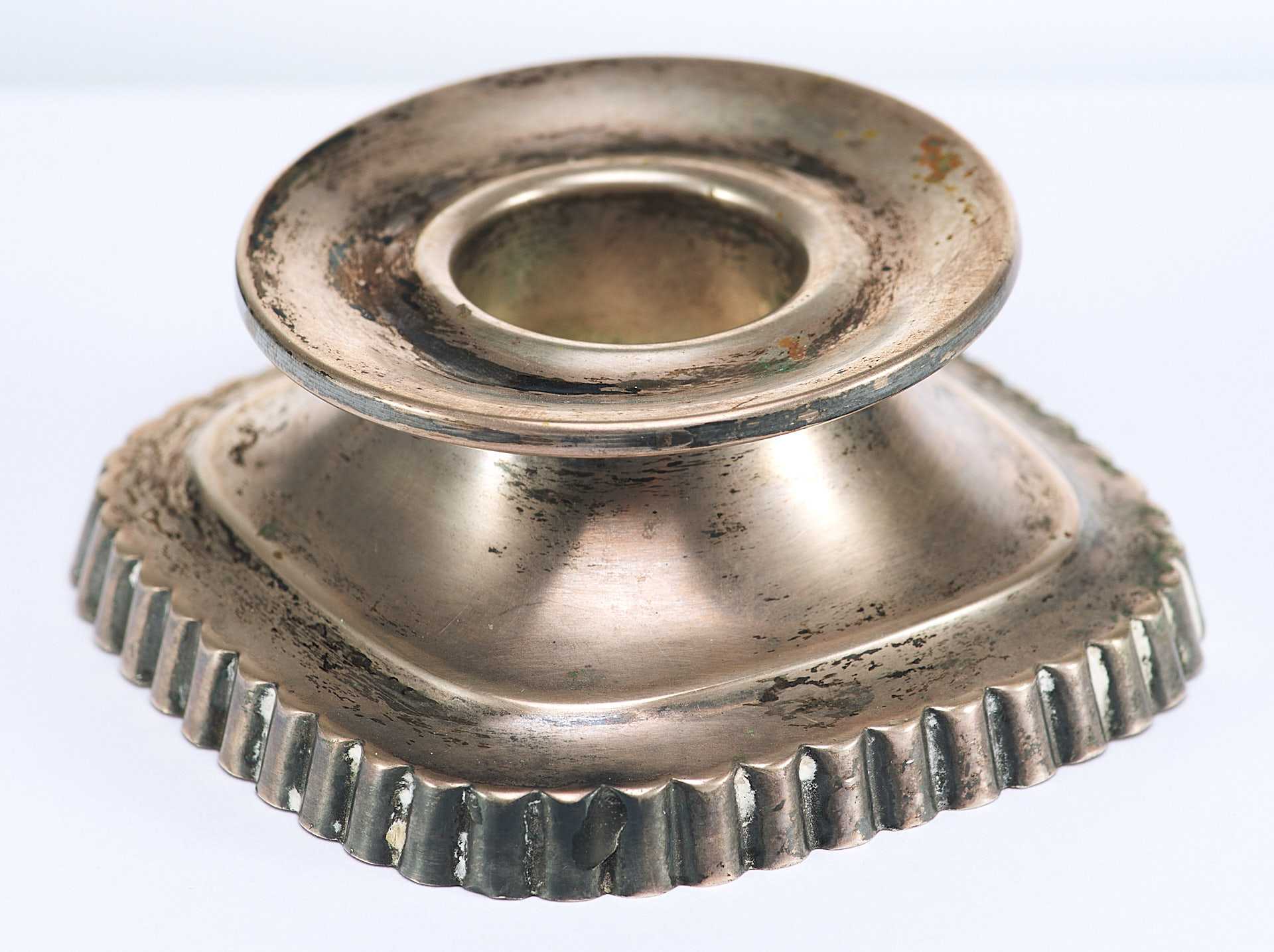 Представлен серебряный подсвечник с рифленым основанием. На дне подсвечника мастика.