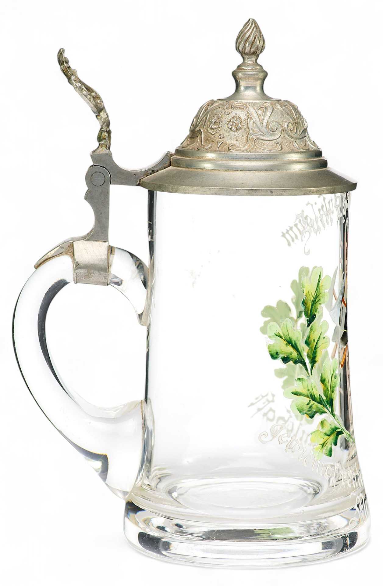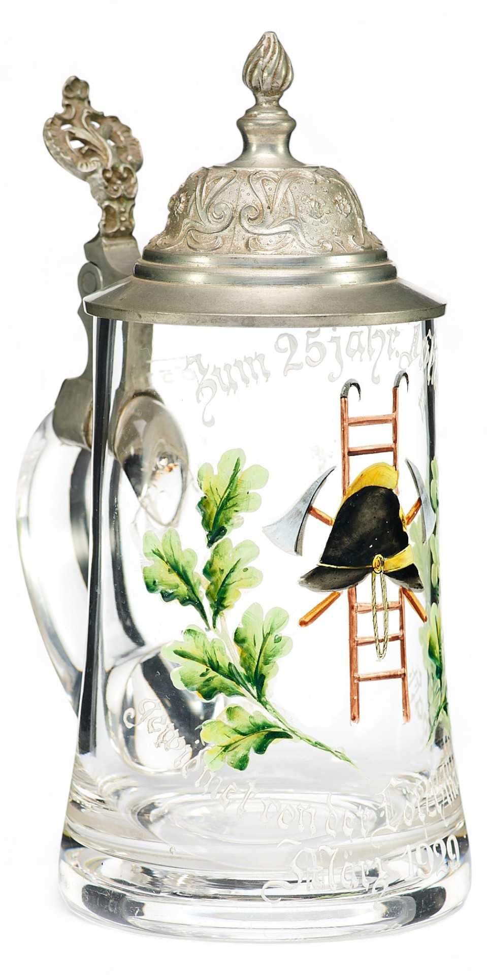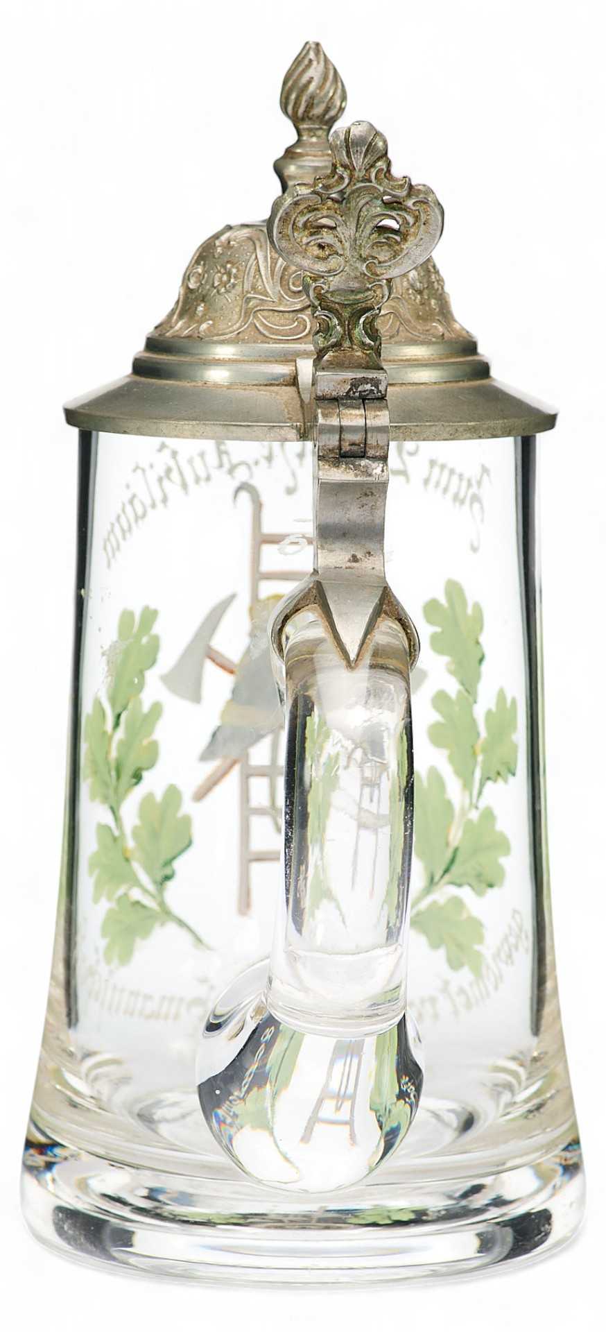 изображающей пожарную каску на фоне перекрещенных пожарных топоров и лестницы. По сторонам от пожарной атрибутики изображены два венка из дубовых листьев. Вверху и внизу изображение обрамляет памятная надпись с датой - 1929 г., свидетельствующая о юбилейном 25-летнем сроке службы. Первые пивные кружки стали появляться в Германии в начале 16 века.