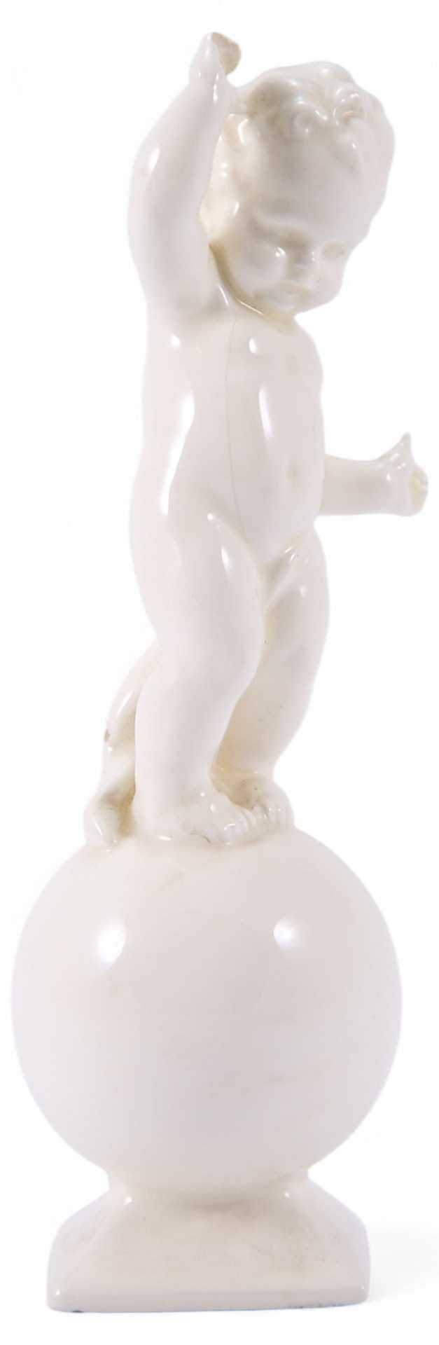 Скульптура маленького ребенка балансирующего на шаре. На основании фигуры клейма: штамп «Germany», 670 - в тесте.