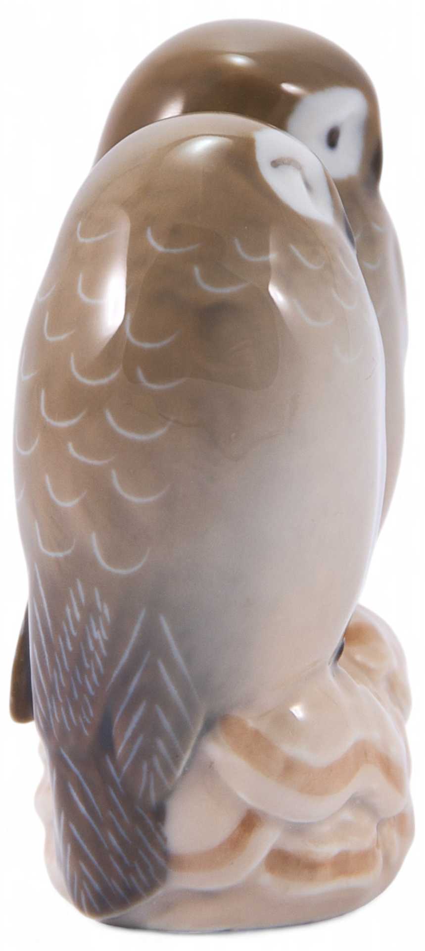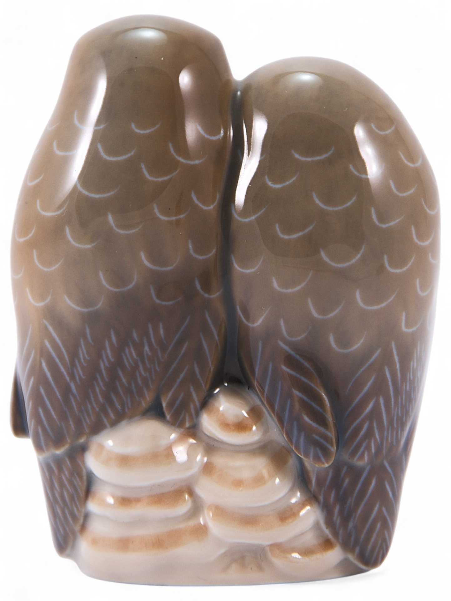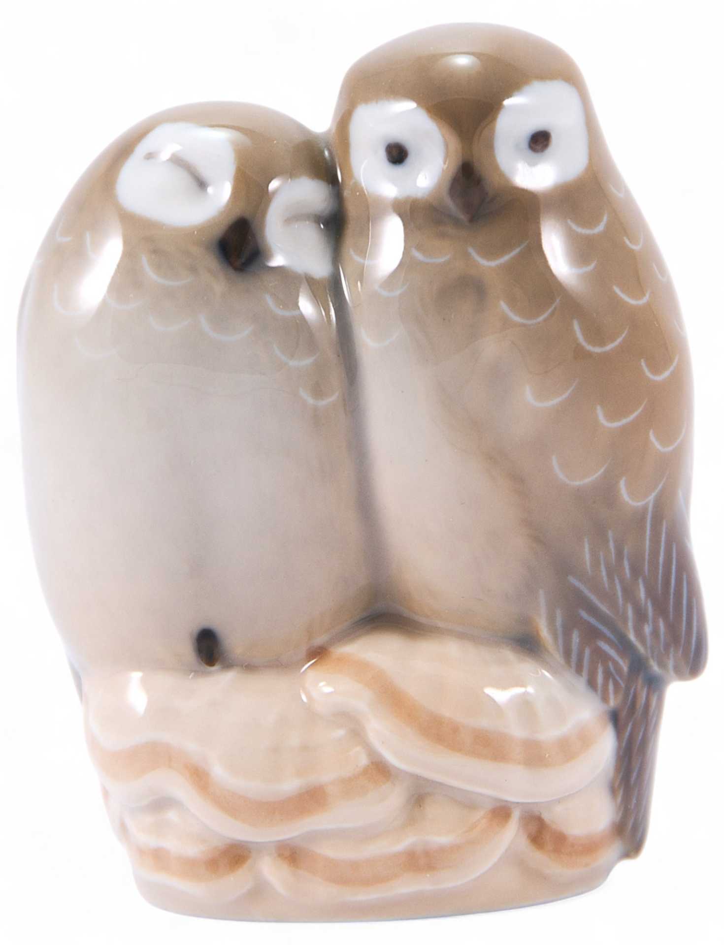 Скульптура прижавшихся друг к другу влюбленных совят. На основании фигуры клеймо Королевской копенгагенской