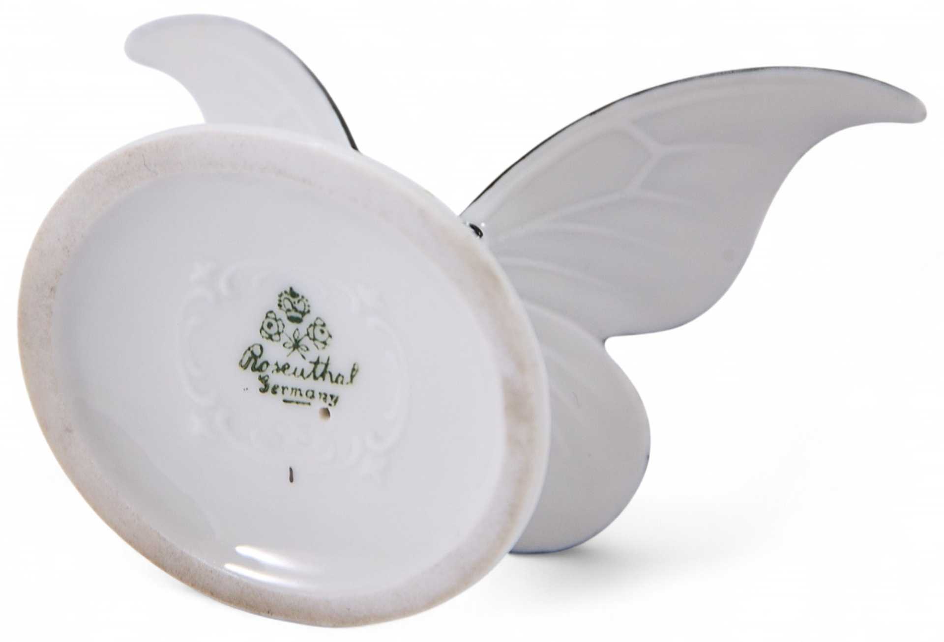 Скульптура бабочки. На донце основания скульптуры клеймо фабрики-изготовителя «Rosenthal», ставившееся с 1934 по 1945 гг. Rosenthal Factory Основана в 1879 году Филипом Розенталем в Зельбе, где с XVIII века существовало несколько фарфоровых производств. В 1897 году преобразована в акционерное общество.