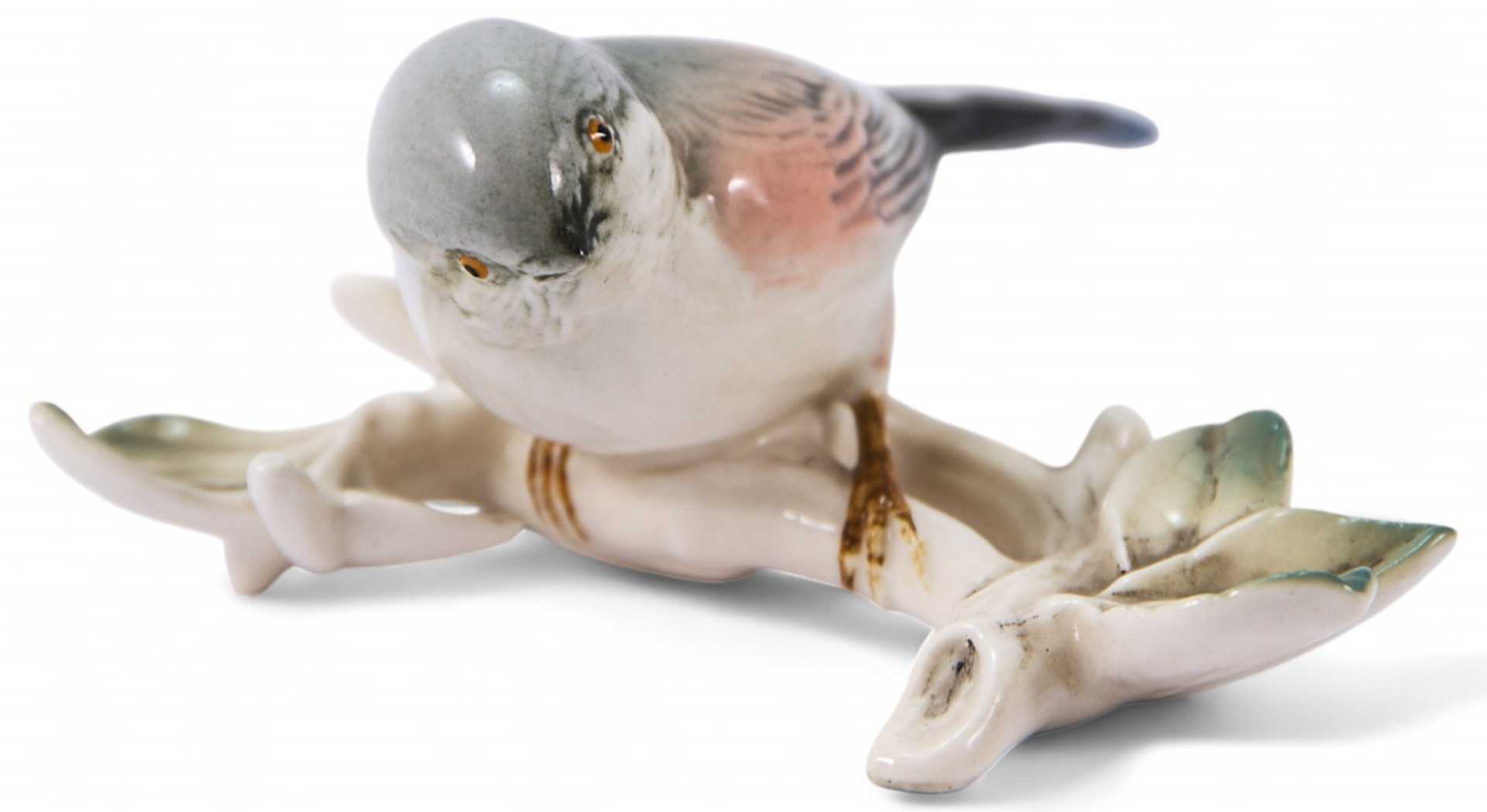 Скульптура Коноплянка фарфор, Карл Энц (Karl Ens) Германия после 1945 г. Н-14,5 см. Фолькштадт. Германия после 1945