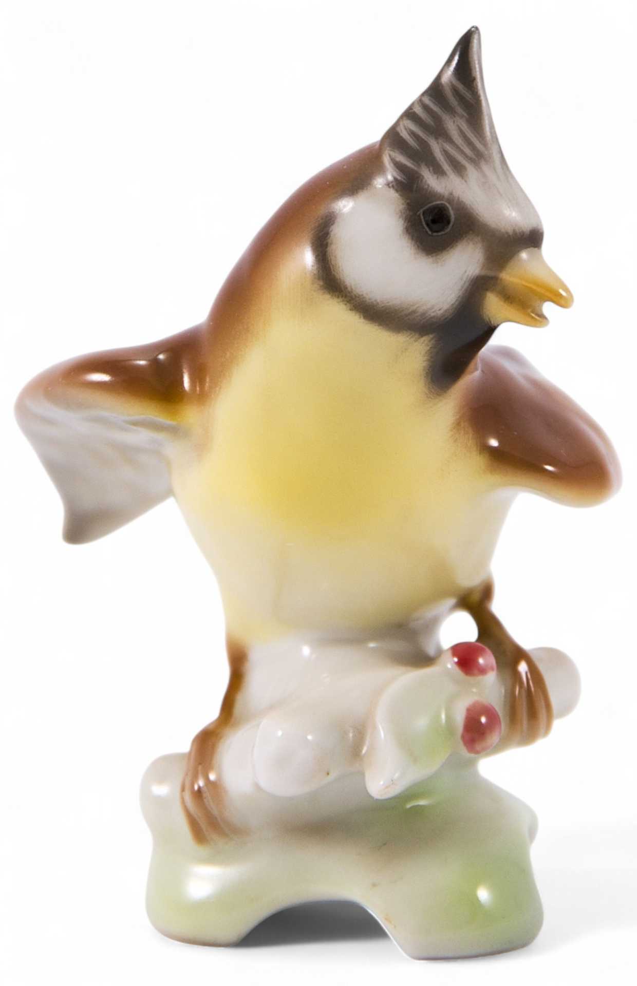 Скульптура Хохлатый жаворонок фарфор, Хютшенреутер (Lorenz Hutschenreuter) Германия 1970-е Н-7,8 см. Германия 1970-гг