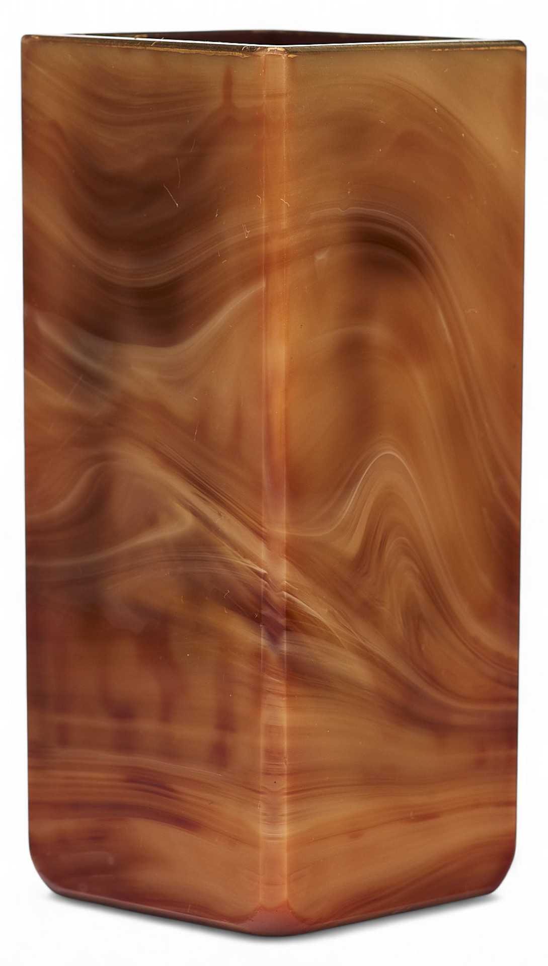 стекло молочного цвета. Халцедоновым стеклом принято называть стекло, состоящее из различно расположенных и различно окрашенных слоев, составляющих узоры, подобные камню халцедону. “Calcedonio” представляет собой большое разнообразие окраски и узора. Как известно, в минералогии халцедон составляет одну группу с агатом и яшмой. Поэтому в старых итальянских трактатах можно встретить также наименования «яшмового» и «агатового» стекла.