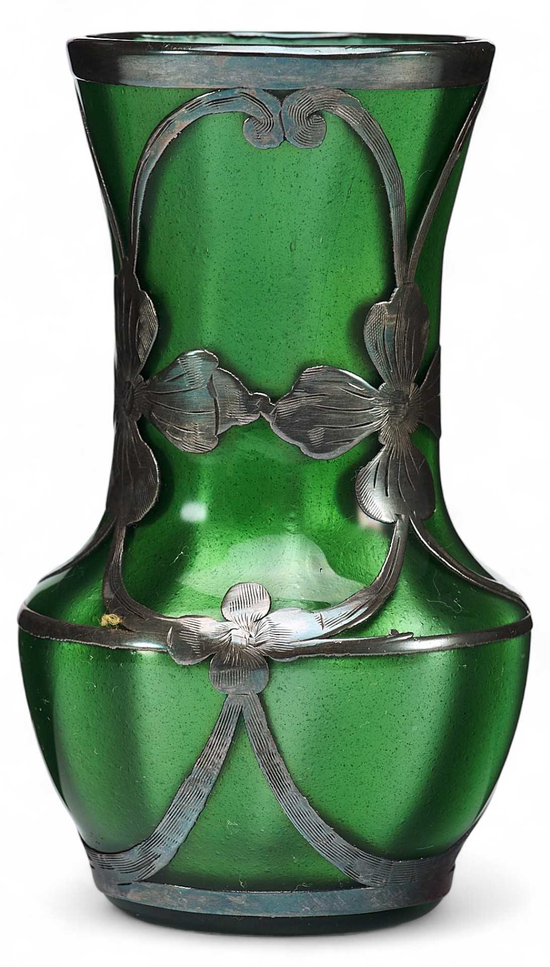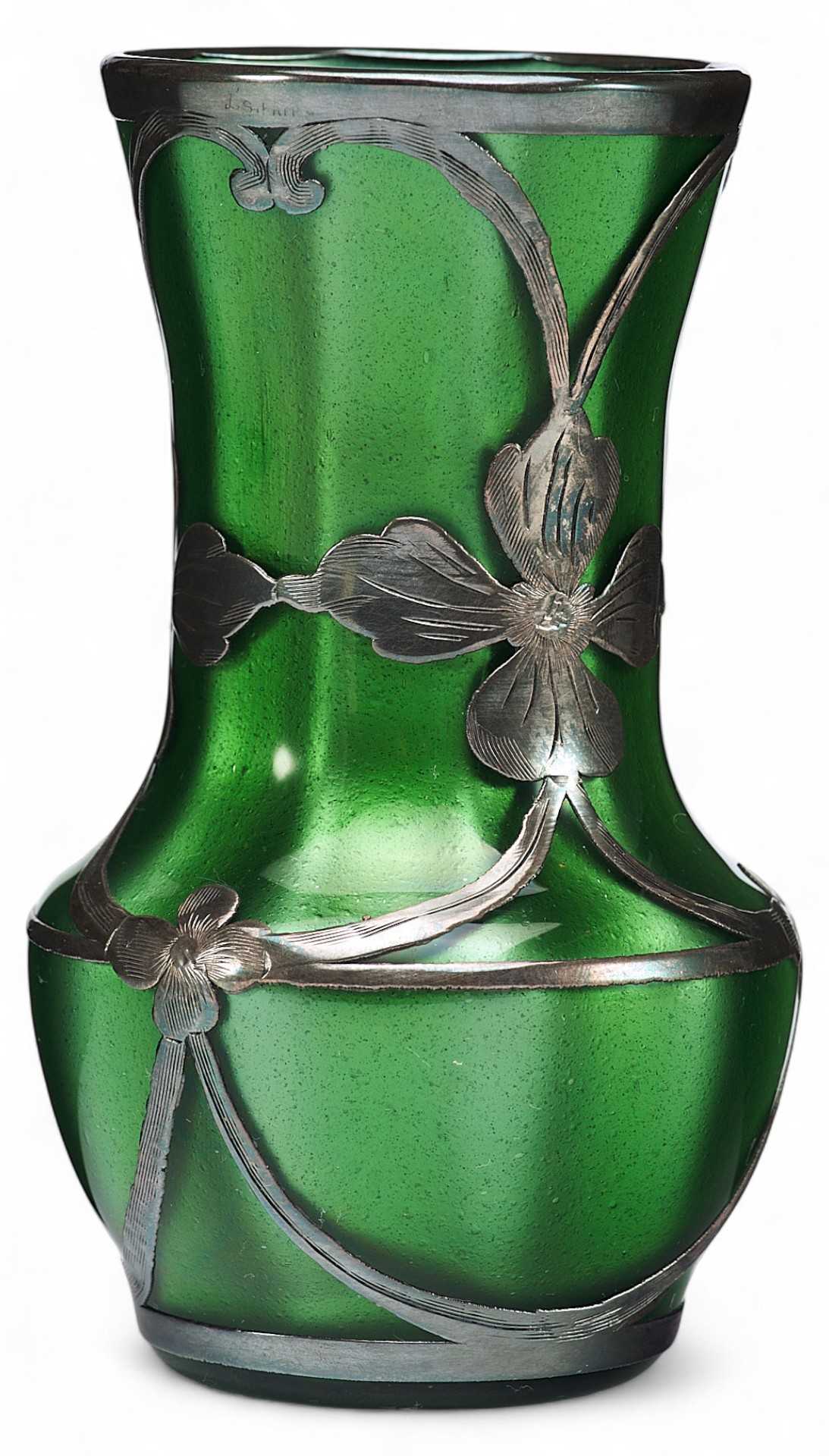 Ваза в стиле модерн металлиновое стекло, серебро, Loetz Witwe нач. ХХ в. Н-10,3 см. Европа Начало XX века