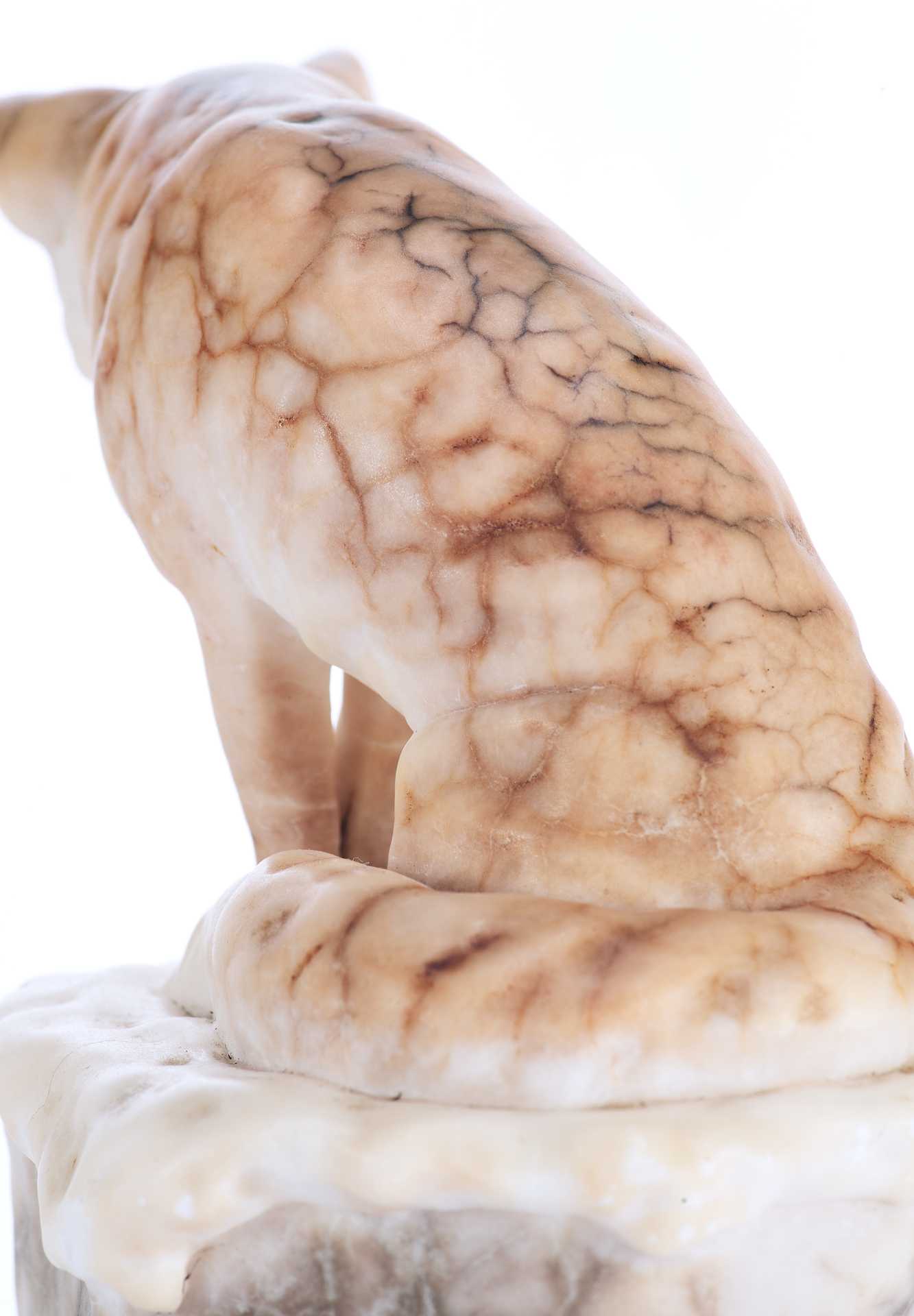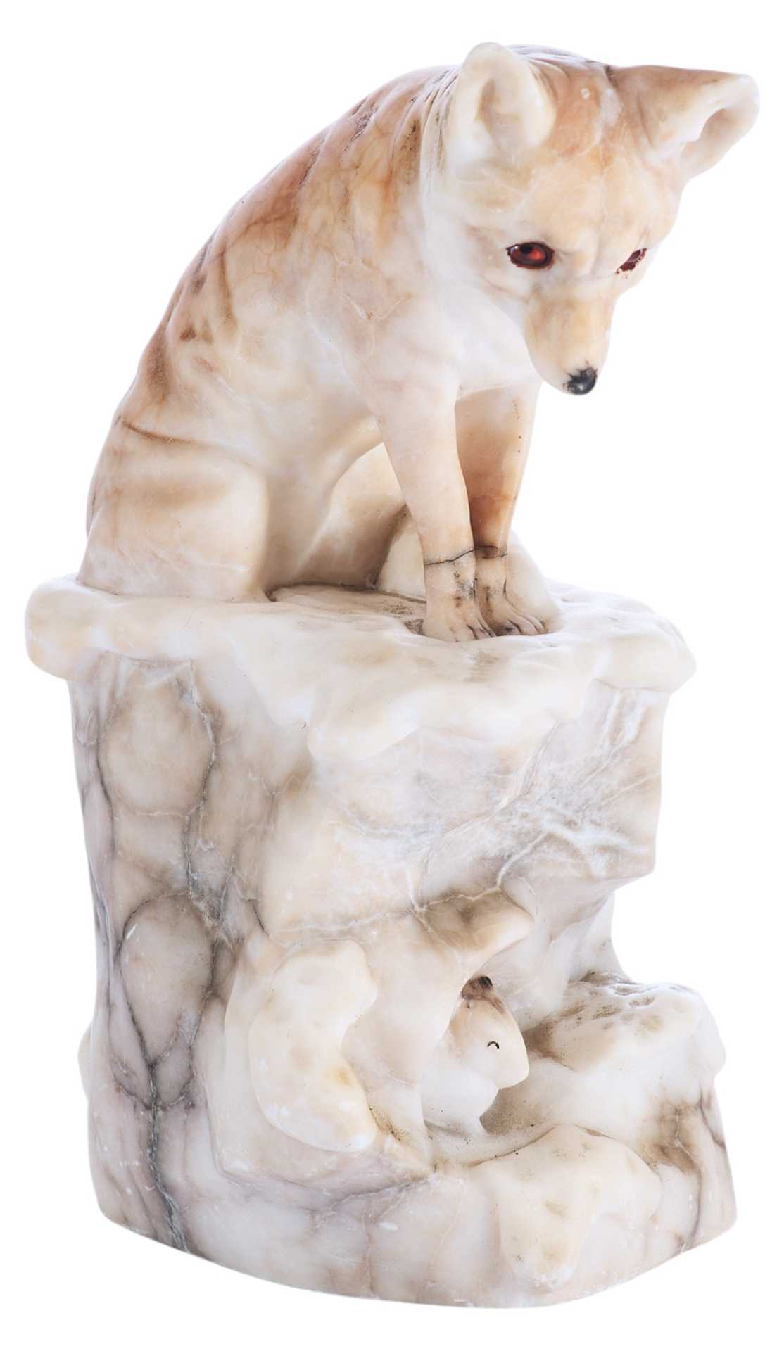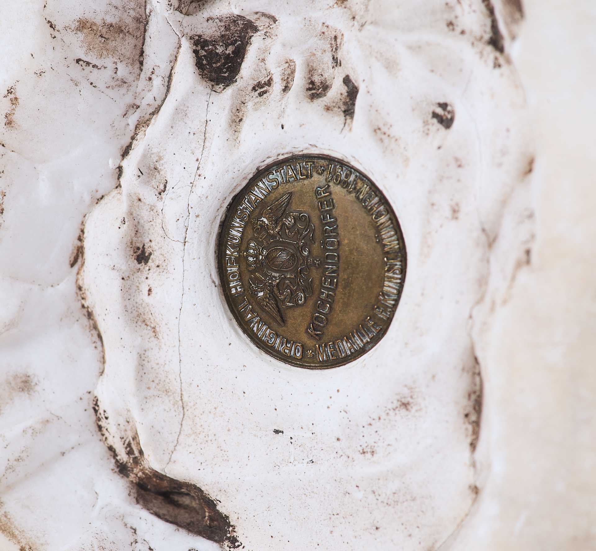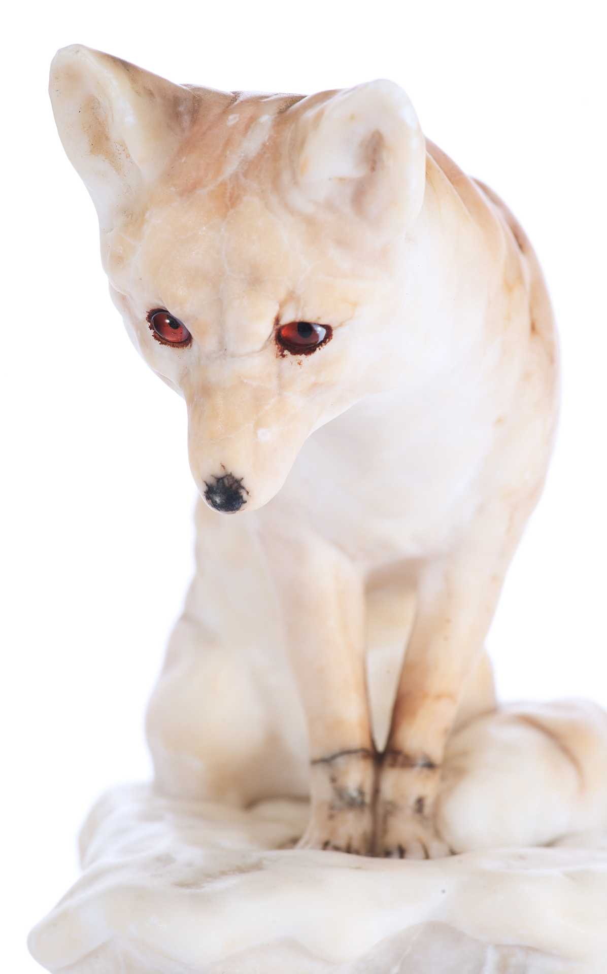 На дне статуэтки присутствуют клеймо: круглый бронзовый медальон с изображением герба над словом «Kochendörfer», и пущенная по кругу надпись: «Original Hofkunstanstalt / Medaille F. Kunst. München 1891». Скульптурная композиция представляет собой реалистическое изображение лисы, сидящей на уступе и напряженно высматривающей свою добычу.