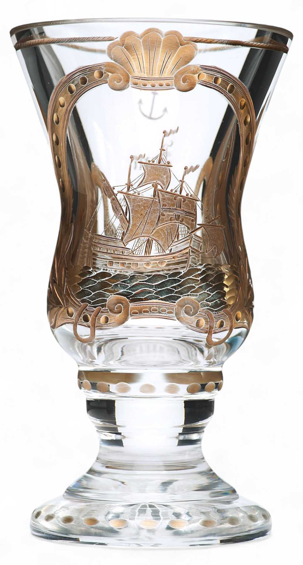 Бокал с росписью в средневековом стиле Богемия кон. XIX в. Н-18,5 см. Конец XIX века