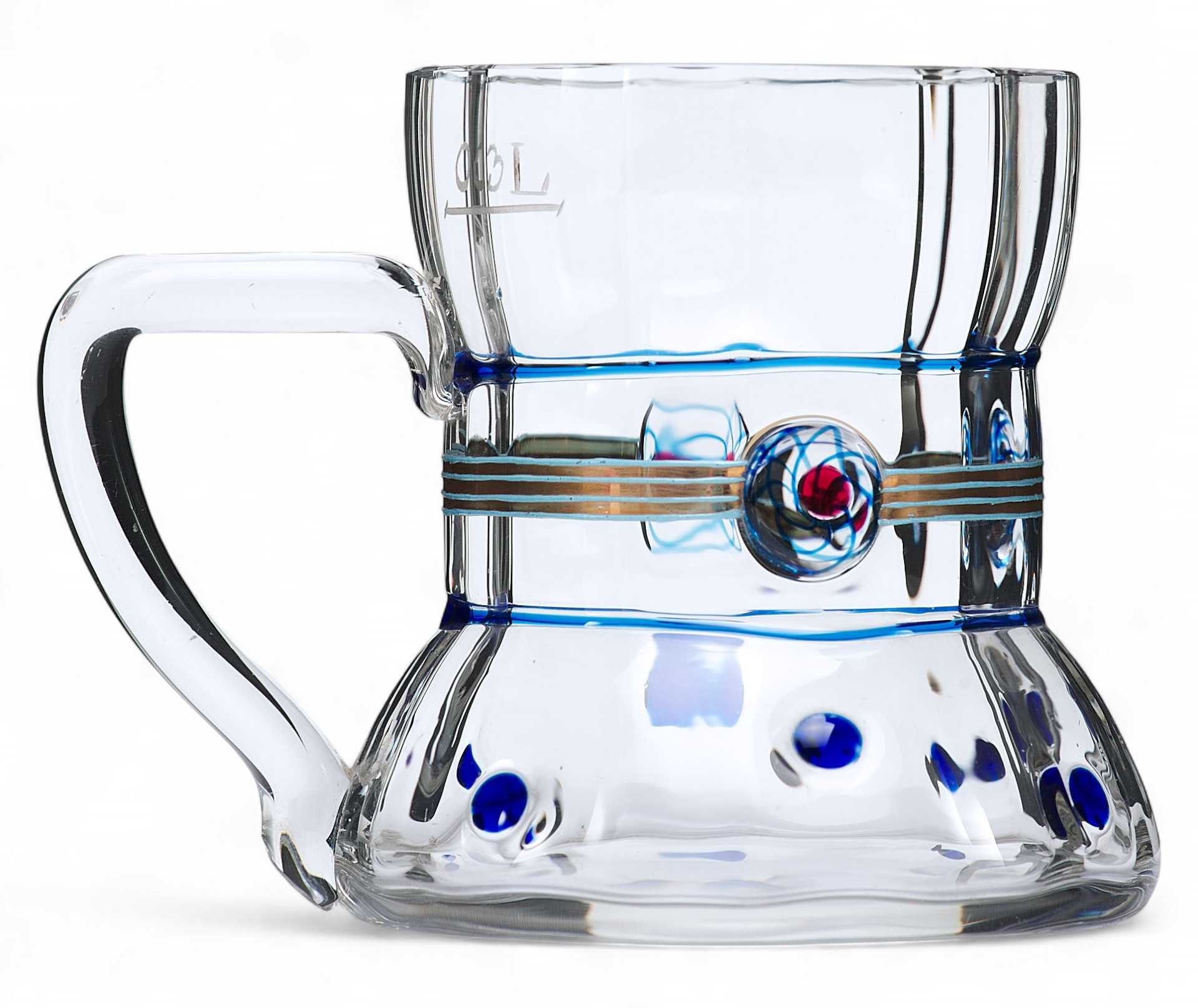 горошин и круглой розетки на узкой части тулова. Узкая часть украшена тонким золоченым пояском. По краю кружки гравировка: «0,3 L».