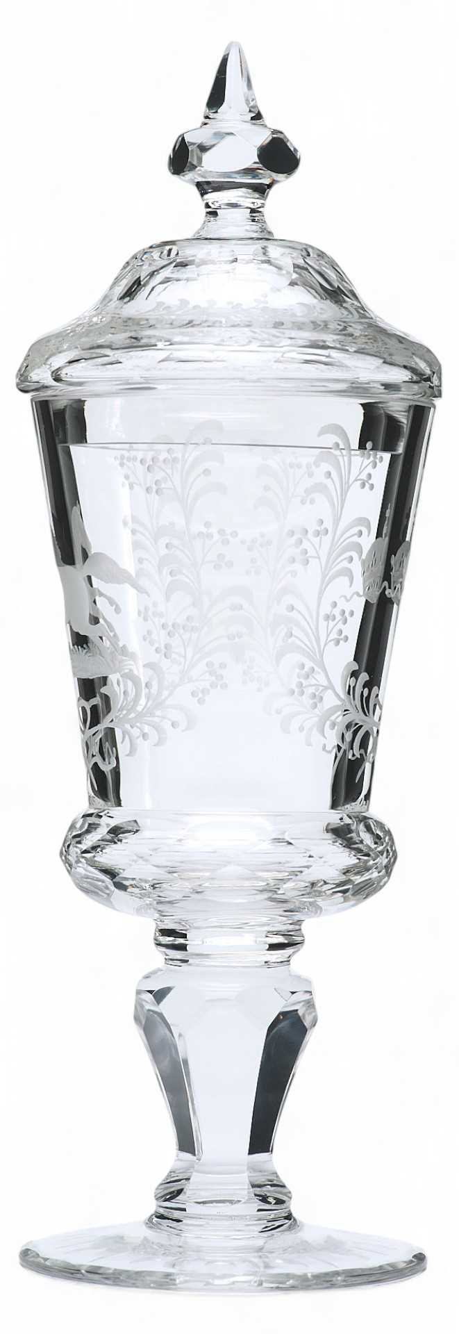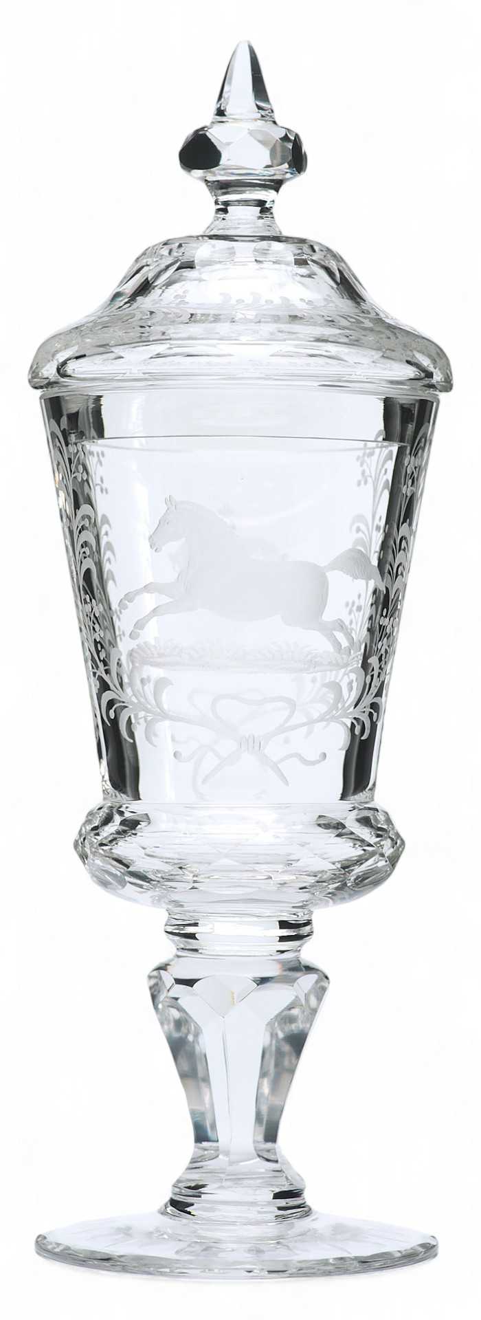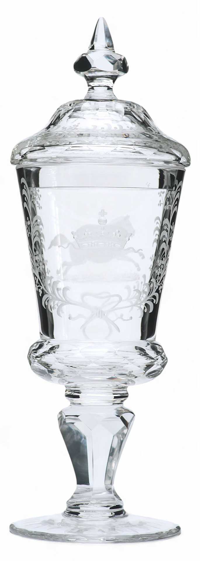 По своим художественным и стилистическим признакам и качеству обработки материала кубок с крышкой относится к продукции богемских мастерских XIX века.