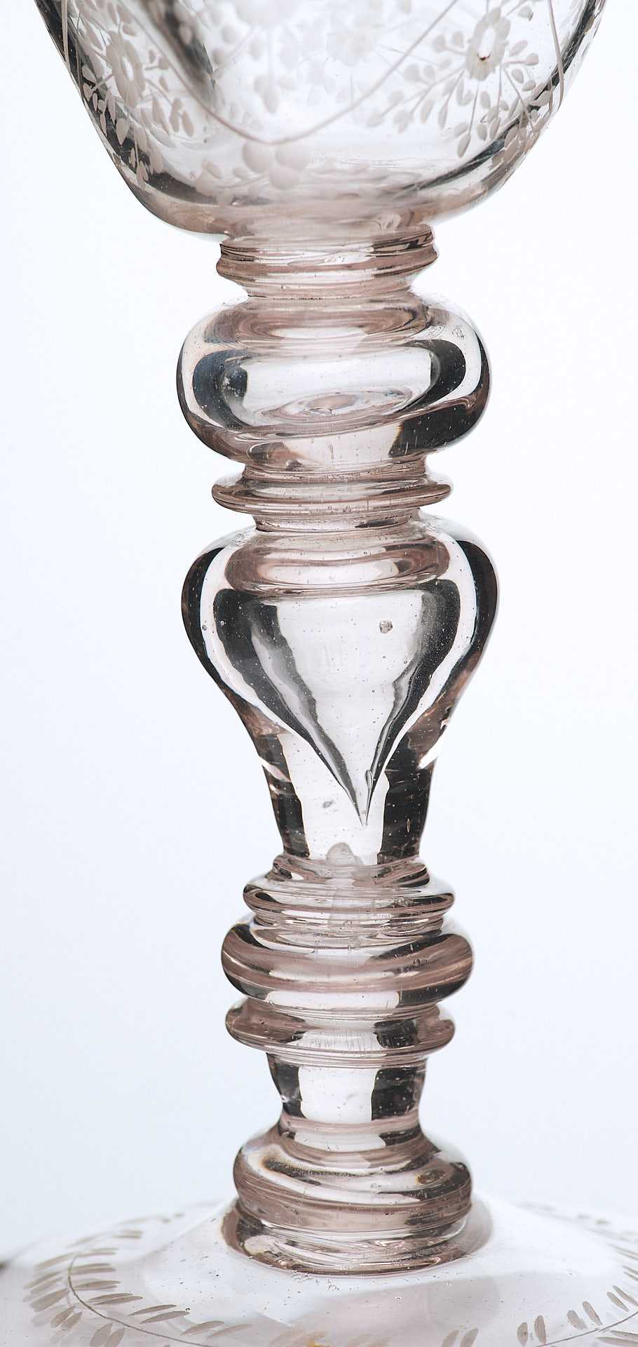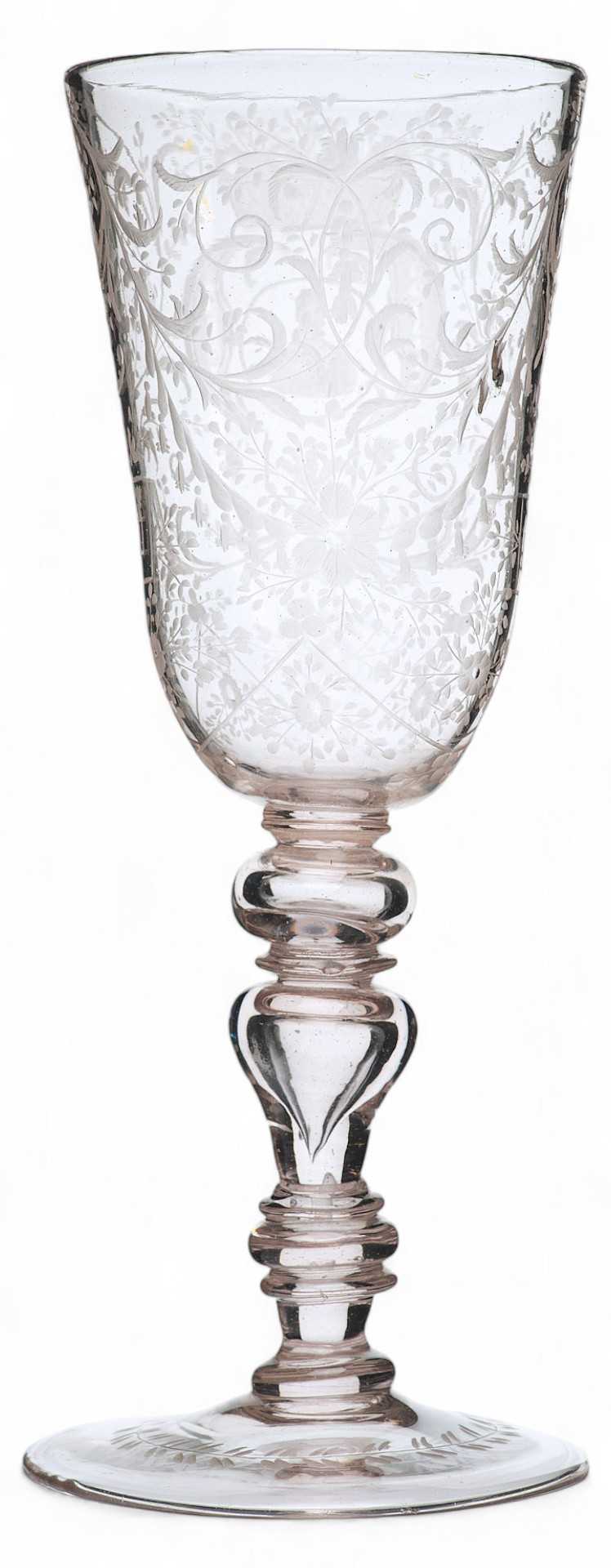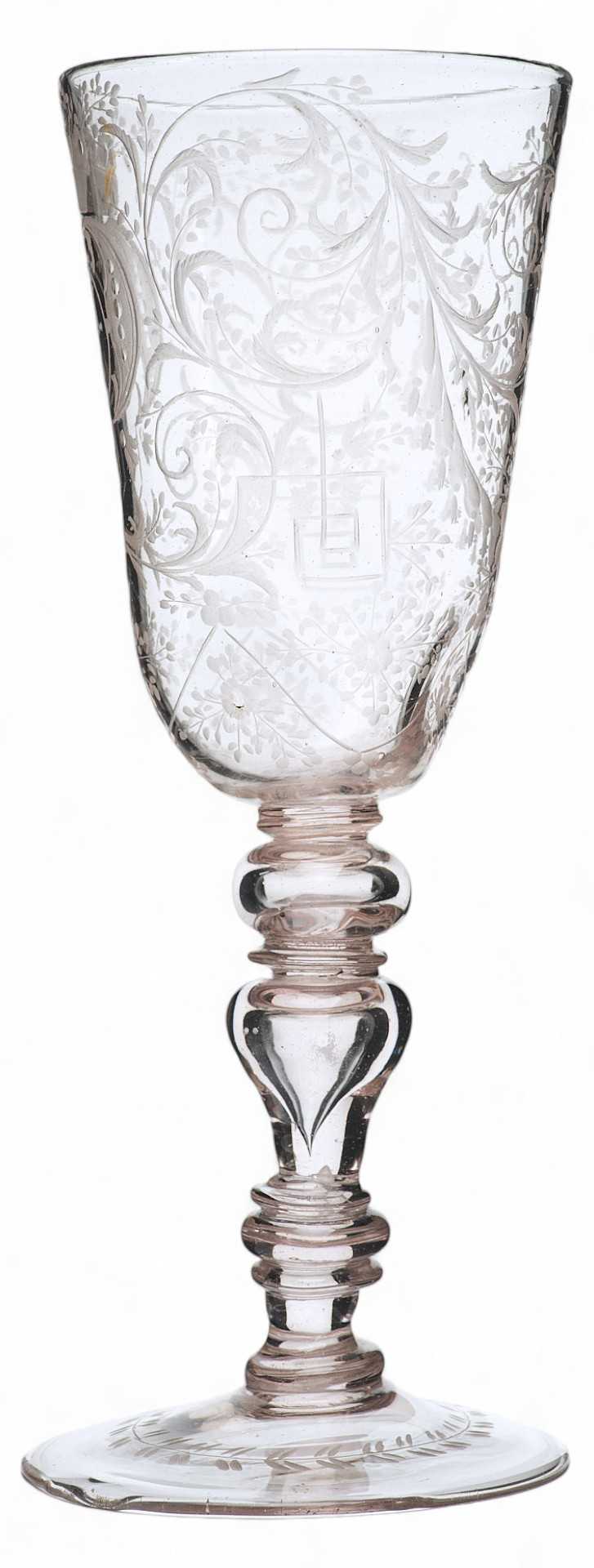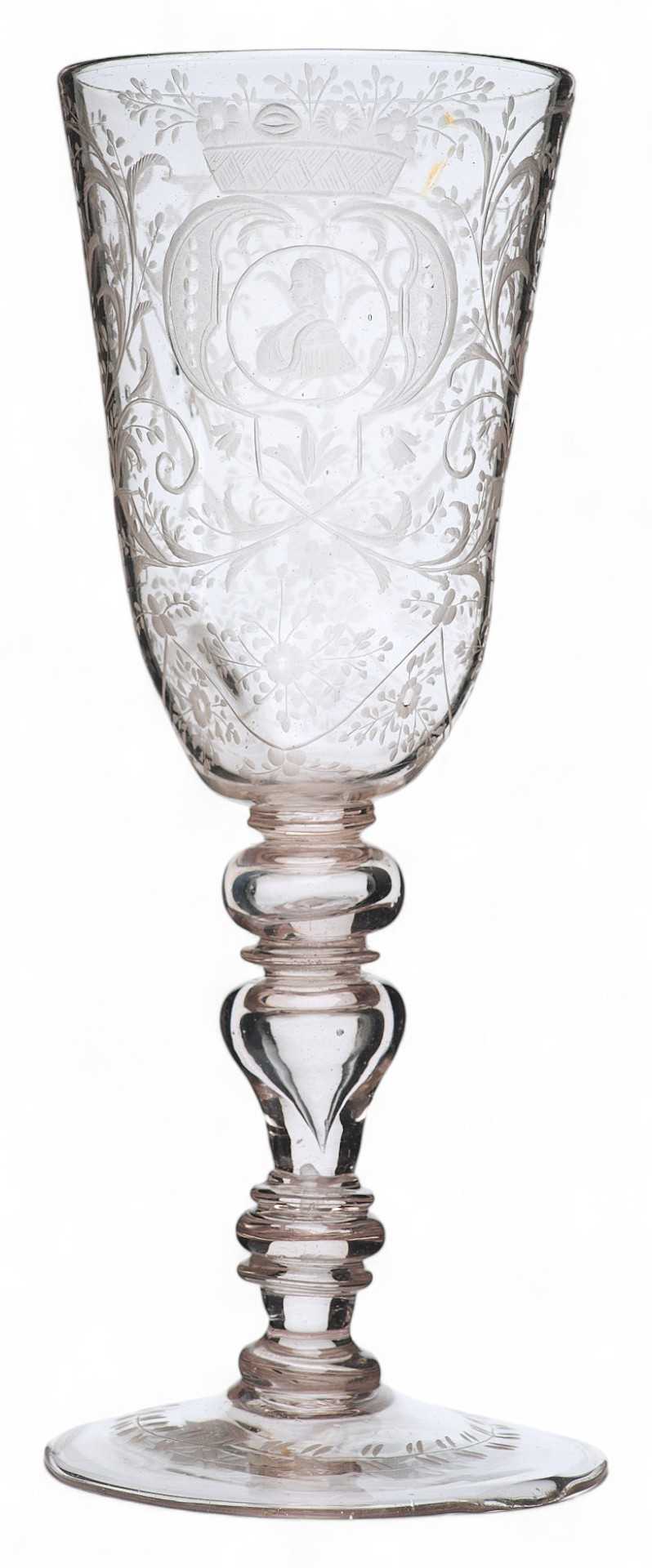 Своеобразный декоративный эффект в стекле приобретается за счет прозрачности материала, которая способствует созданию неподражаемой игры сверкающих бликов в чередовании блестящих и матовых плоскостей. Обогащение орнаментальной структуры барокко в стекле происходит под влиянием стилистических тенденций рококо. Мотивы ракайльного декора образуют как бы мелодичный фон в мощном звучании орнамента развитого барокко. Шёнборны (нем. Schönbom) — австро-немецкий род, на протяжении столетий поставлявший прелатов на кафедры немецкоязычных земель. Род Шёнборнов появляется на страницах истории в 1373 году в лице Гильбрехта фон Шёнборна, вассала графов Катценельнбогена. Замок Шёнборн в Порейнье отстоял от Катценельнбогена всего на три версты. «Золотой век» рода пришёлся на 2-ю половину ХѴП века и 1-ю половину ХѴПІ века, когда его представители занимали окняженные кафедры Майнца, Трира, Вюрцбурга, Бамберга и Шпейера. Благодаря могуществу этих прелатов удалось значительно нарастить семейные владения.