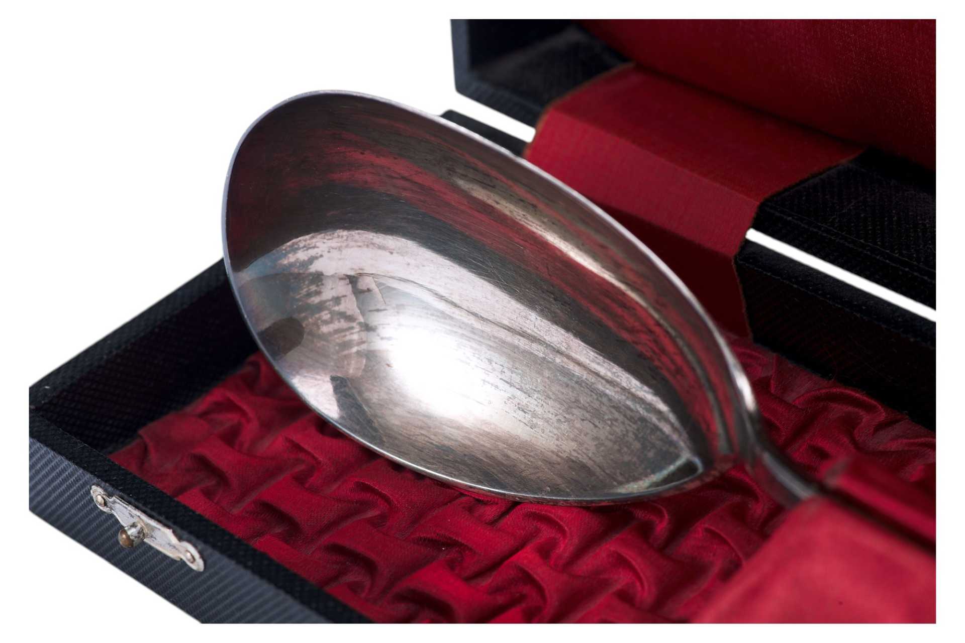 Представлена салатная ложка в, оригинальном подарочном футляре.