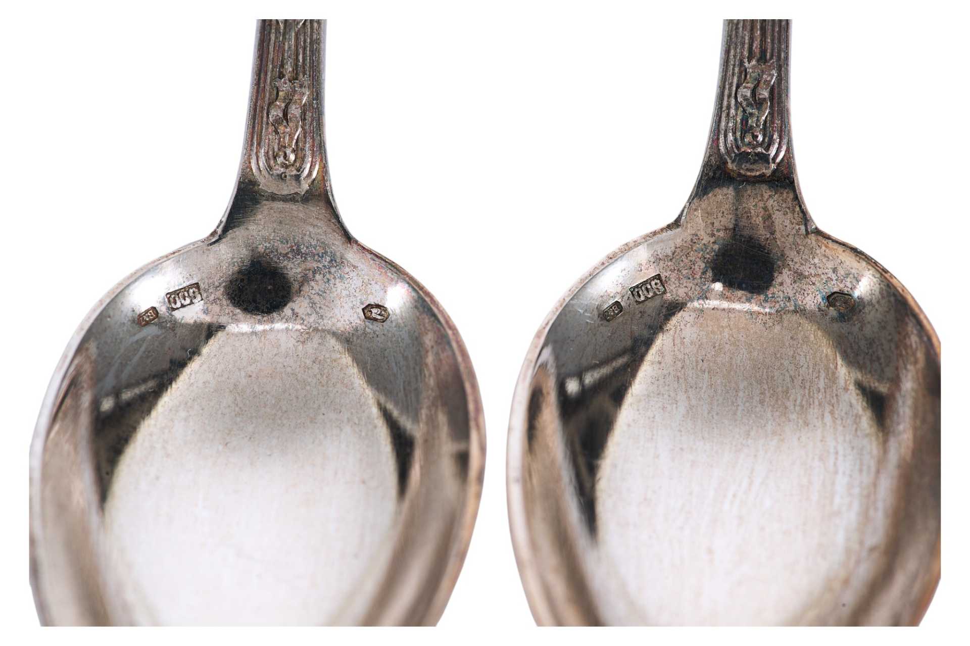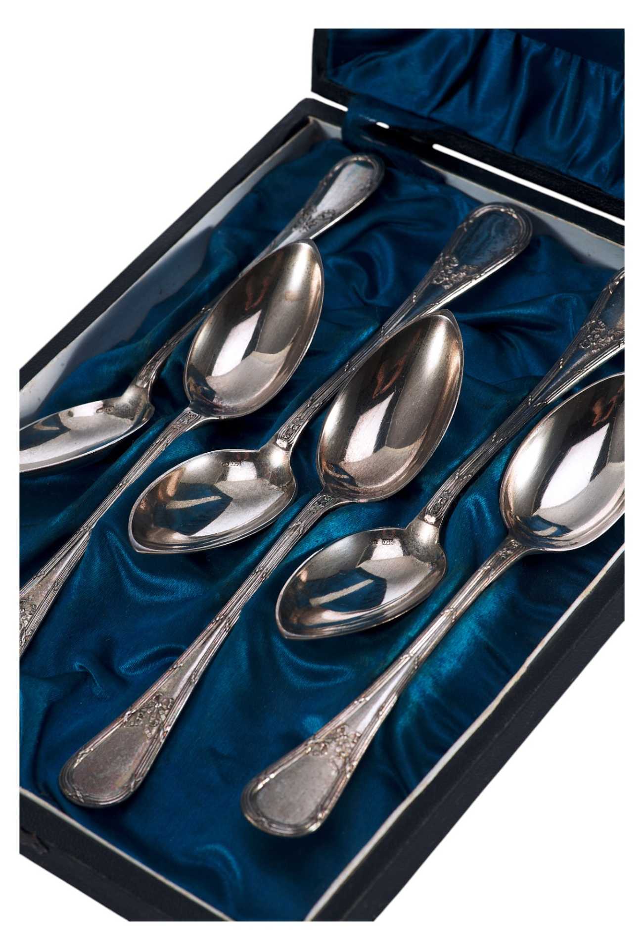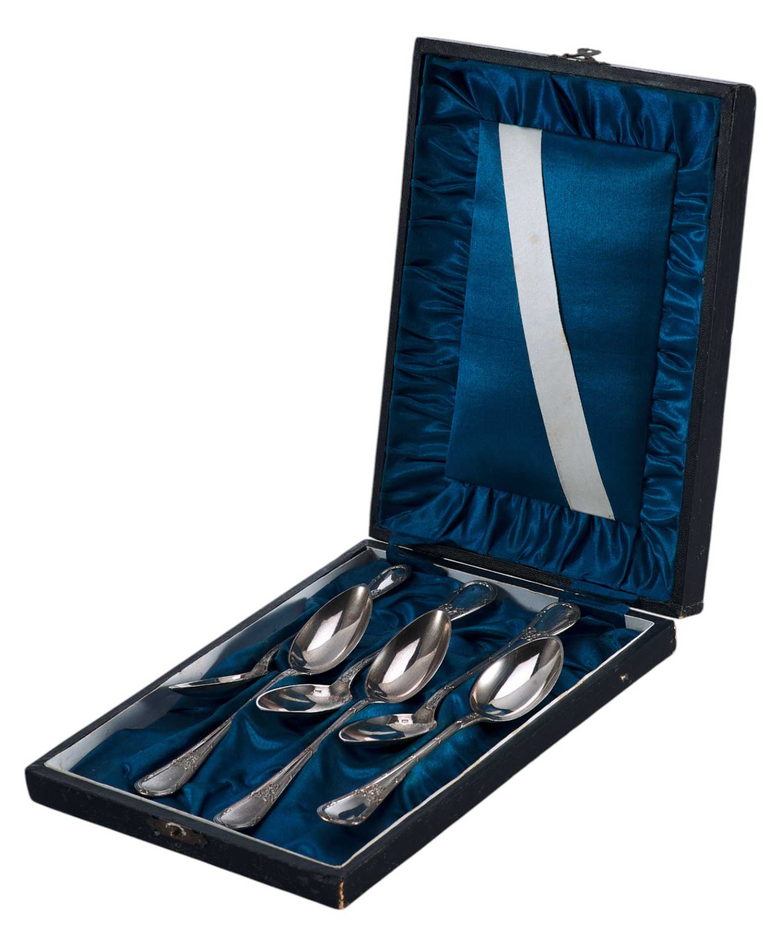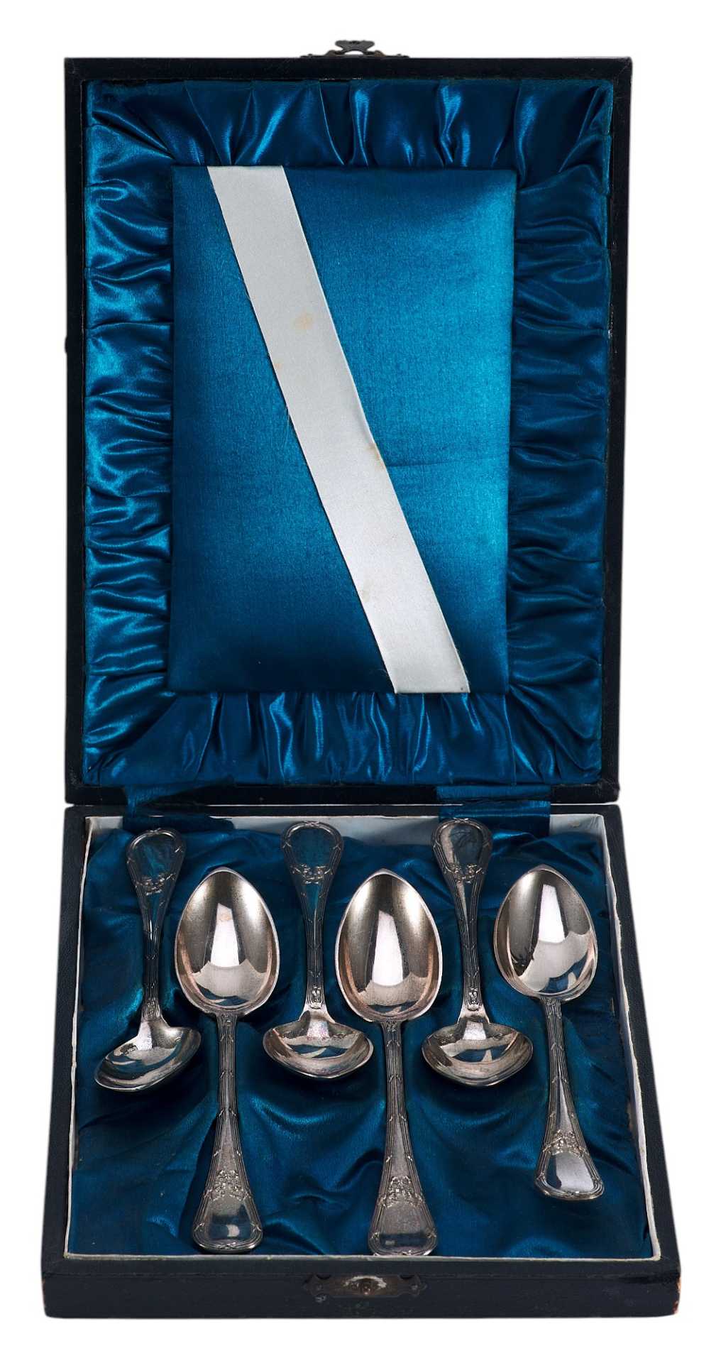 Представлен набор из 6 чайных ложечек в оригинальном футляре.