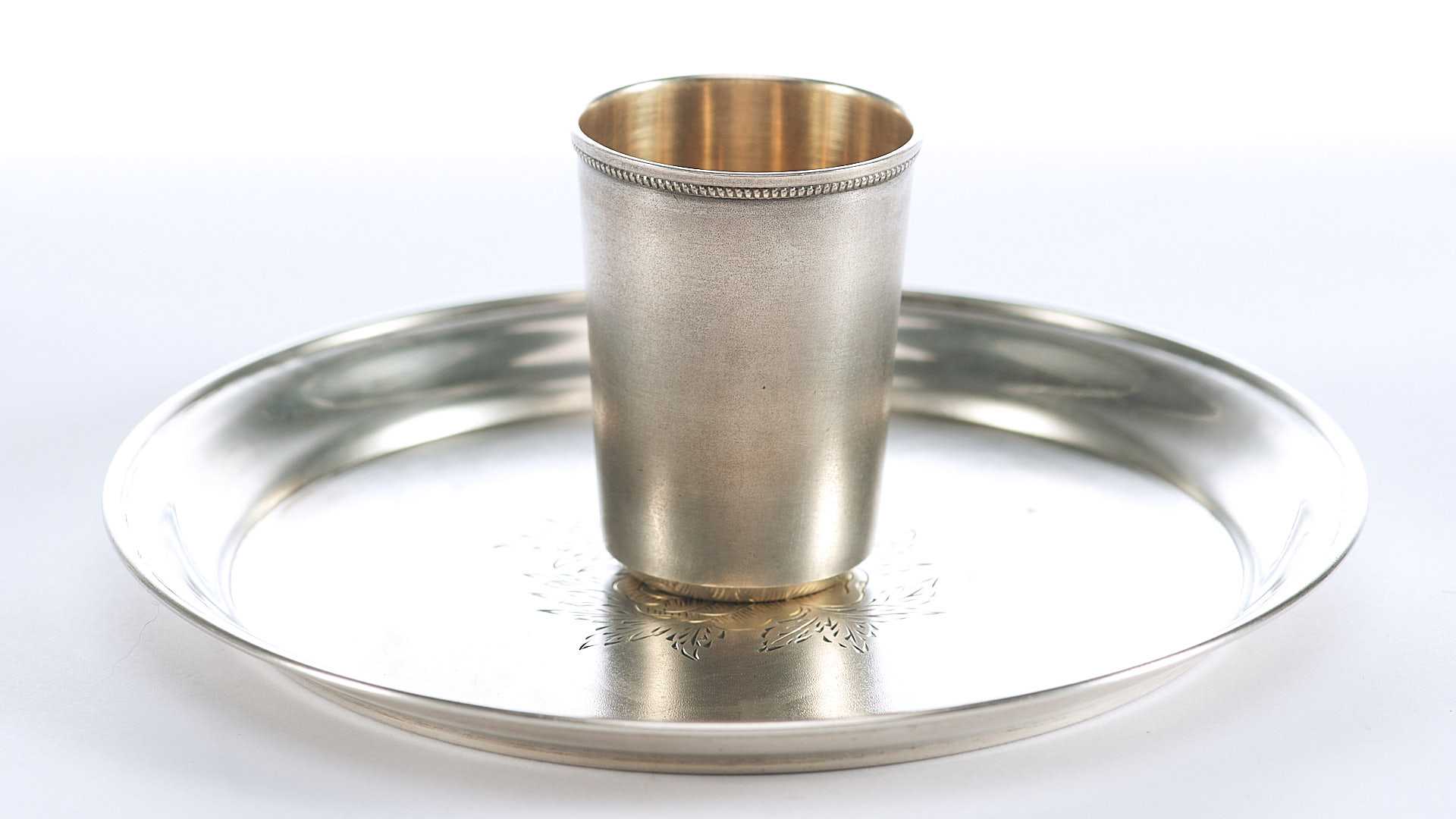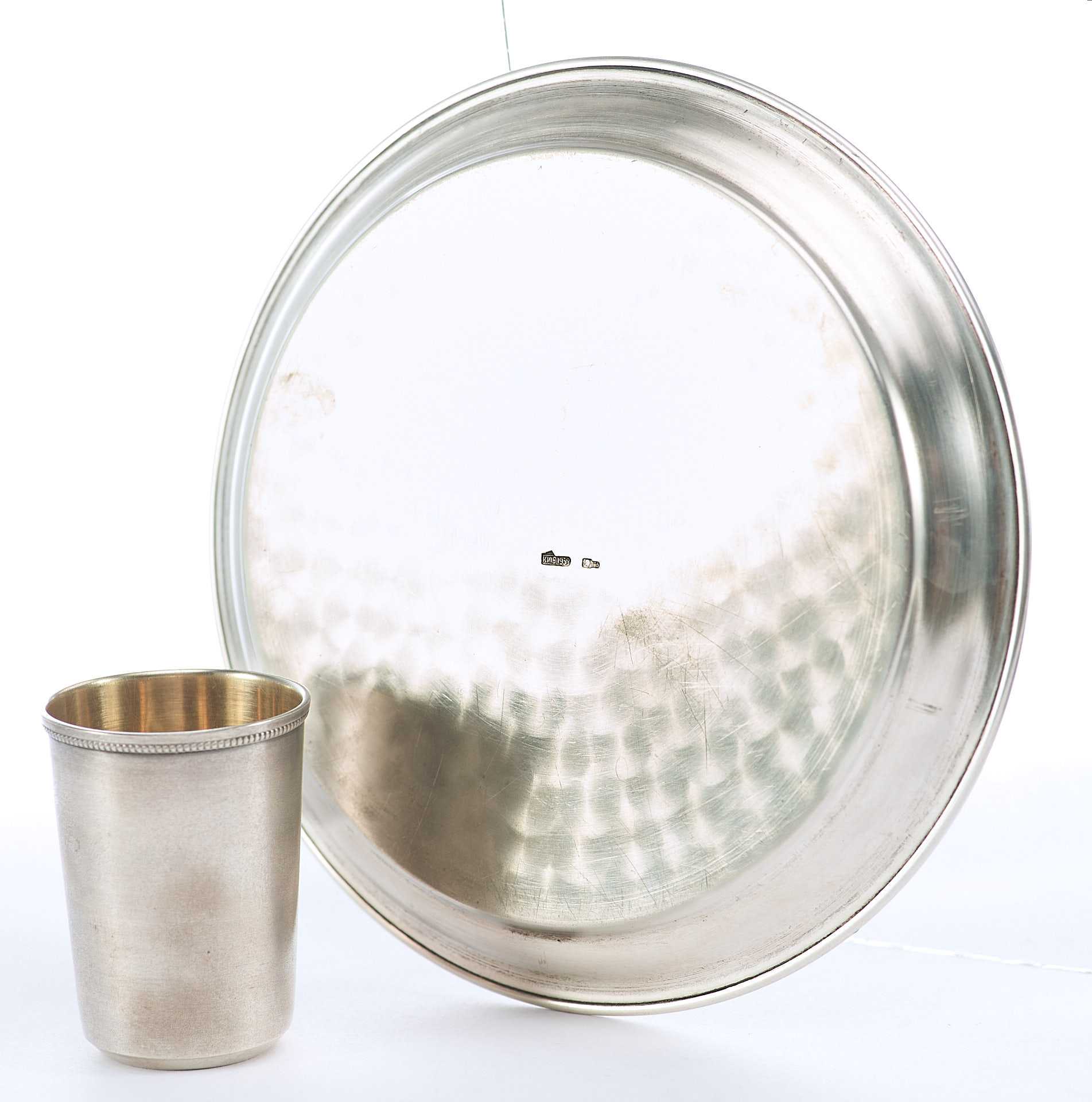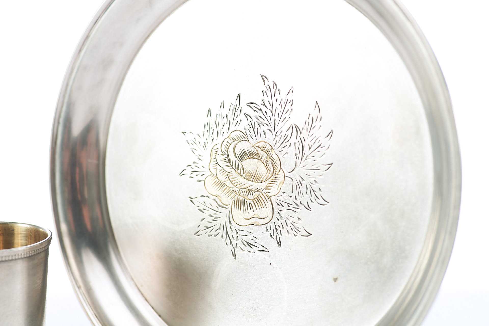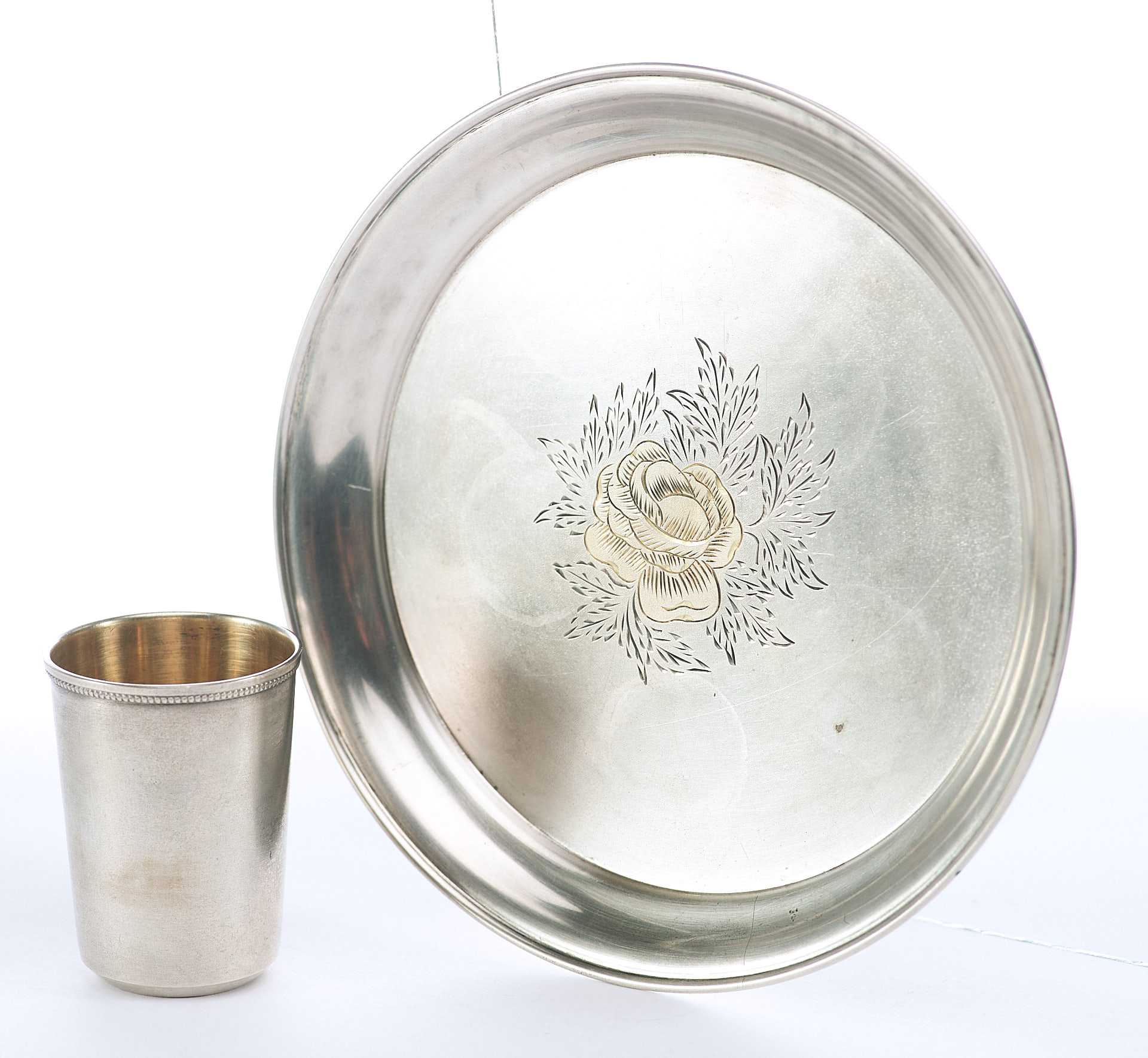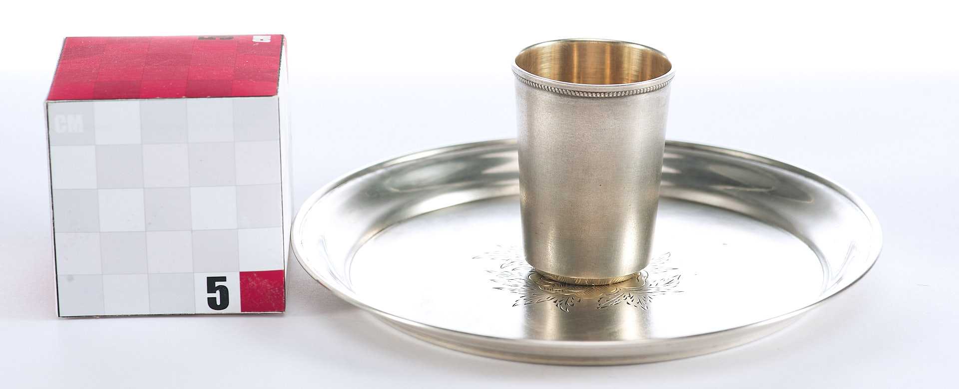 Стопка на подносе серебро 875 пр. СССР 139 гр. Промкомбинат "Эду" г. Тарту; Киевский завод столовых приборов и посуды имени Дзержинского 1963-1965 гг