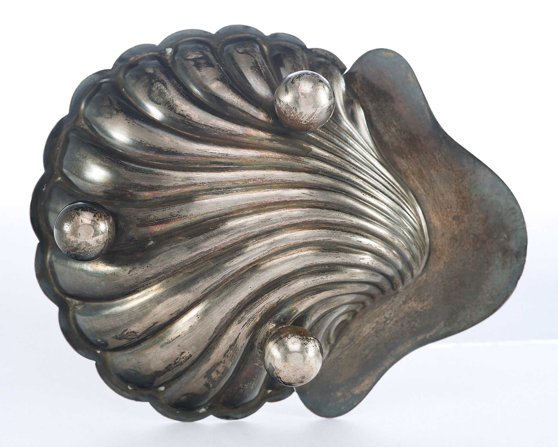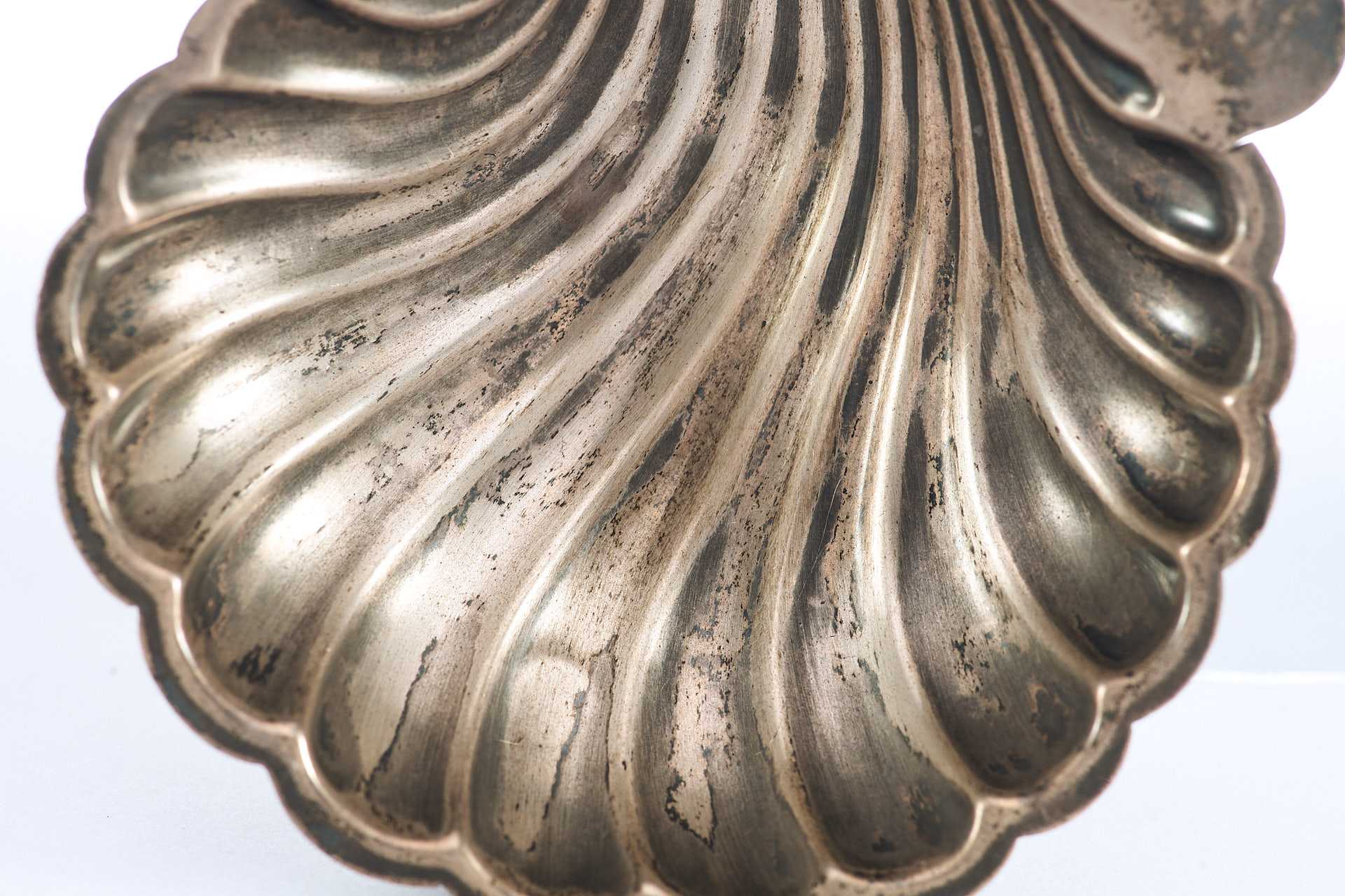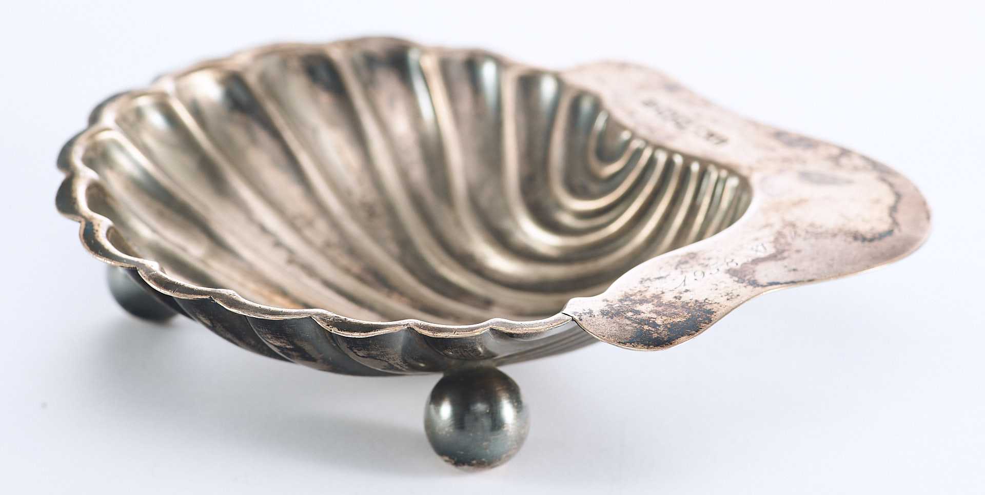 Представлена икорница в форме морской чаши-раковины на трех шаровидных ножках. На «пелюсти» икорницы клеймо