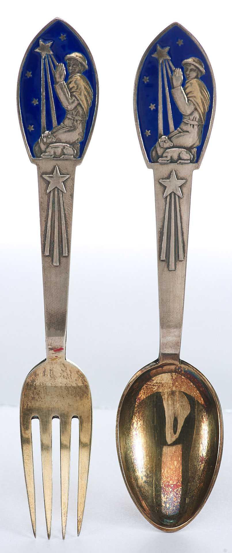 Коллекционный рождественский набор серебро 800 пр, Michelsen Дания 1935 г. 93 гр. Дания 1935