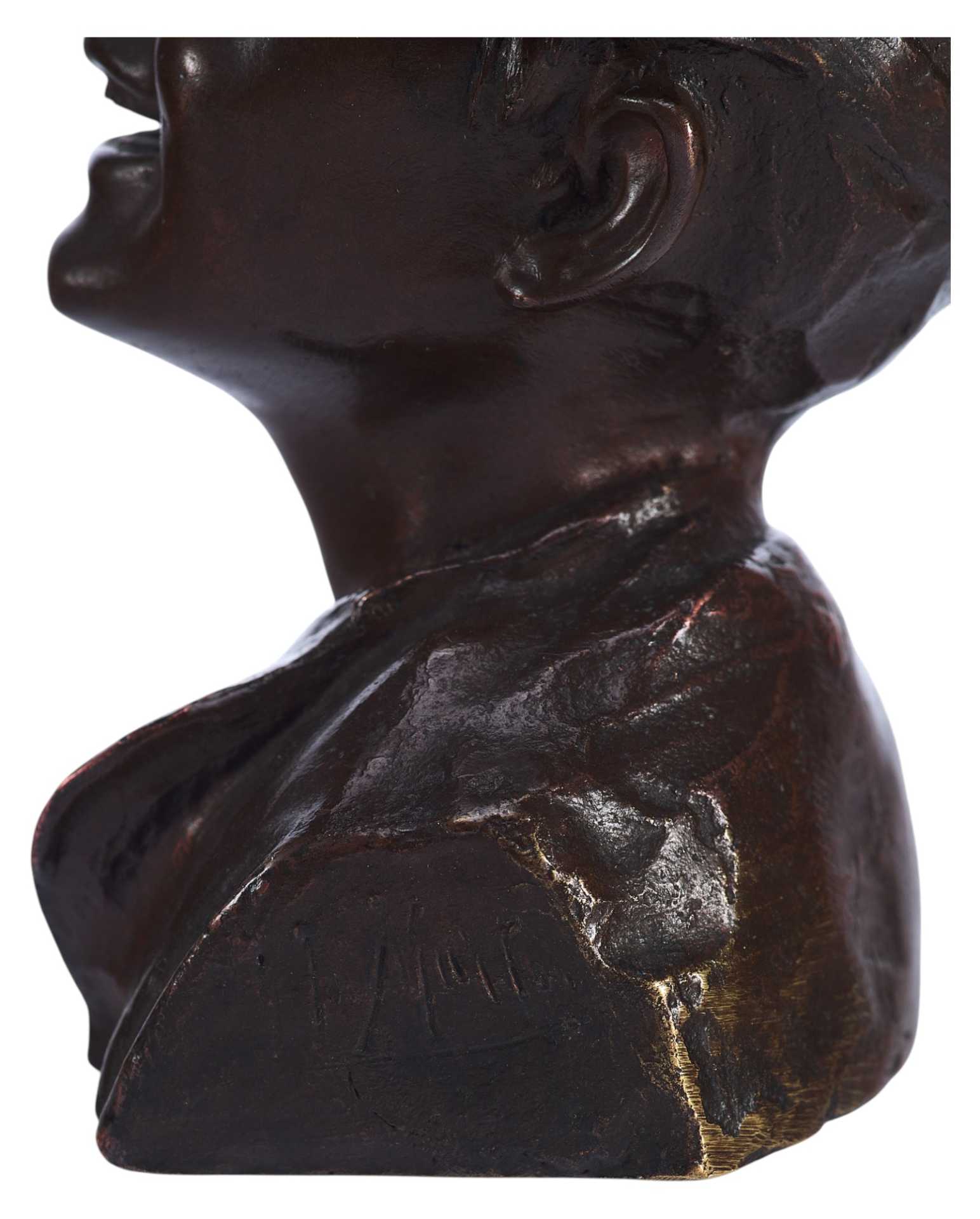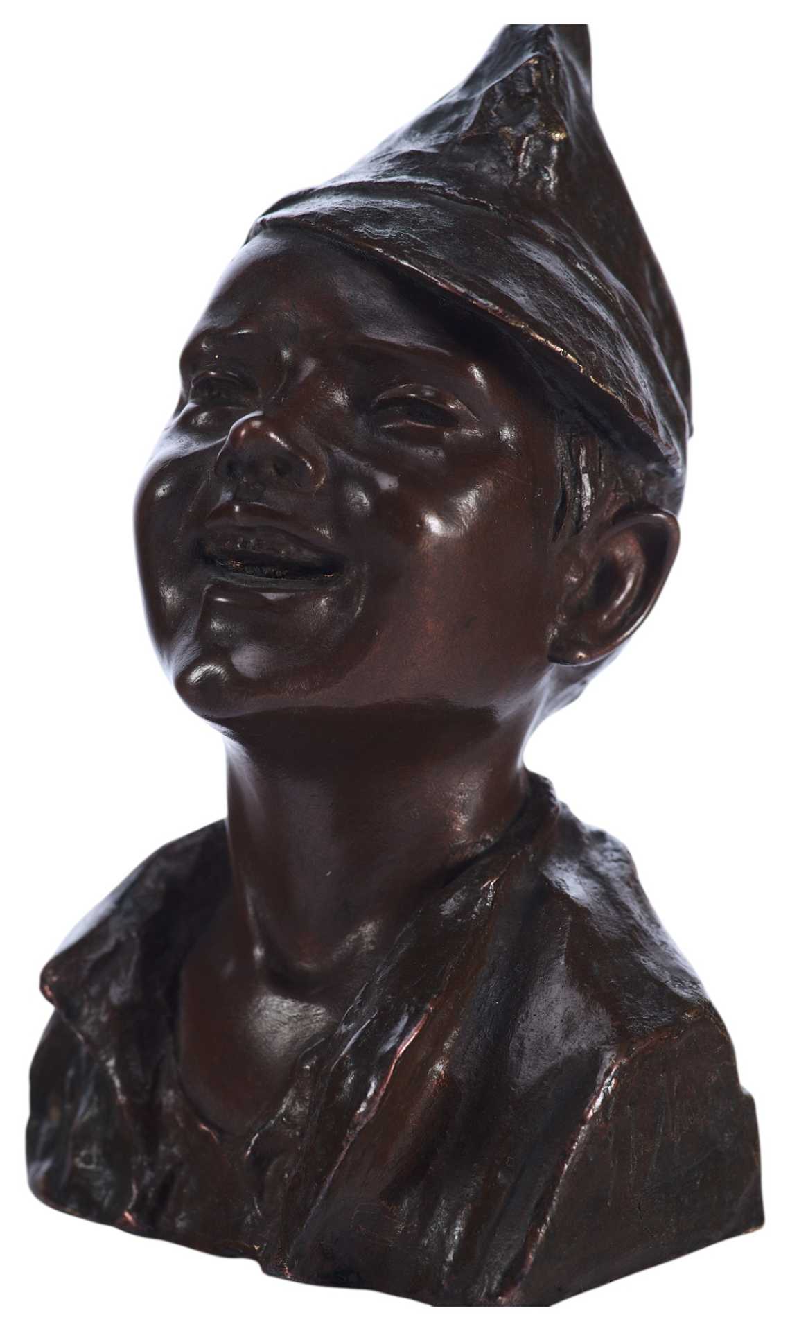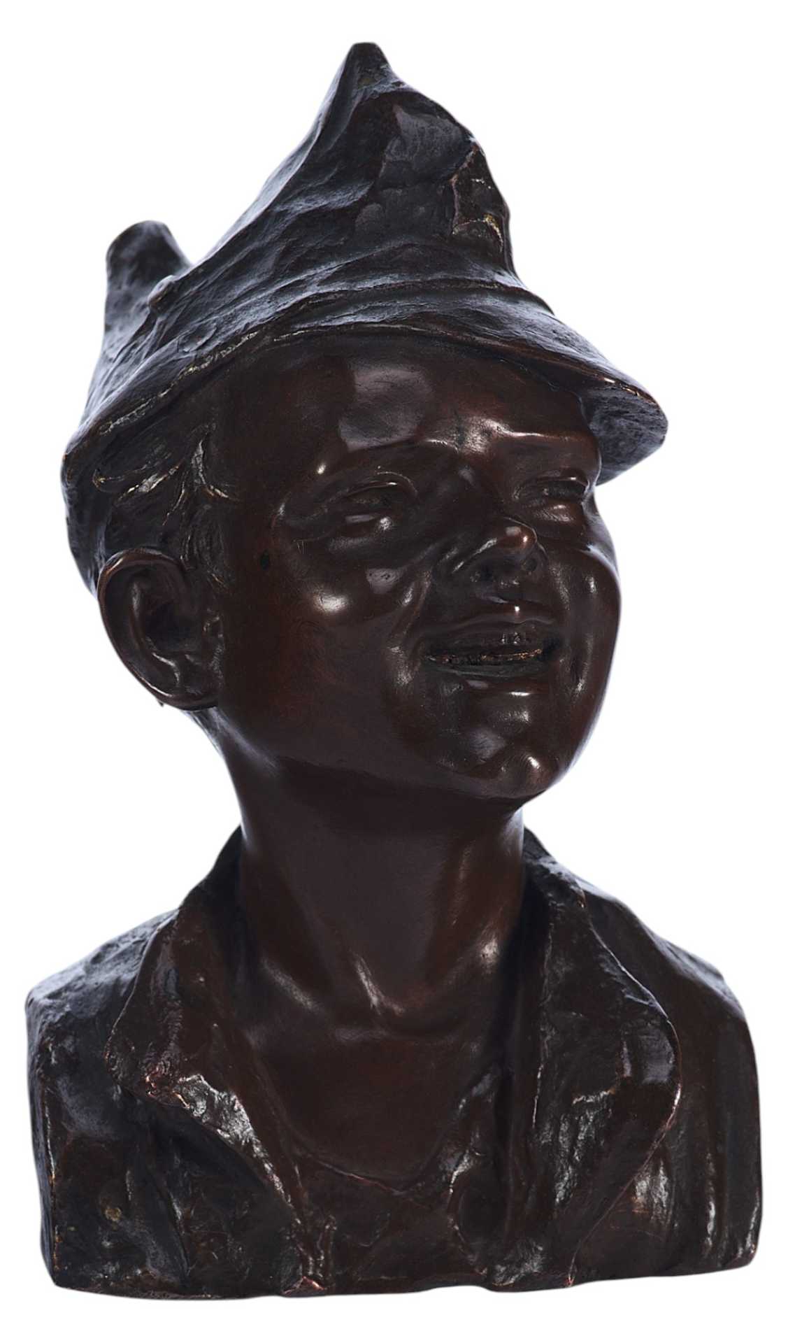 Скульптурный бюст представляющий собою портрет молодого добровольца в летней итальянской фуражке, например, такие головные уборы входили в состав формы одежды танковых корпусов. Фуражка была распространена в i итальянских войсках с 1939-1945 гг. На основании скульптурного бюста имеется подпись автора: «Molta...».
