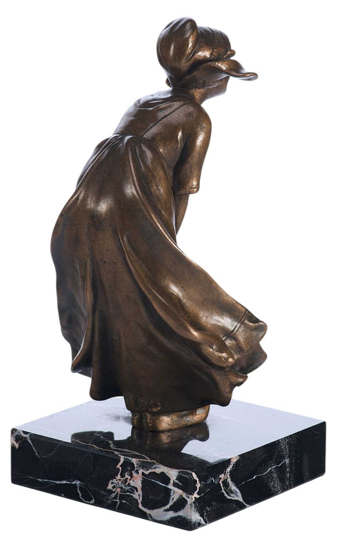 На платье подпись: «F. Poleschka» (?). Скульптура представляет собой типичный пример кабинетной бронзовой пластики, получившей наибольшее распространение в первой половине XX в.