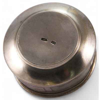 Клейма подлинные. Их наличие, а также стилистические особенности позволяют сделать вывод, что солонка была изготовлена в Москве, в период 1899-1908 гг.