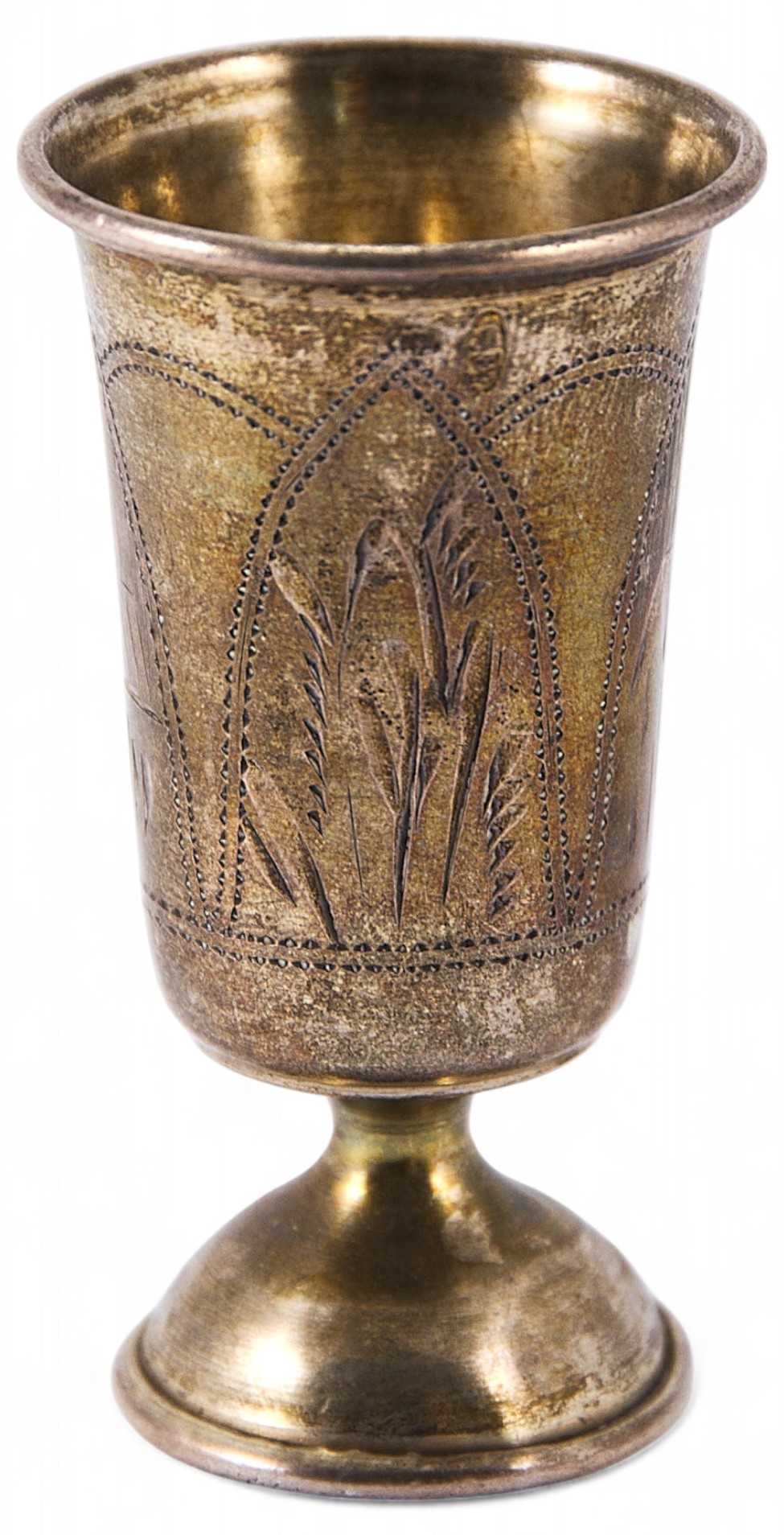Клейма подлинные. Их наличие, а также стилистические особенности позволяют установить, что рюмочка была изготовлена в Киеве, в период 1908-1926 гг.