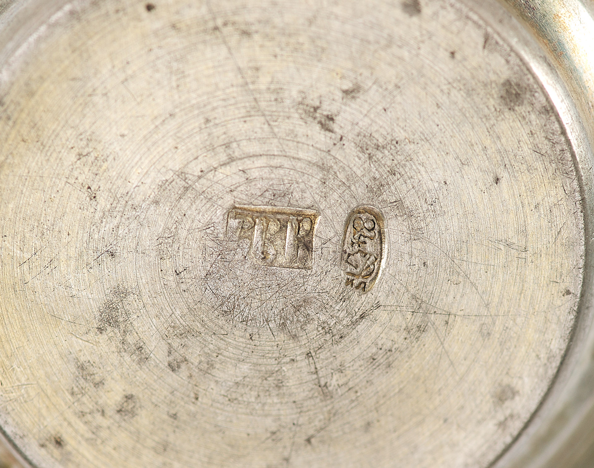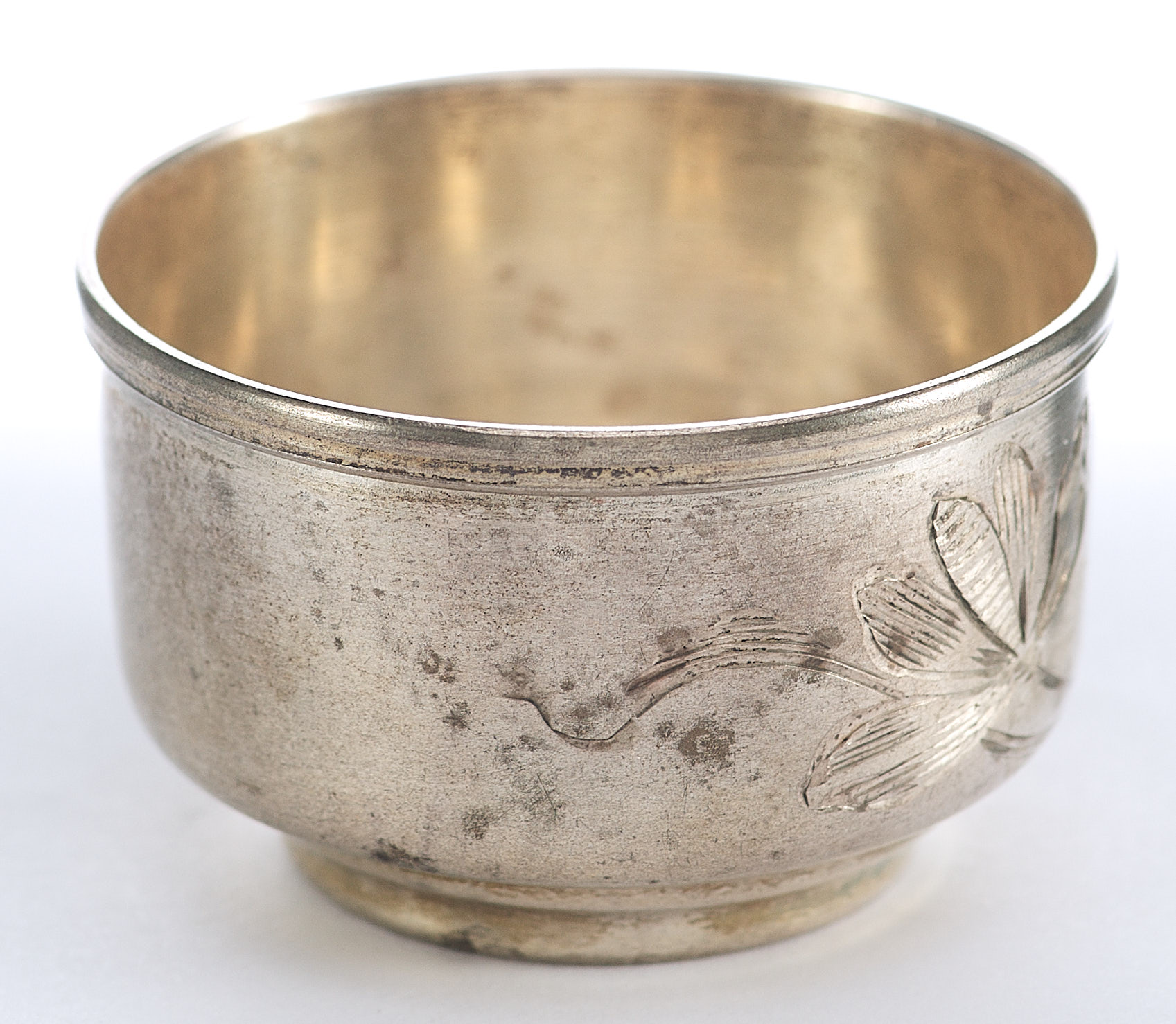 Солонка серебро 84 пр. ССК Москва нач. ХХ в. 15 гр. 2,6x4,2 см. Москва 1899-1908 гг
