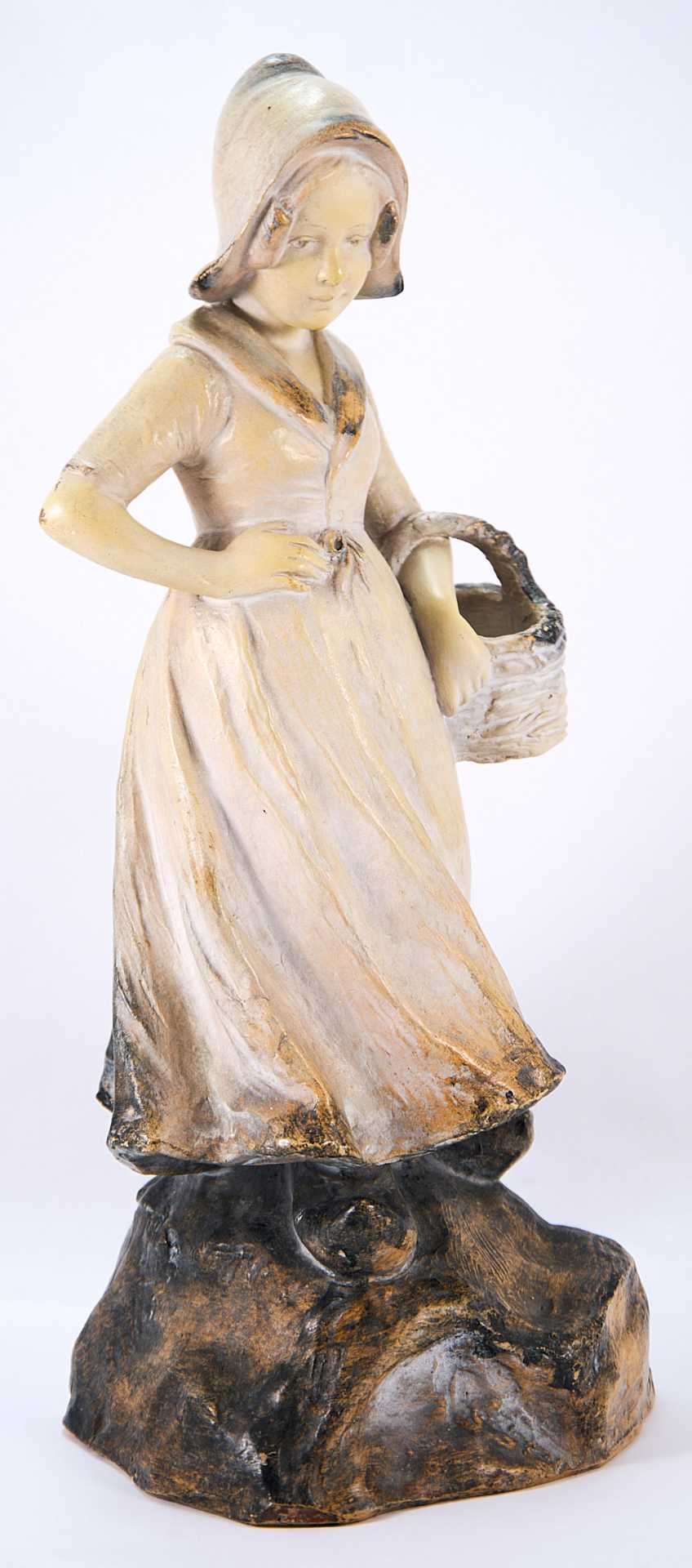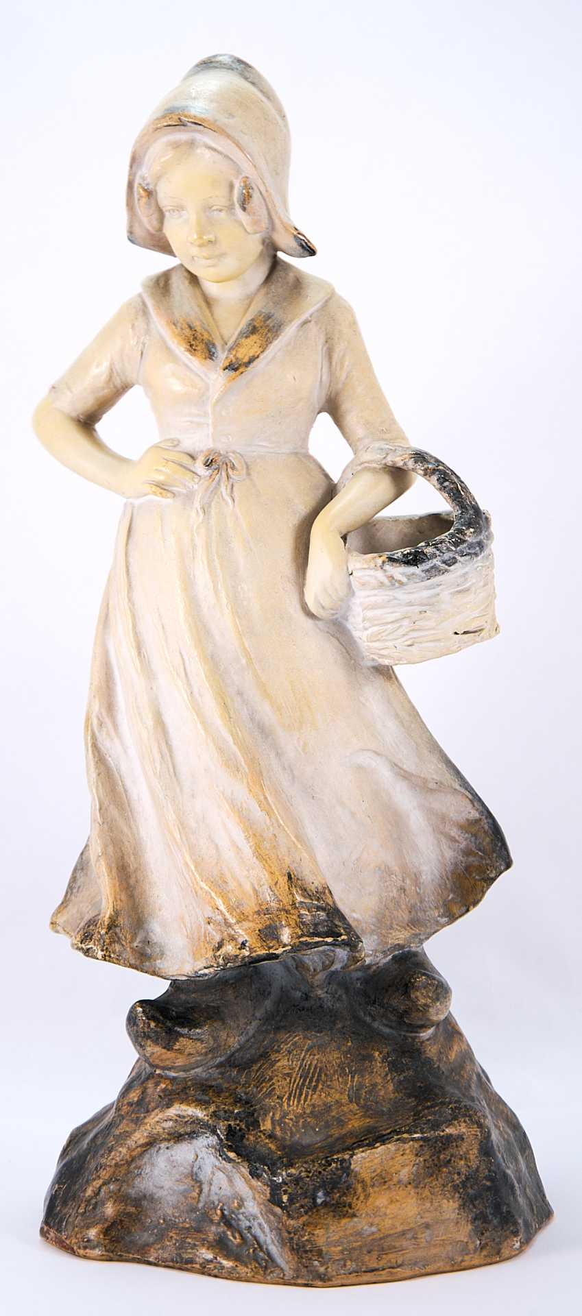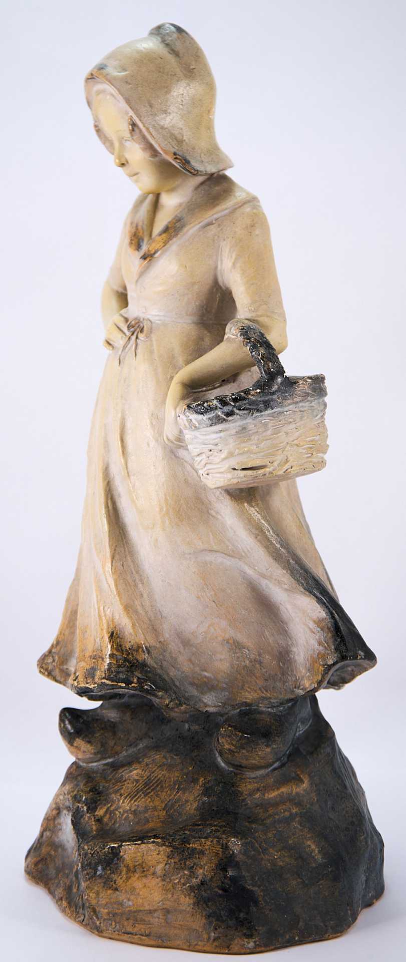 Керамичесая скульптура девочки с корзинкой. На основании скульптуры имеются надписи: «ESET .GESCHÜTZT», «203 Made in Austria».