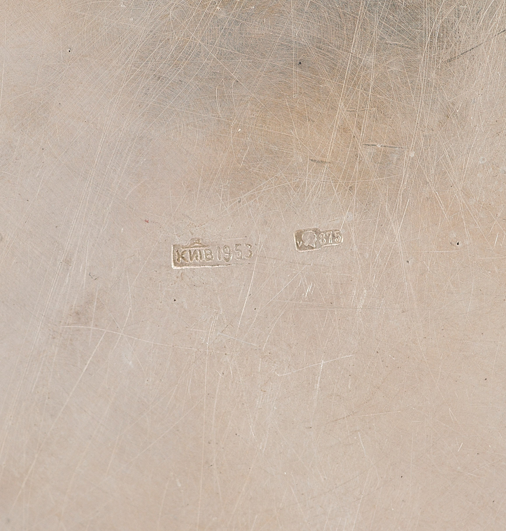 Поднос серебро 875 пр. Киев, СССР 1953 г. 107 гр. D-13,4 см. Киев, СССР 1953 г