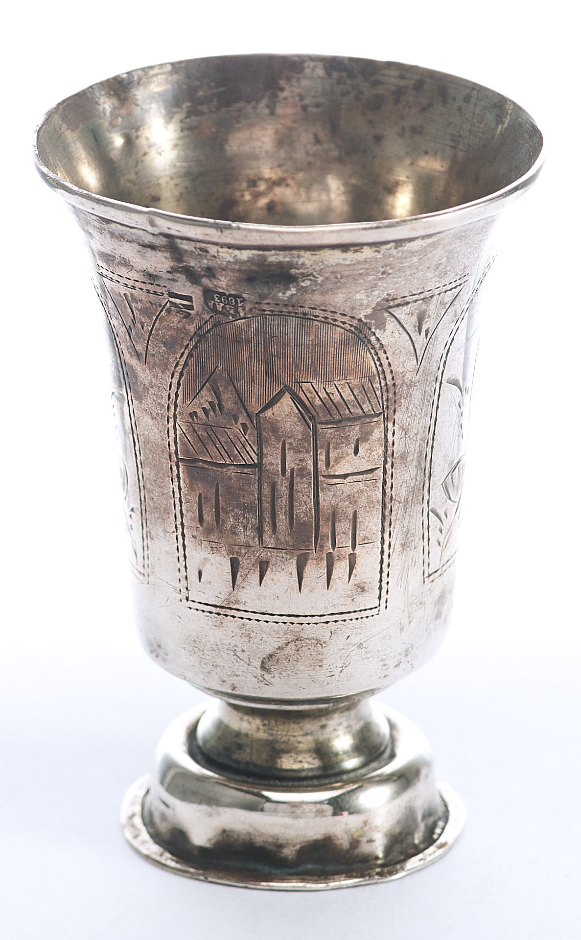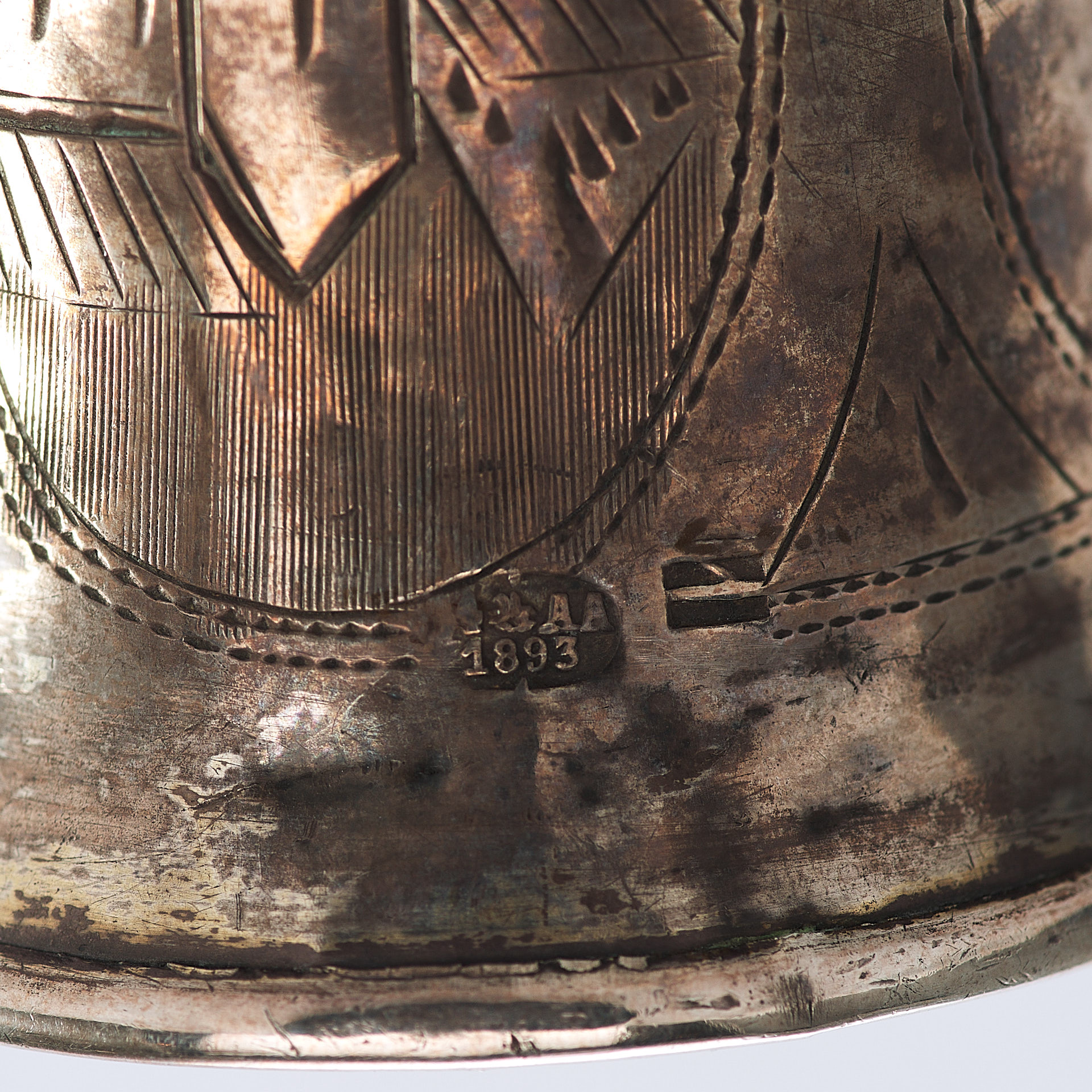 Клейма подлинные. Их наличие, а также стилистические особенности позволяют сделать вывод, что рюмка была изготовлена в Москве, в 1893 году. Сохранность хорошая.