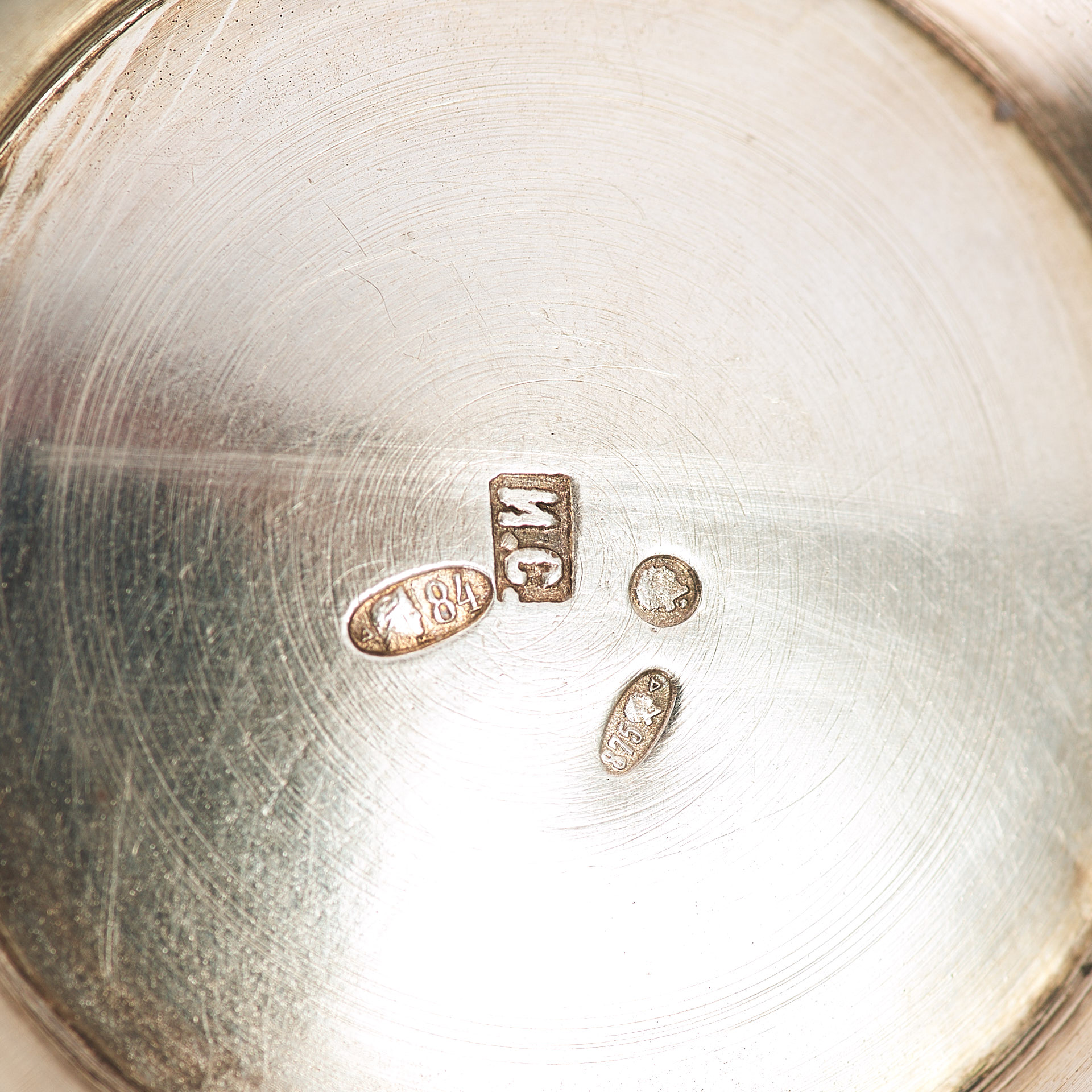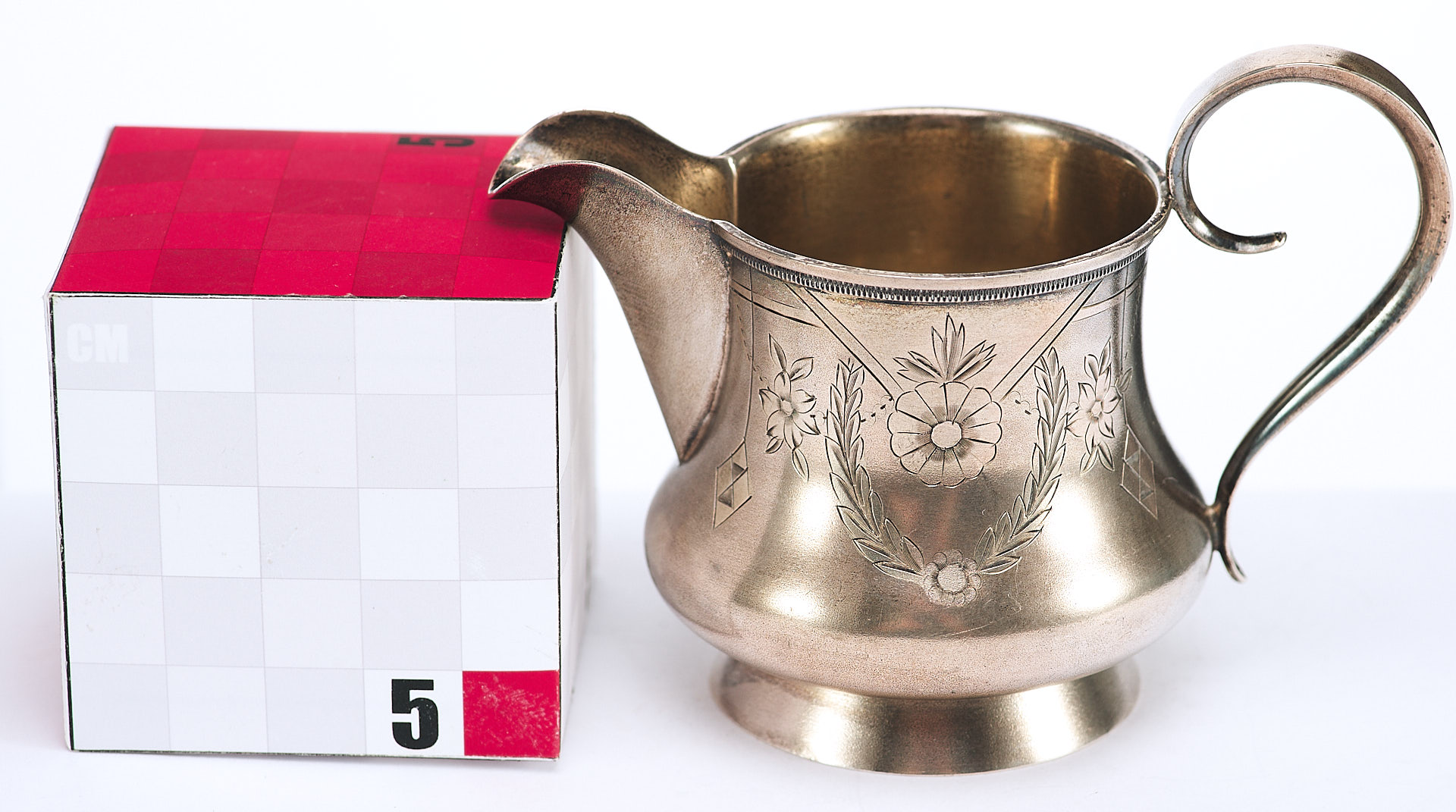 Сливочник серебряный 84 пр. И. Салтыков Москва нач. ХХ в. 72 гр. Н-7,2 см. Москва 1908-1926 гг