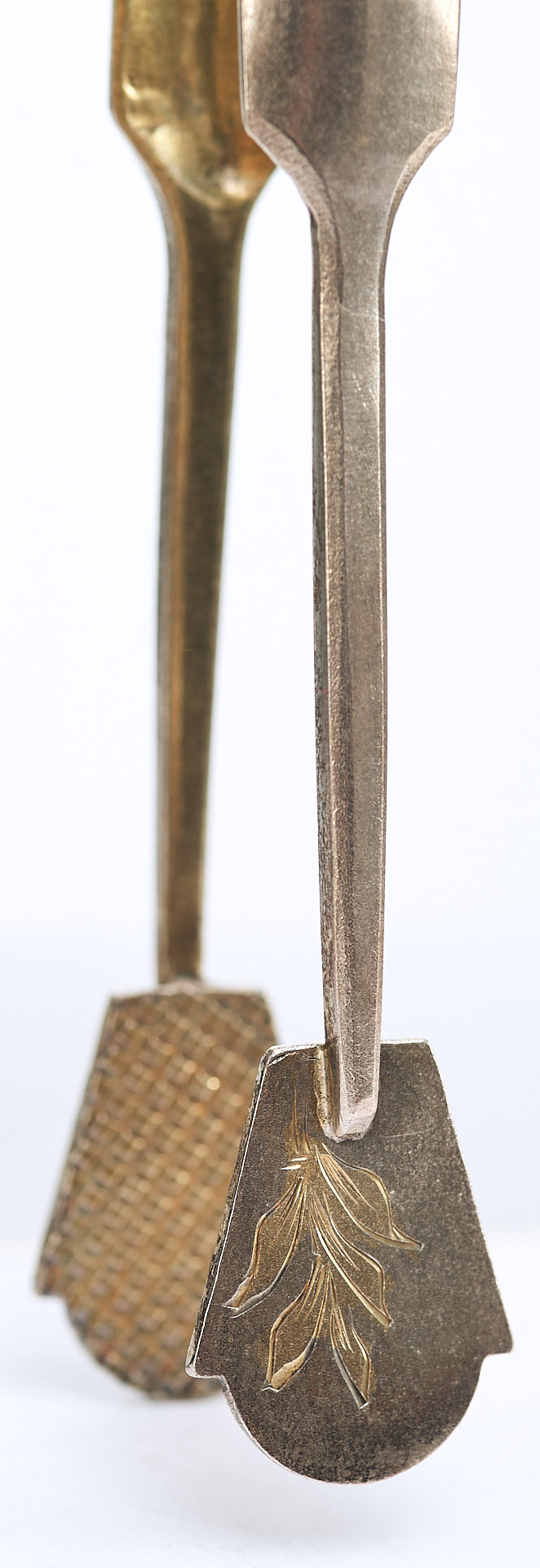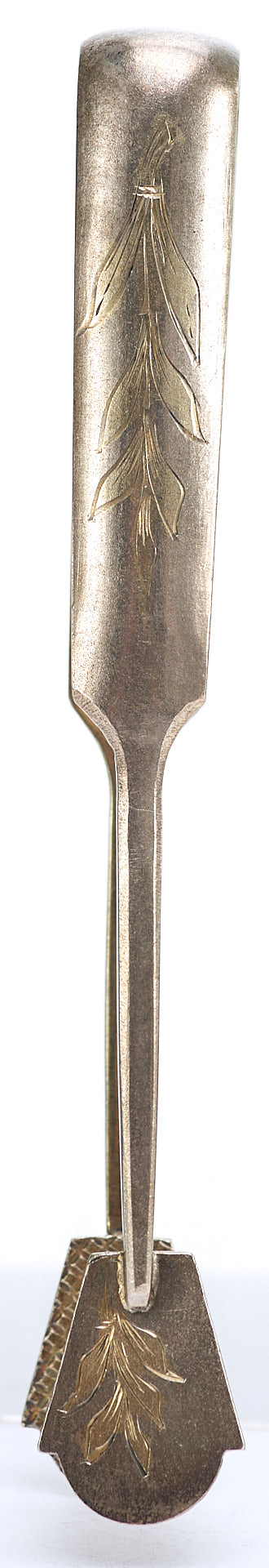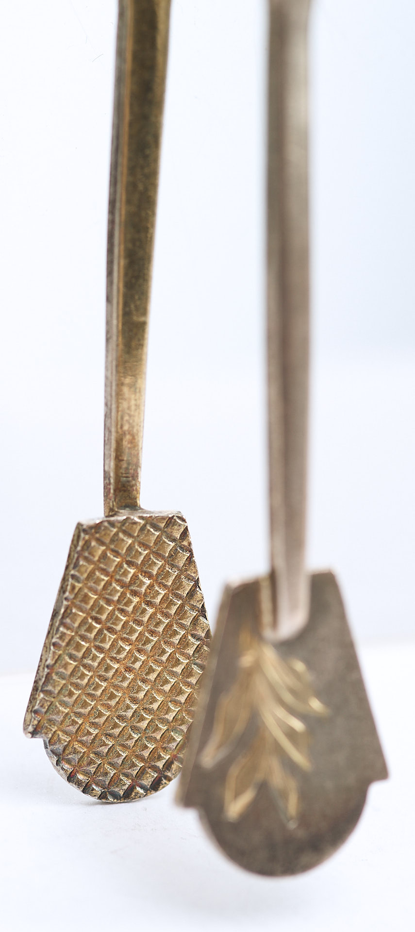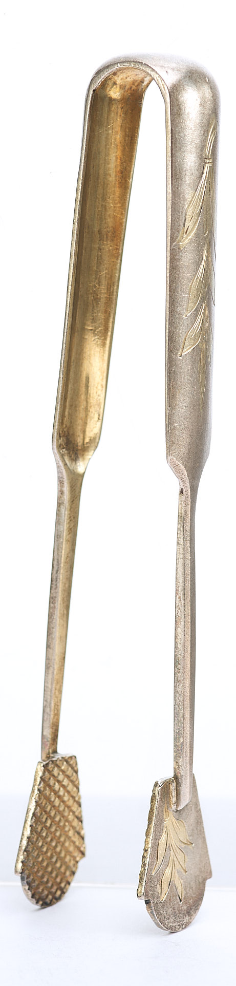 Щипцы для сахара выполнены в стилистике ар-деко, популярного в середине XX века, украшены декоративным растительным
