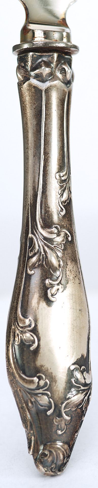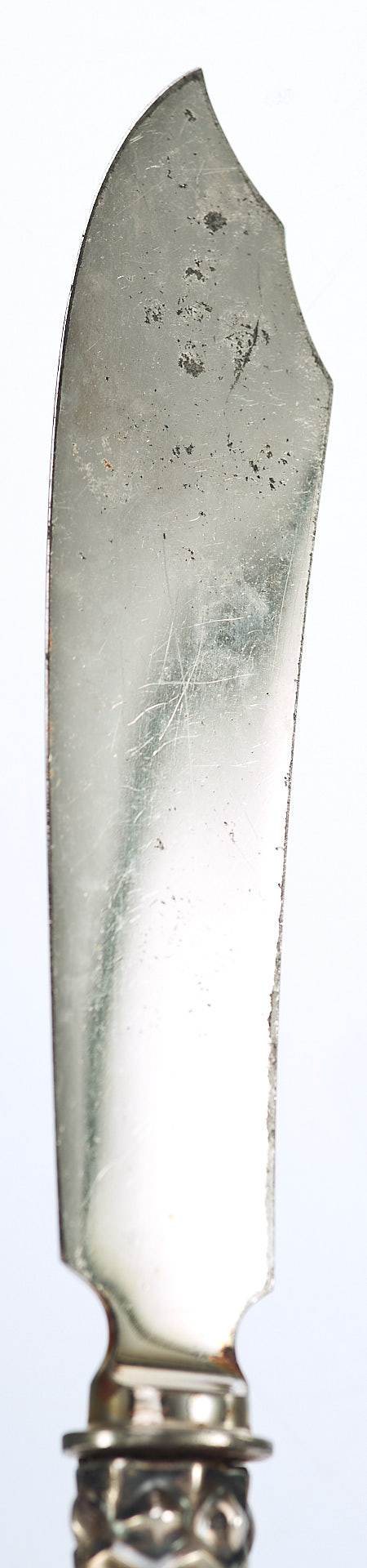 На рукоятке ножа имеется клеймо - 800 (проба серебра).