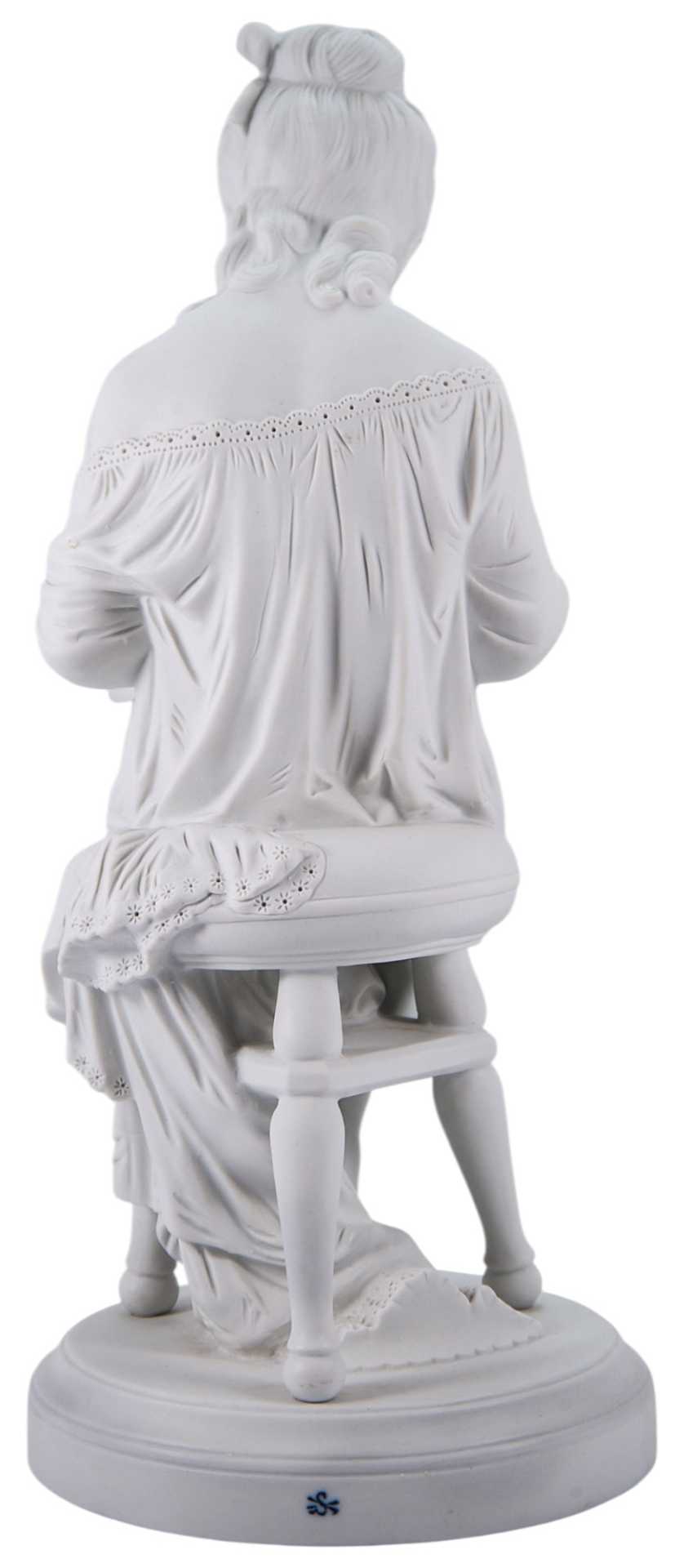 На основании скульптуры клеймо фарфорового завода Шайбе-Альсбах, ставившееся с 1925 по 1972 гг. Фабрика Шайбе-Альсбах (Шайбэ-Альсбах, ScheibeAlsbach) Основана в Тюрингии в 1835 г. Людвигом Оелсом (Ludwig Oels) и уже через несколько десятилетий приобрела мировую известность: с 1857 года она широко известна как первая тюрингская фабрика,